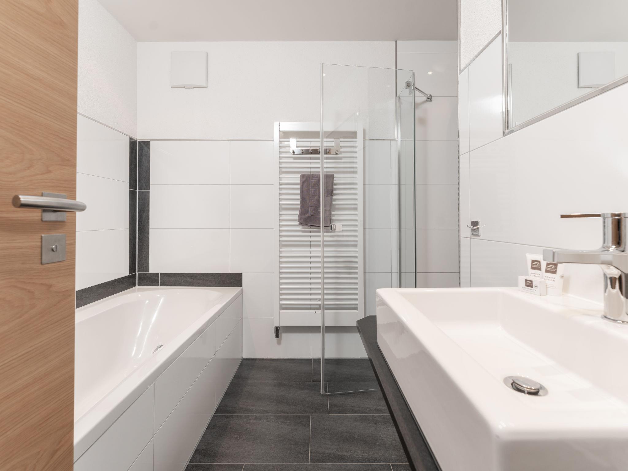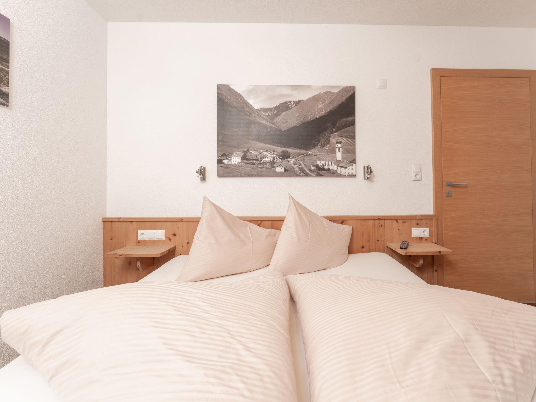 "Apartments Ambiente", 16-room house on 3 levels. Modern and tasteful furnishings: entrance hall. Gallery with open-hearth fireplace and TV (flat screen). Upper floor: dining room with dining table and kitchen corner. Exit to the terrace. 6 double bedrooms, each room with shower/WC and TV. Exit to the balcony. 2 double bedrooms, each room with shower/WC and TV. 4 rooms, each room with 1 double sofabed, dining nook and kitchen corner. Parquet floors. Balcony furniture. Beautiful view of the mountains. Facilities: Internet (WiFi, free). Please note: non-smoking house. Maximum 3 pets/ dogs allowed. Smoke alarm, no lift. Group accommodation consisting of 8 separate apartments. The Ötztal Card is included in summer and the Niederthai Card in winter, with a breakfast buffet in the common room.