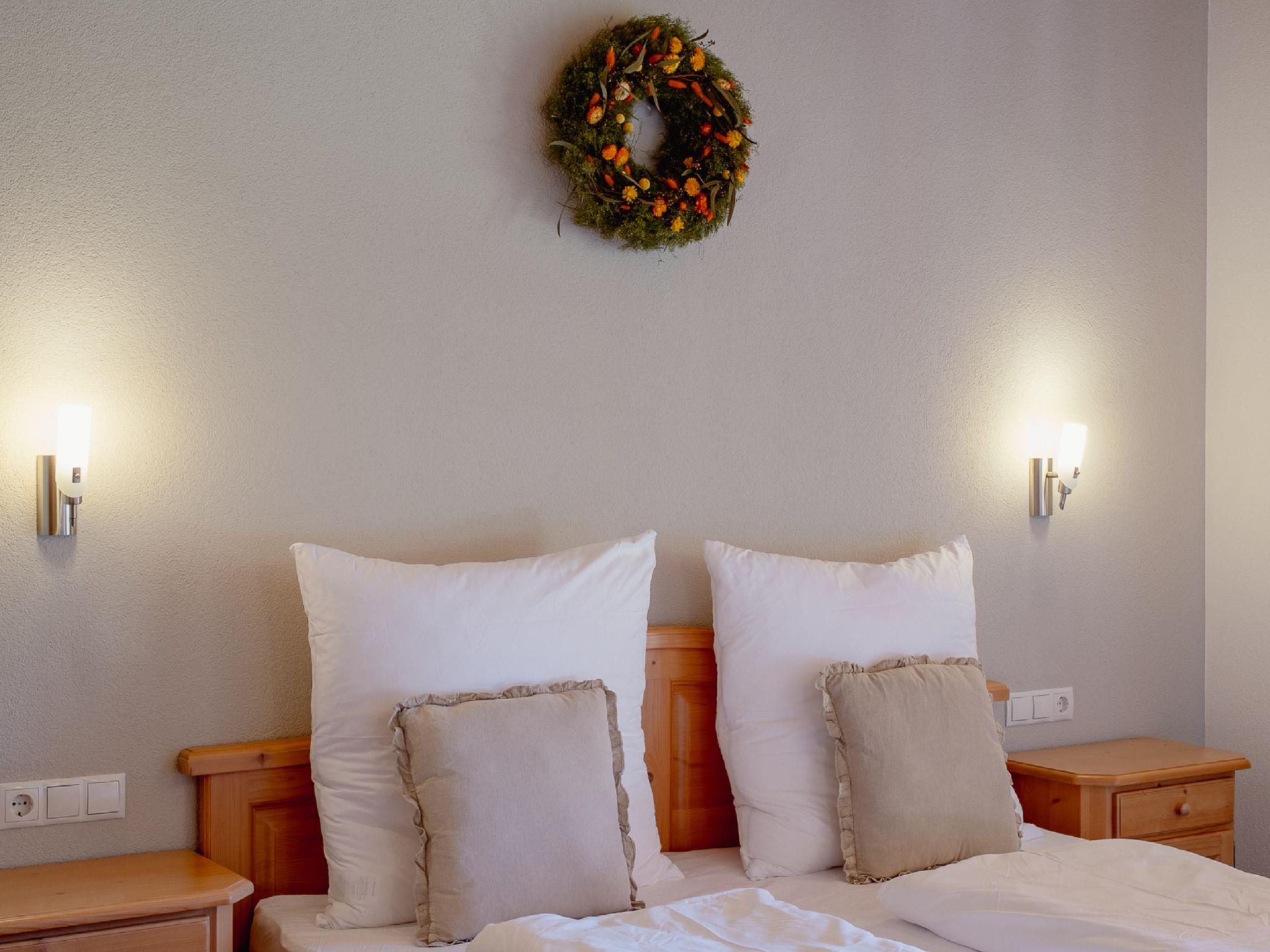 4-room apartment 100 m2, on the ground floor. Tasteful and wooden furniture furnishings: entrance hall. 3 double bedrooms. Living/dining room with satellite TV. Exit to the garden, to the terrace. Open kitchen (dishwasher, 4 induction hot plates, microwave). Shower/WC, bath/shower/WC. Underfloor heating. Comfortable furnishings in the country house style. View of the mountains and the countryside. Facilities: safe, hair dryer. Internet (WiFi). Please note: non-smoking house. Suitable for allergy sufferers, smoke alarm. Attention: More than 6 people in the apartment is not allowed!