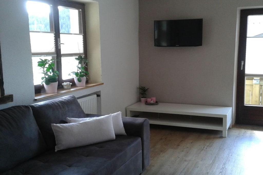 Den kærligt renoverede Waldhyazinthe-lejlighed på cirka 58 m² lader intet tilbage at ønske. Lejligheden har to separate soveværelser, to badeværelser med bruser og toilet, en stue/spisestue og et moderne udstyret køkken. I stueetagen er der fællesrum med køkken til cirka 30 personer. Der er en stor legeplads, børnezoo og solterrasse. Yderligere tjenester (mod betaling): levering af brød, æg, honning, smør fra gården, hjemmelavet Kaminwurz (krydret røget pølse) og alpeost.