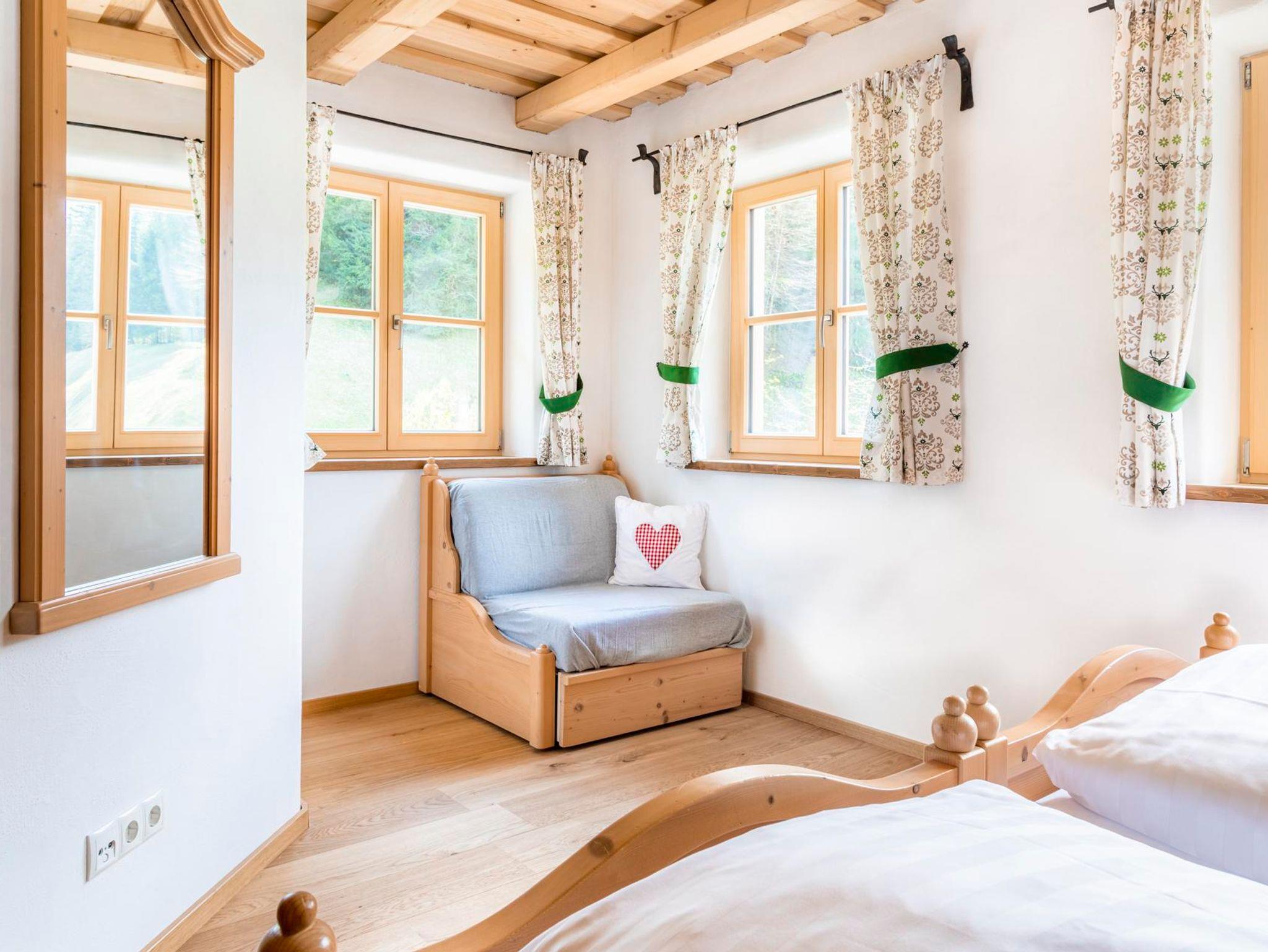 Die Ferienwohnung befindet sich im ersten Stock des Bauernhauses und ist über Treppe und Lift erreichbar.