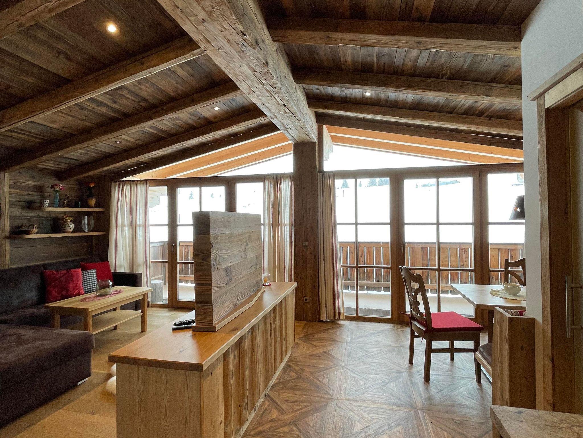 eigenem Balkon, liegt direkt an der Schipiste im Ski- und Wandergebiet Steinplatte.