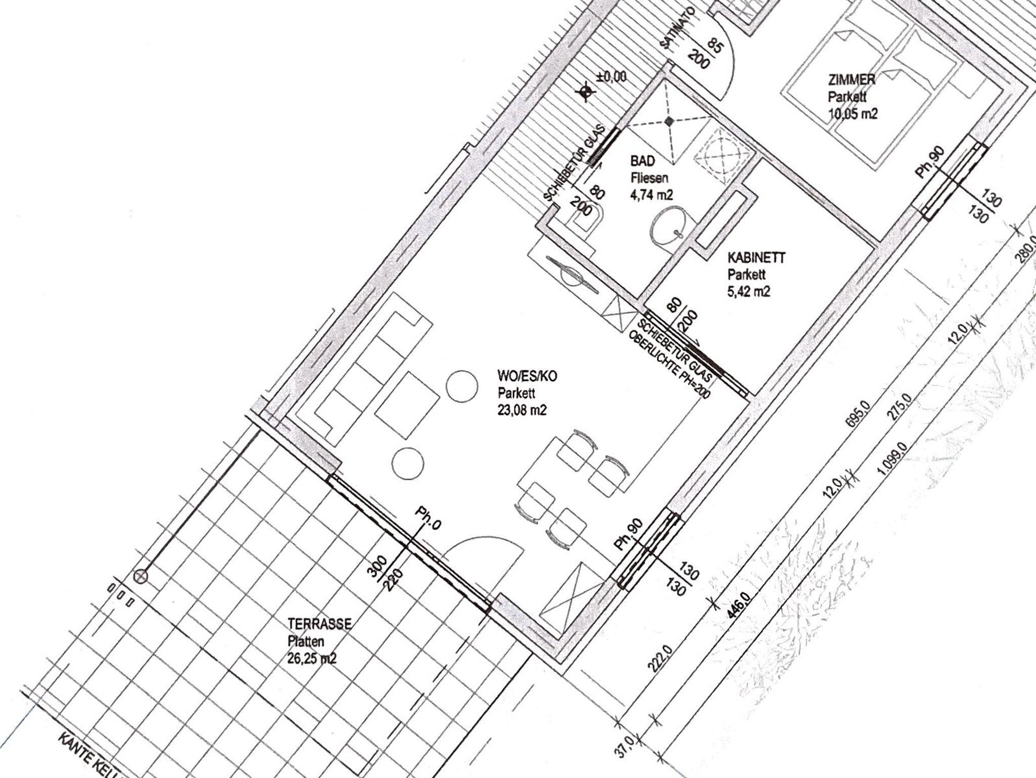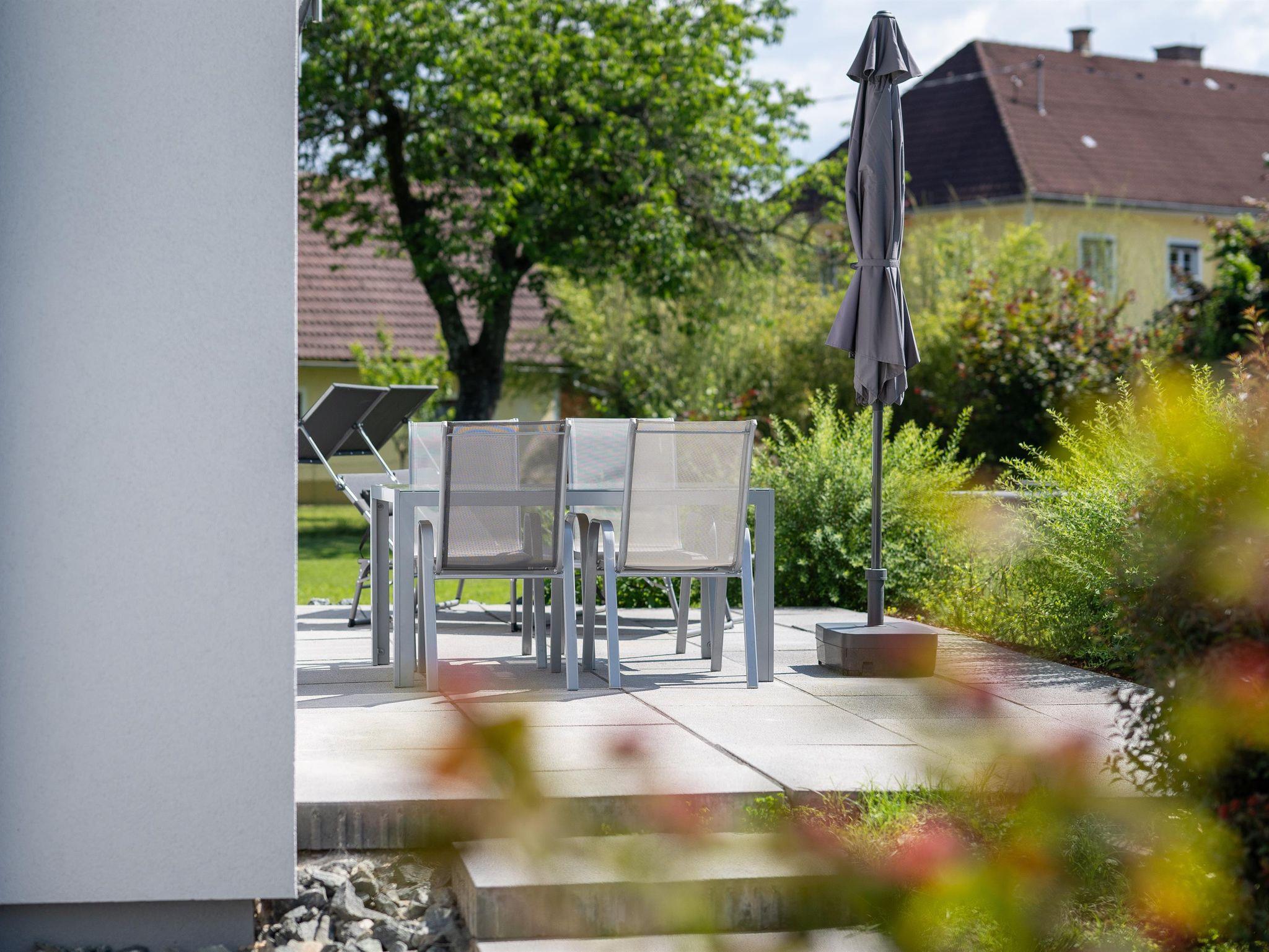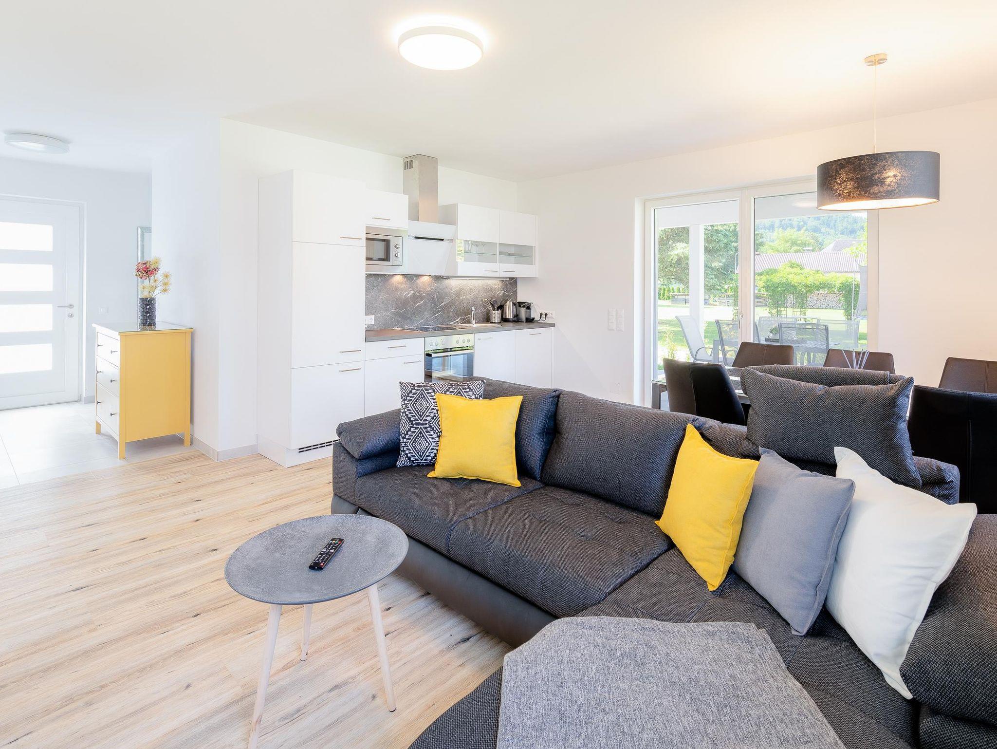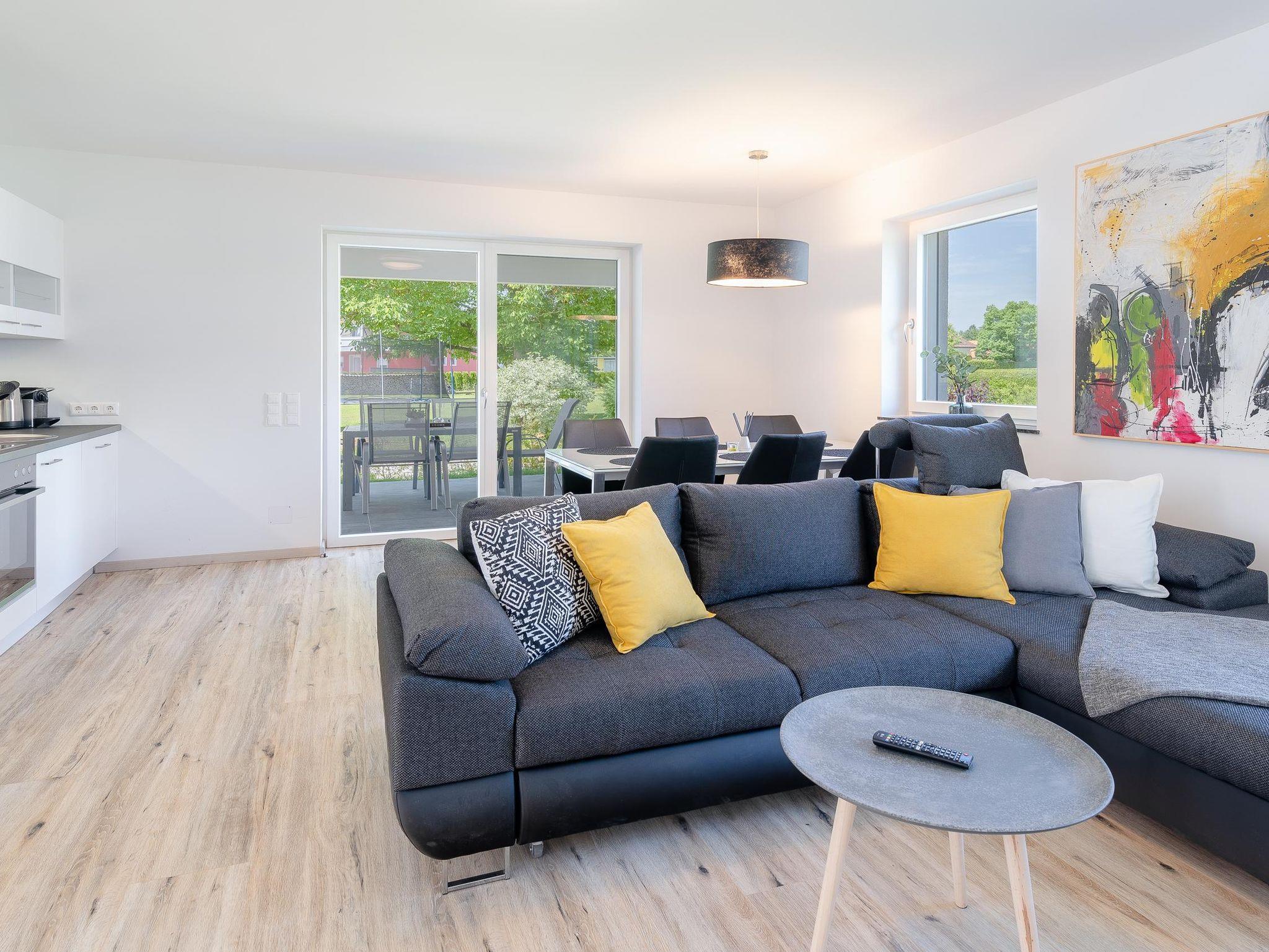 Wohnen am Römerweg TOP 3 57m² - maximal 5 Personen, Erdgeschoss Modernes, vollständig ausgestattetes Apartment, Badezimmer, Wohnraum mit Schlafcouch und großer überdachter Terrasse Richtung Westen, 60m² privater Garten, ein Schlafzimmer mit Doppelbett, ein Schlafzimmer mit Stockbett