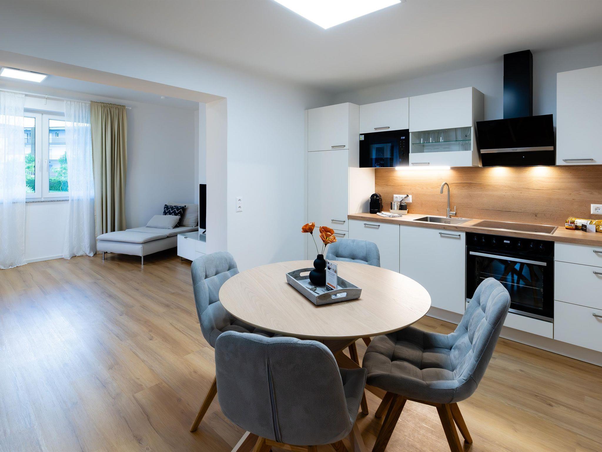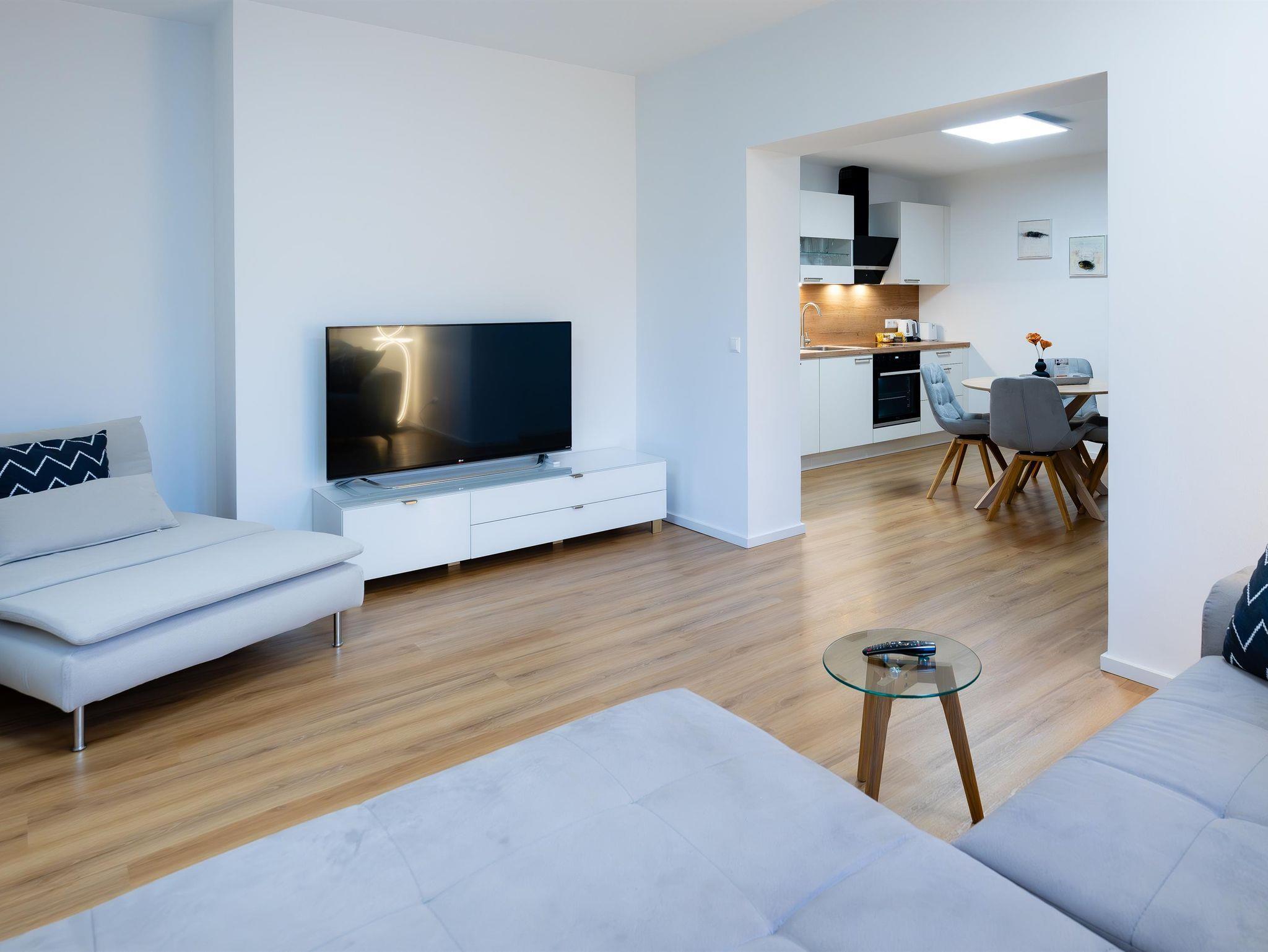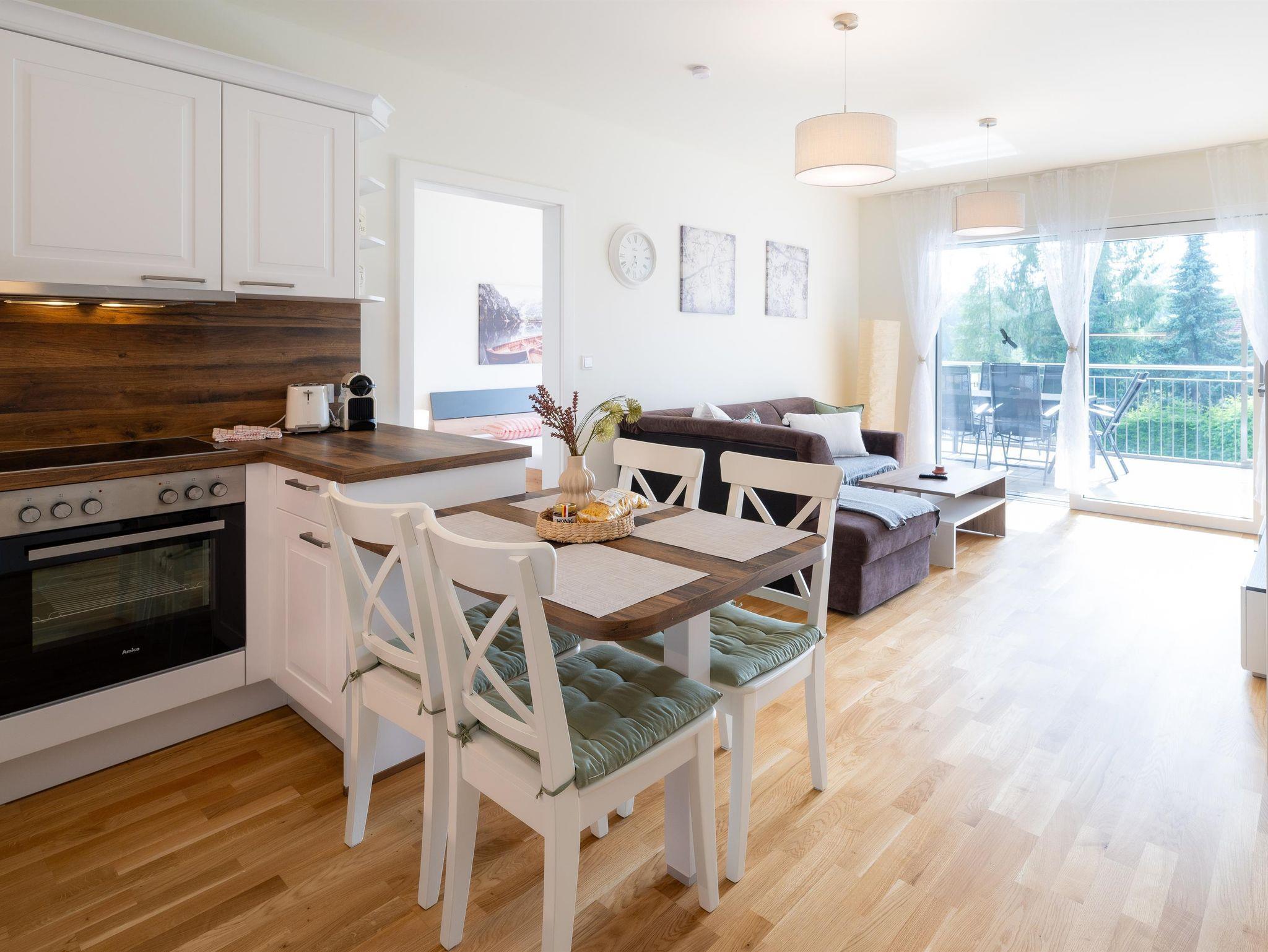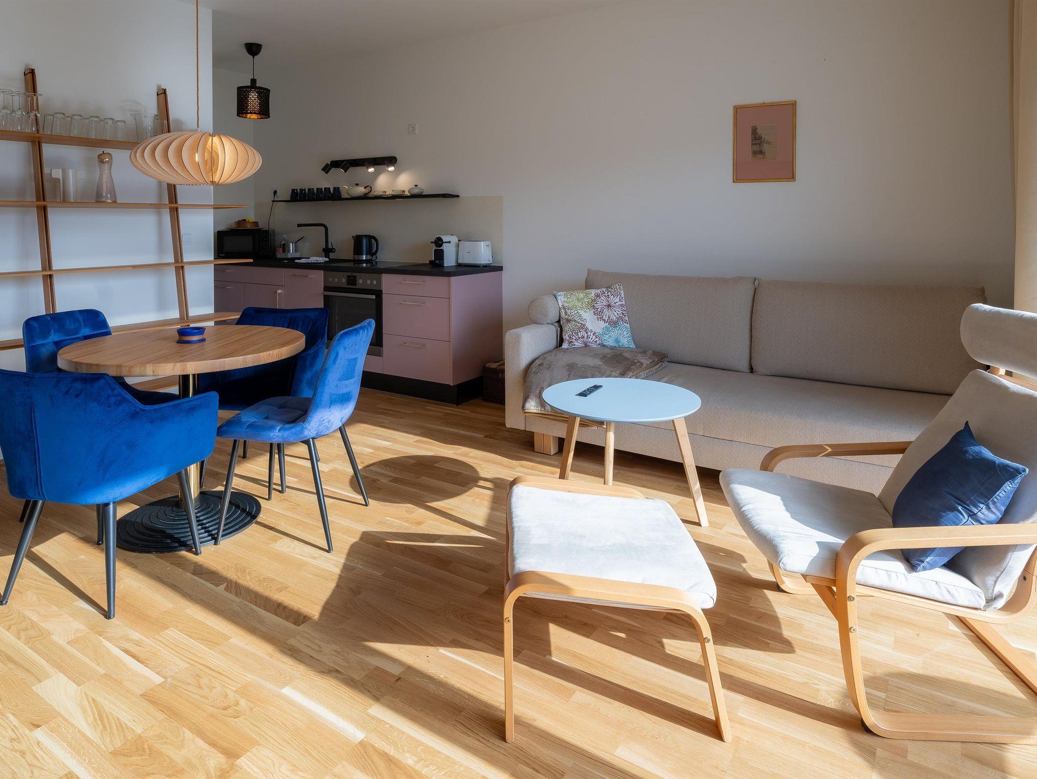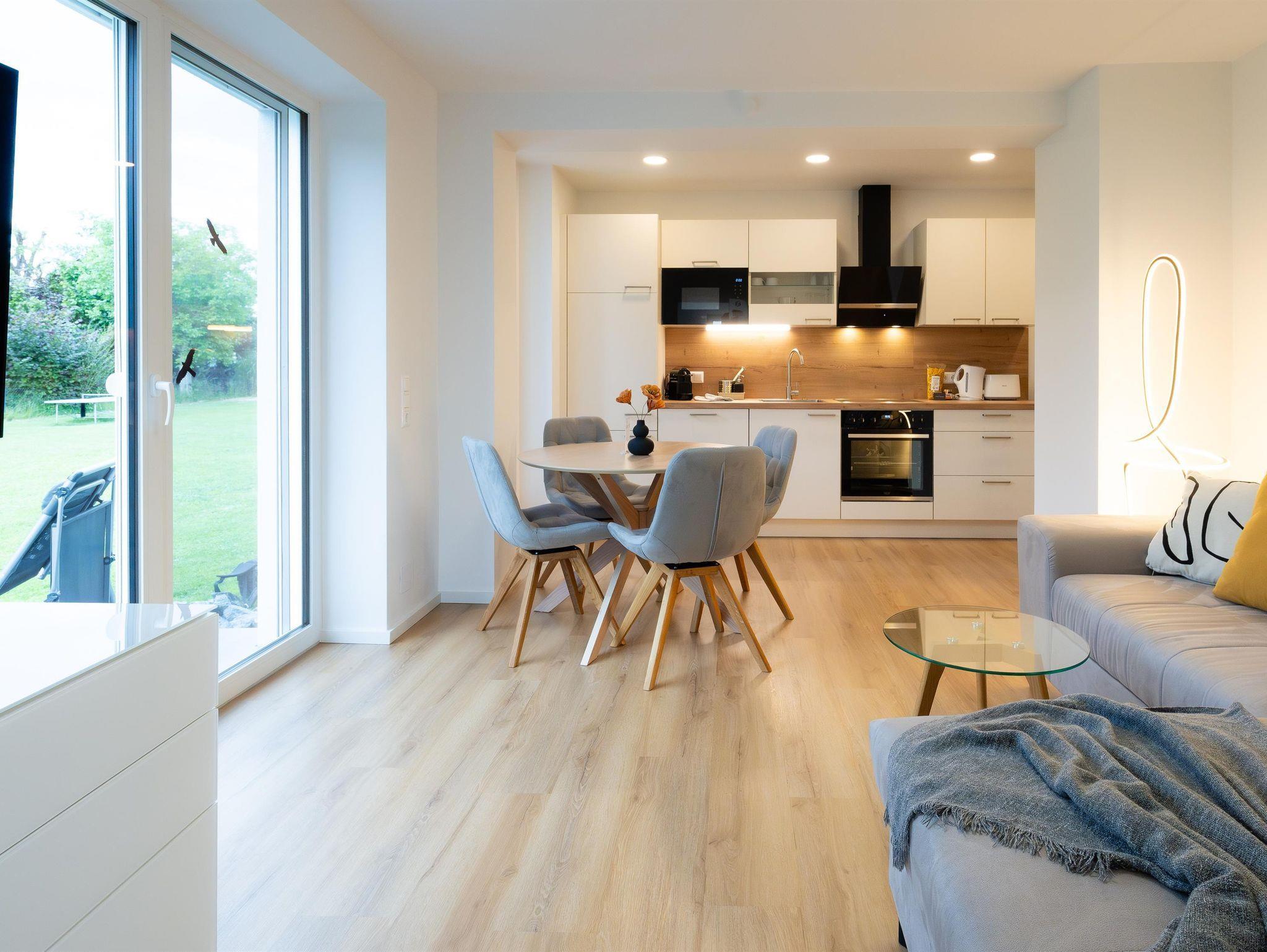 Die modernen Wohnungen bieten Platz für bis zu fünf Personen und grenzen direkt an die Ostuferpromenade.