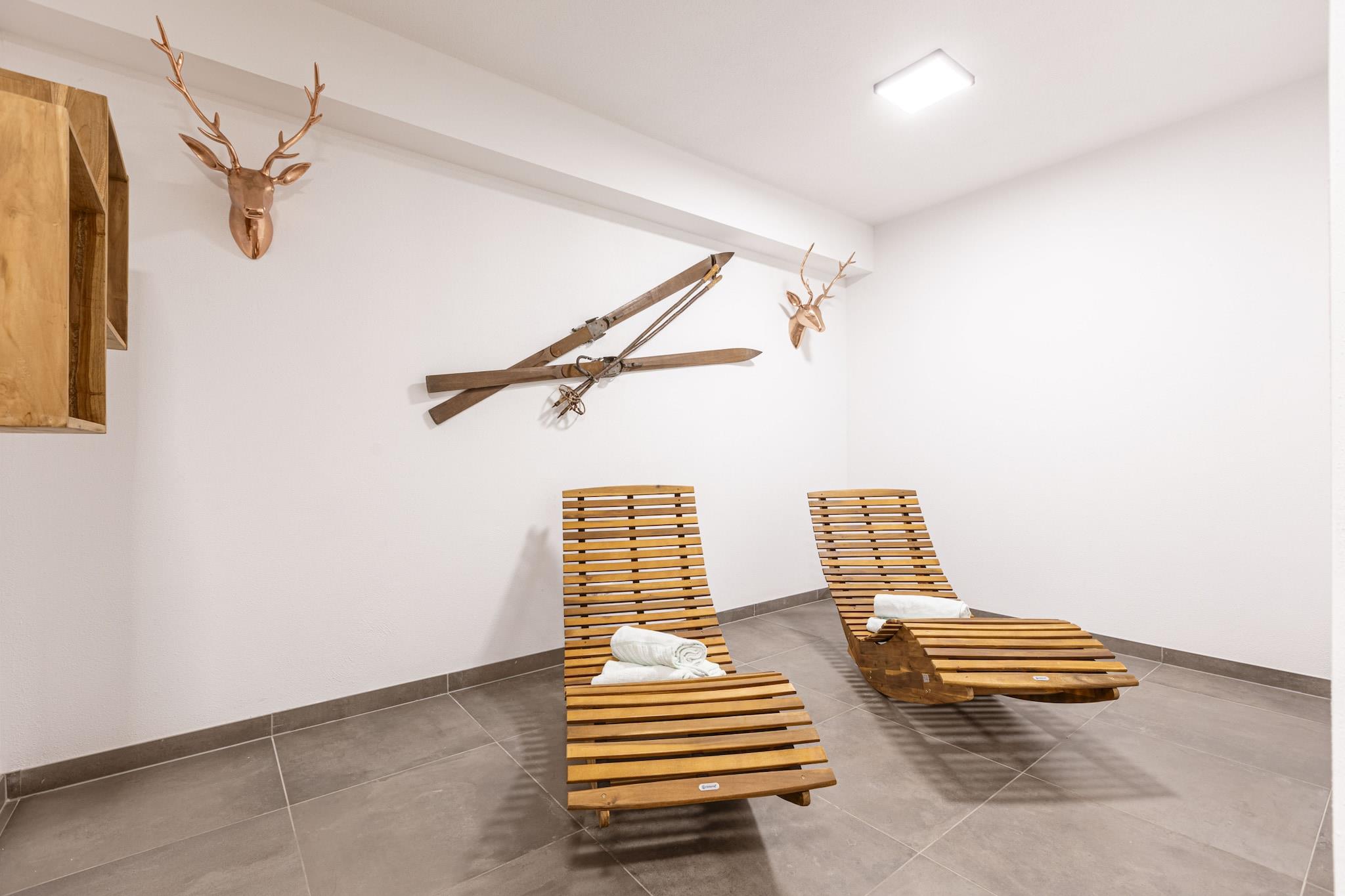 On 125 m² the Superior Chalet # 4A with Sauna offers space for up to 8 people. The holiday home has 3 bedrooms with comfortable double beds, 1 bedroom with 2 single beds, 3 bathrooms with shower and toilet, a furnished terrace and balcony with mountain view. For a cozy end of the day, the cottage has its own sauna. The open kitchen in the is fully equipped: Cutlery and (cooking) utensils are available, a ceramic hob, oven, a dishwasher and a fridge with freezer compartment are also part of the equipment, as well as a toaster, kettle and coffee maker. A small ALPS RESORTS starter set with dishwasher tabs, dishwashing detergent (sample), sponge, garbage bag, cleaning cloth and dishtowel is ready upon your arrival. WLAN is free of charge, satellite TV.