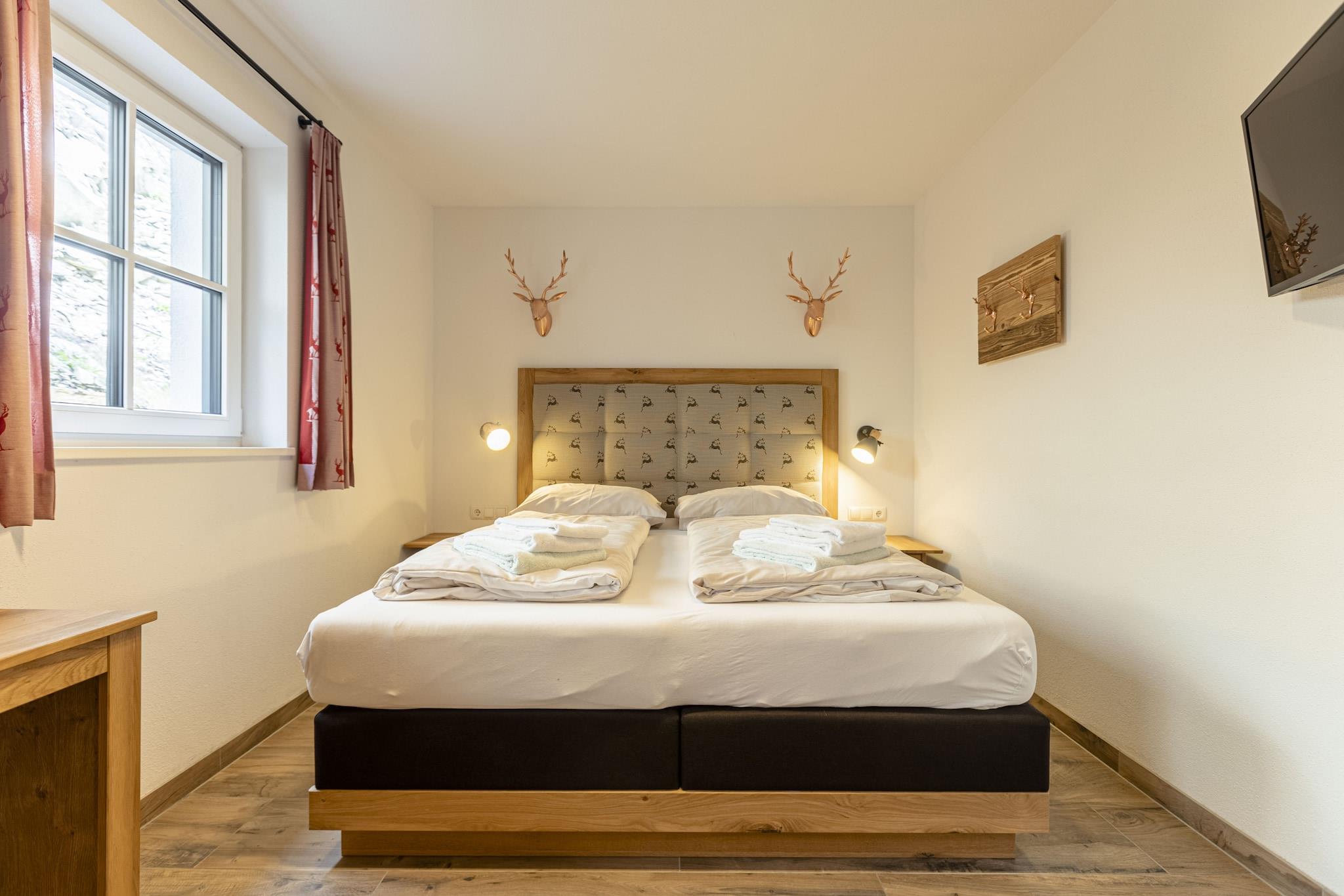 On 130 m² the Superior Chalet # 5B with Sauna offers space for up to 10 people. The holiday home has 4 bedrooms with comfortable double beds, 3 bathrooms with shower and toilet, a furnished terrace and balcony with mountain view. Additionally, you find 1 double sofa bed in the living room. For a cozy end of the day, the cottage has its own sauna. The open kitchen in the is fully equipped: Cutlery and (cooking) utensils are available, a ceramic hob, oven, a dishwasher and a fridge with freezer compartment are also part of the equipment, as well as a toaster, kettle and coffee maker. A small ALPS RESORTS starter set with dishwasher tabs, dishwashing detergent (sample), sponge, garbage bag, cleaning cloth and dishtowel is ready upon your arrival. WLAN is free of charge, satellite TV. Dog-friendly: On request, your dogs are welcome (bookable online)