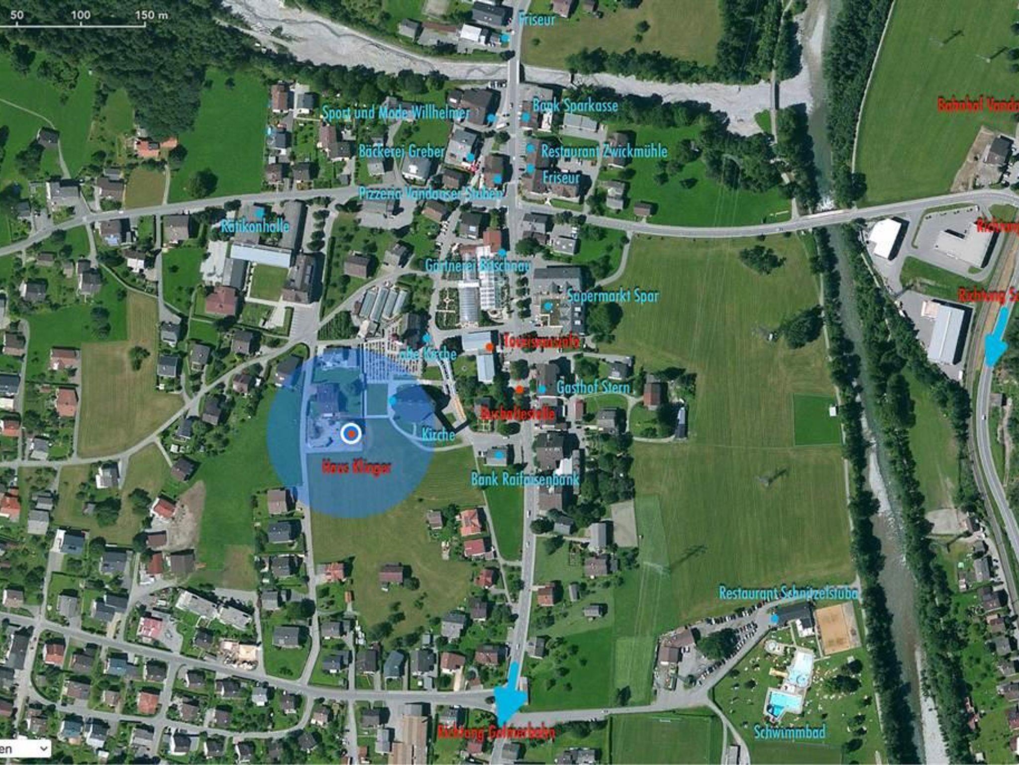 Zur Talstation des Familienfreundlichen Schigebiet Golm sind es ca. 600m das zu Fuß oder mit einem Bus ca. 200m leicht erreichbar ist.