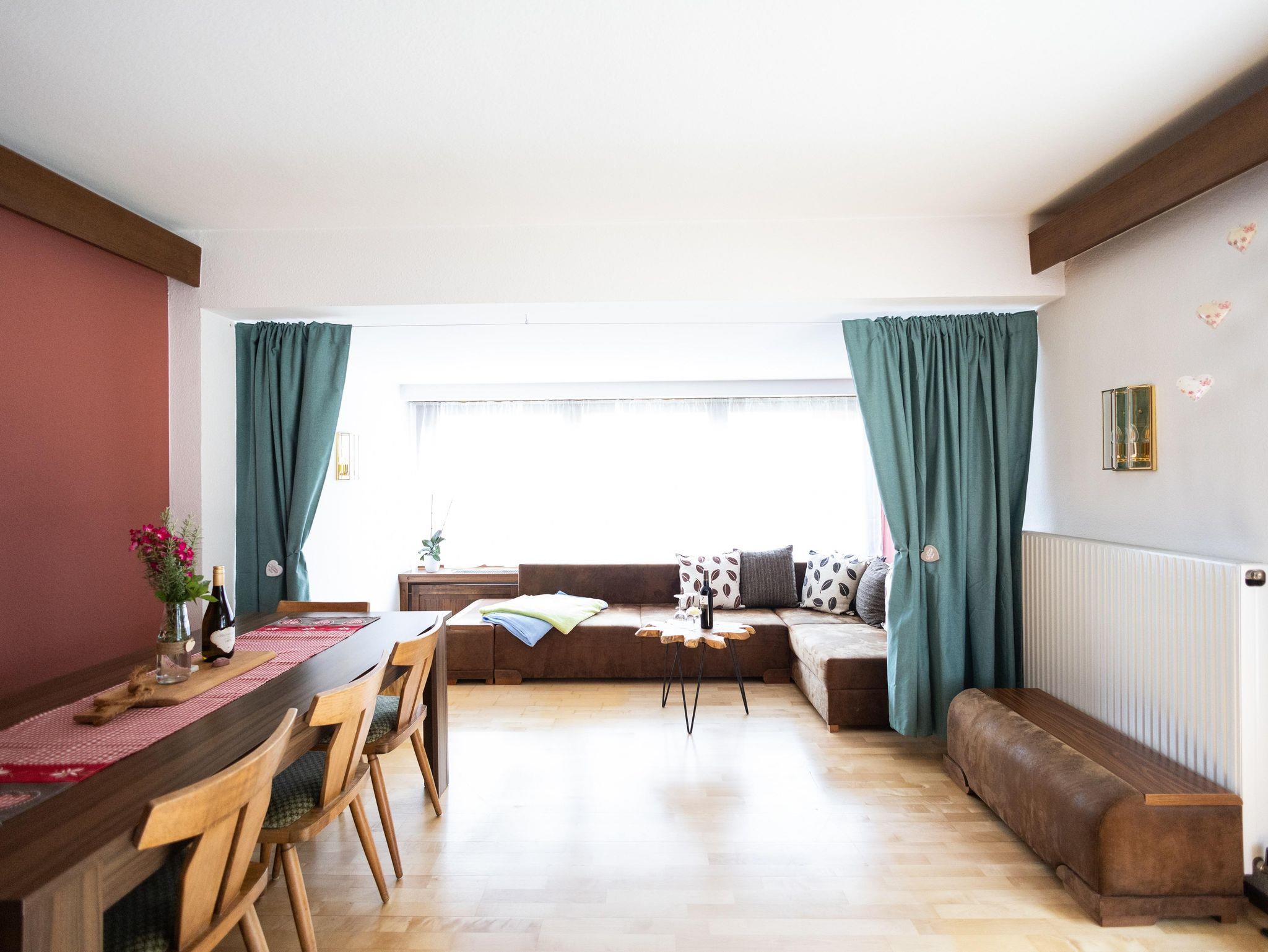 Die Ferienwohnung Jordis befindet sich im Haus Mansaura im 1. Stock. Sie verfügt über einen Balkon der nordöstlich ausgerichtet ist und bietet einen atemberaubenden Blick auf die umliegenden Berge. Ebenso ist sie mit einer großzügigen, südwetlich ausgerichteten Terrasse mit Garten ausgestattet. Sie bietet 3 Schlafzimmer, ein Separe mit Schlafsofa und somit Platz für 7 Personen.