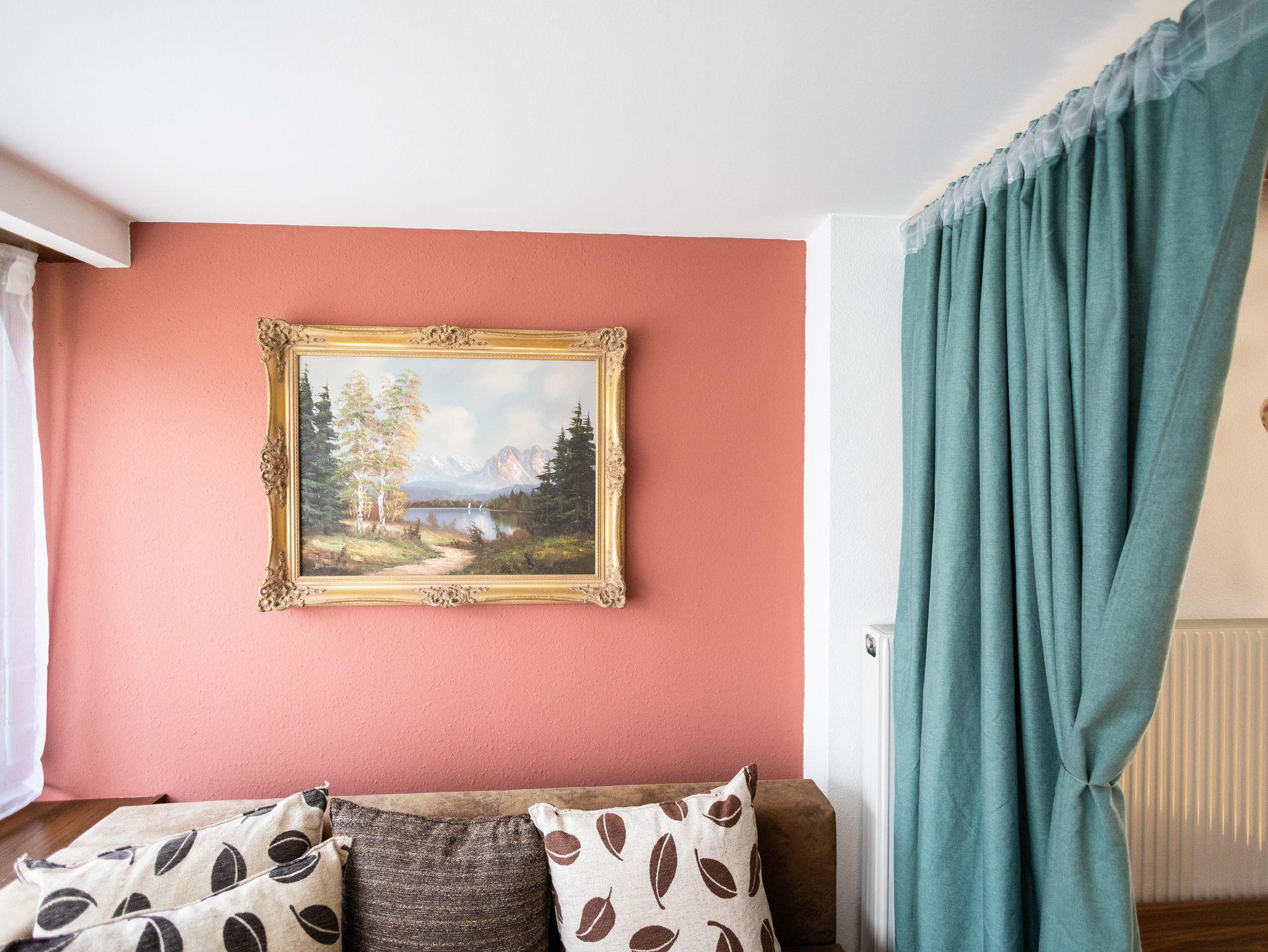 Die Ferienwohnung Jordis befindet sich im 1. Stock. Zimmer Grün mit französischem Bett, Rollladen und Zugang zur Terrasse mit Garten. Wohnzimmer mit ausziehbarer Schlafcouch (Bereich kann durch einen Vorhang separiert werden), großzügigem Esstisch, Rollläden und Zugang zur Terrasse mit Garten. Zimmer Blau mit Einzellbett und Zugang zum Balkon. Zimmer Pur Pur Doppelbett und Zugang zum Balkon.
