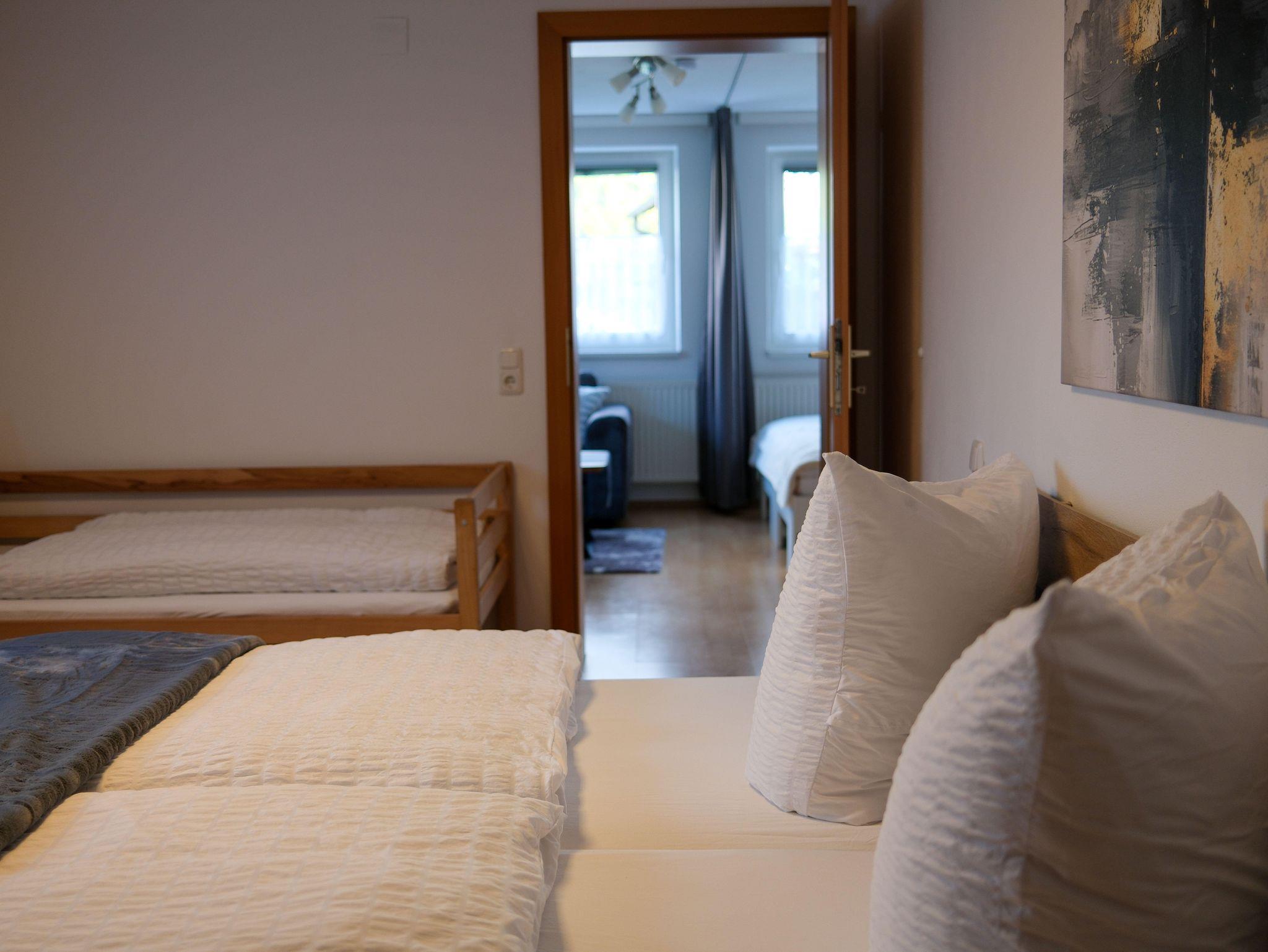 Unsere Ferienwohnung besteht aus 2 Doppelbetten, 1 Einzelbett und einer ausziehbaren Couch für 1-2 Personen. Die Küche ist komfortabel ausgestattet mit Nespressokaffeemaschine, Mikrowelle, Wasserkocher und Toaster. Ebenfalls vorhanden sind Bettwäsche, Geschirrtücher, Dusch- und Handtücher.