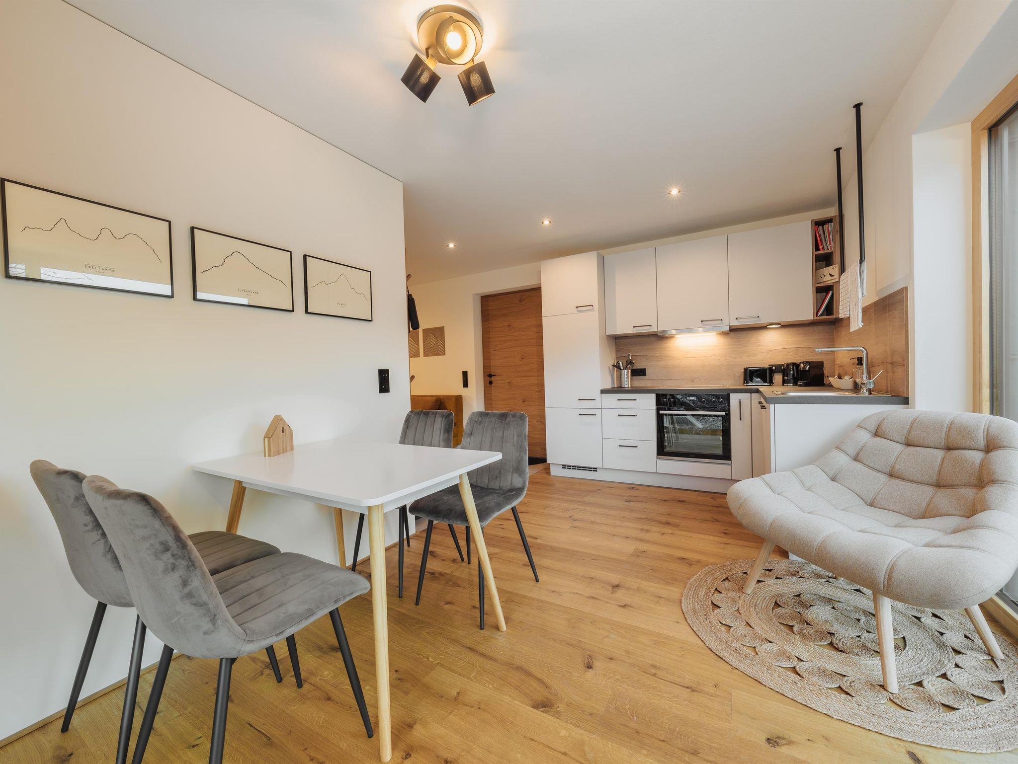 Unsere Ferienwohnung bietet Platz für bis zu vier Personen. Die Wohnküche ist mit einer voll ausgestatteten Küche inklusive Kühlschrank mit Gefrierfach, Elektroherd, Backofen, Nespresso Kaffeemaschine, Toaster und Wasserkocher ausgestattet. Eine ausziehbare Couch, ein Smart TV (Internetzugang) und W-Lan sind ebenfalls vorhanden. Zudem gibt es ein Schlafzimmer und ein Badezimmer mit Dusche und WC.