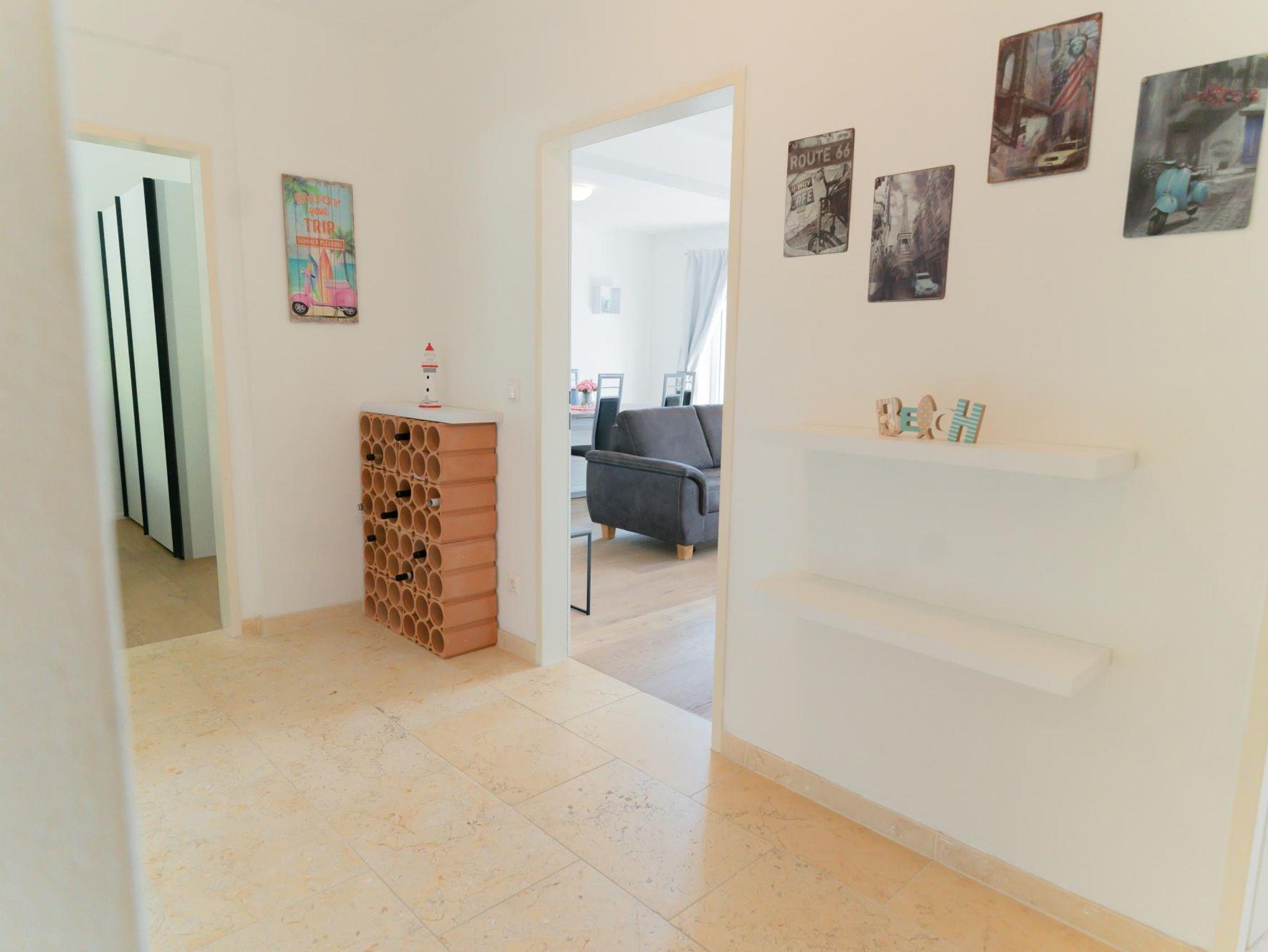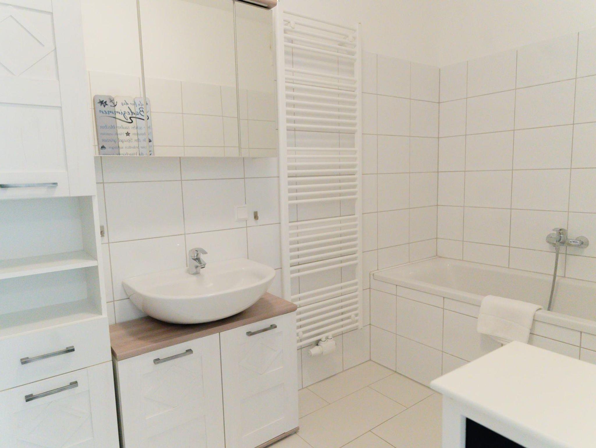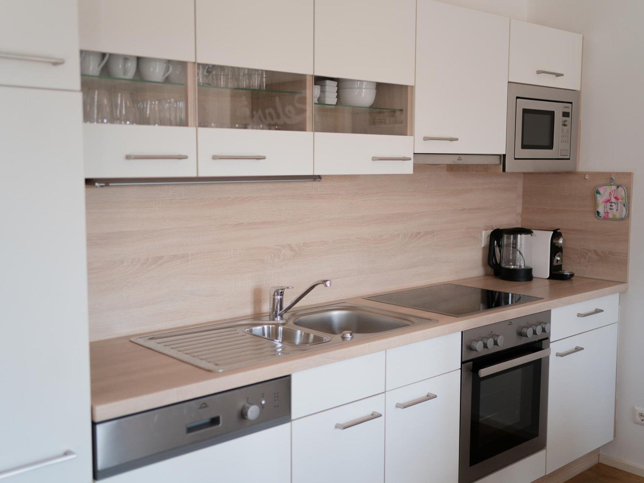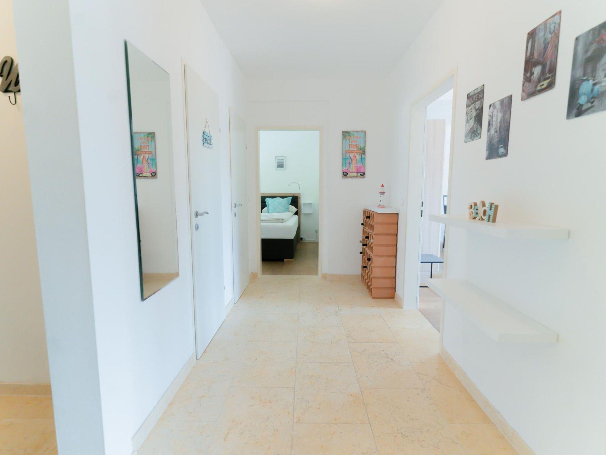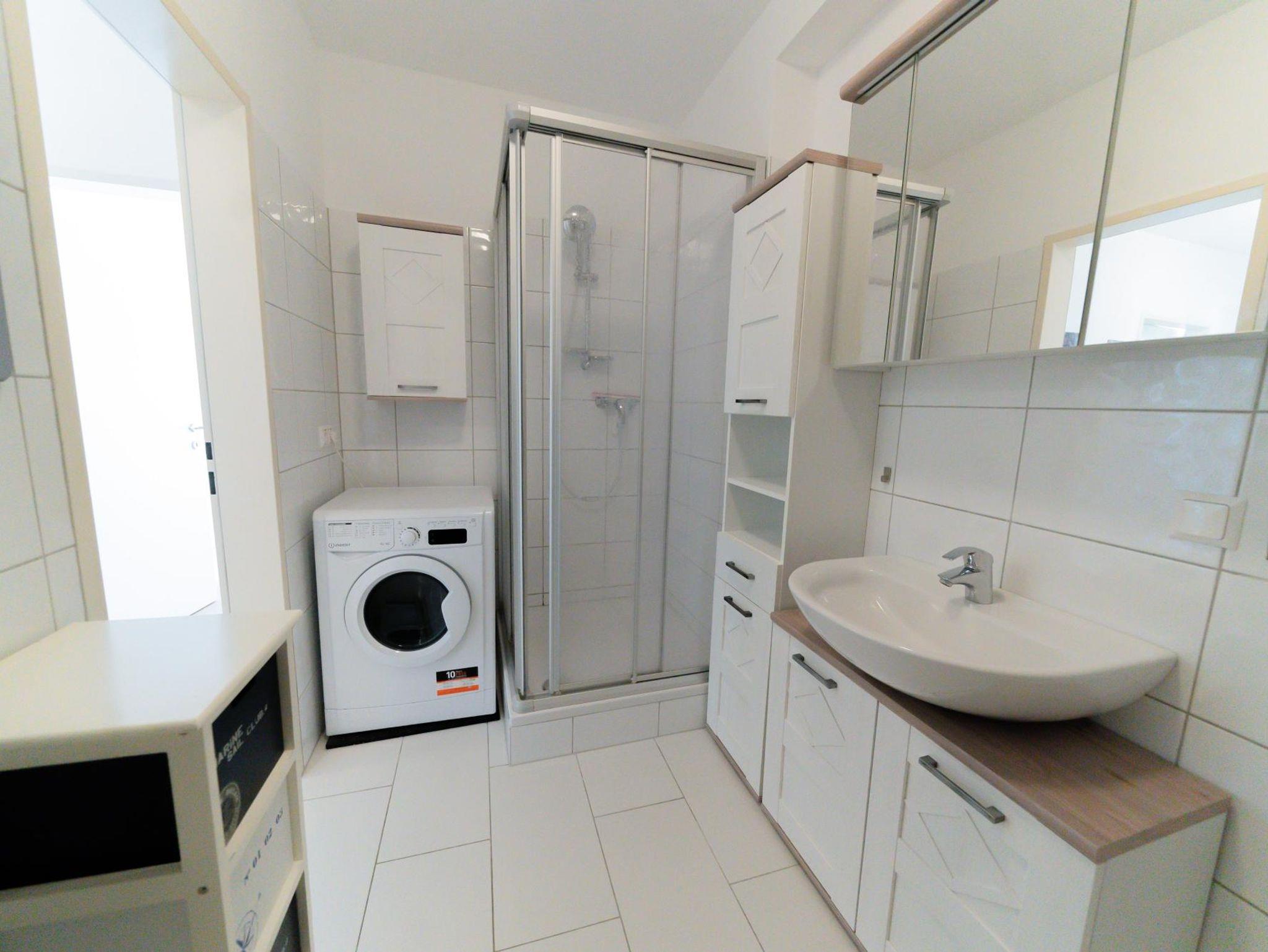 Das Apartment verfügt über 2 Schlafzimmer, eines mit einem gemütlichen Doppelbett und eines mit zwei Einzelbetten, die zu einem Doppelbett zusammengeschoben werden können. Die Lounge im Wohnbereich bietet eine gemütliche Sitz- und Schlafgelegenheit für weitere 2 Personen. In der hellen Wohnküche befindet sich ein (ausziehbarer) Essbereich, der Platz für 6 Personen bietet und eine voll ausgestattete Küche. Der schöne Sonnenbalkon ist vom Wohnzimmer, dem Essbereich und dem Schlafzimmer aus erreichbar. Das Badezimmer ist mit einer Badewanne, einer Dusche, einem WC, einem Waschtrockner und einem Handtuchtrockner ausgestattet. Zusätzlich gibt es noch ein separates WC. Ein Carport- Stellplatz vor dem Haus steht kostenlos zur Verfügung.