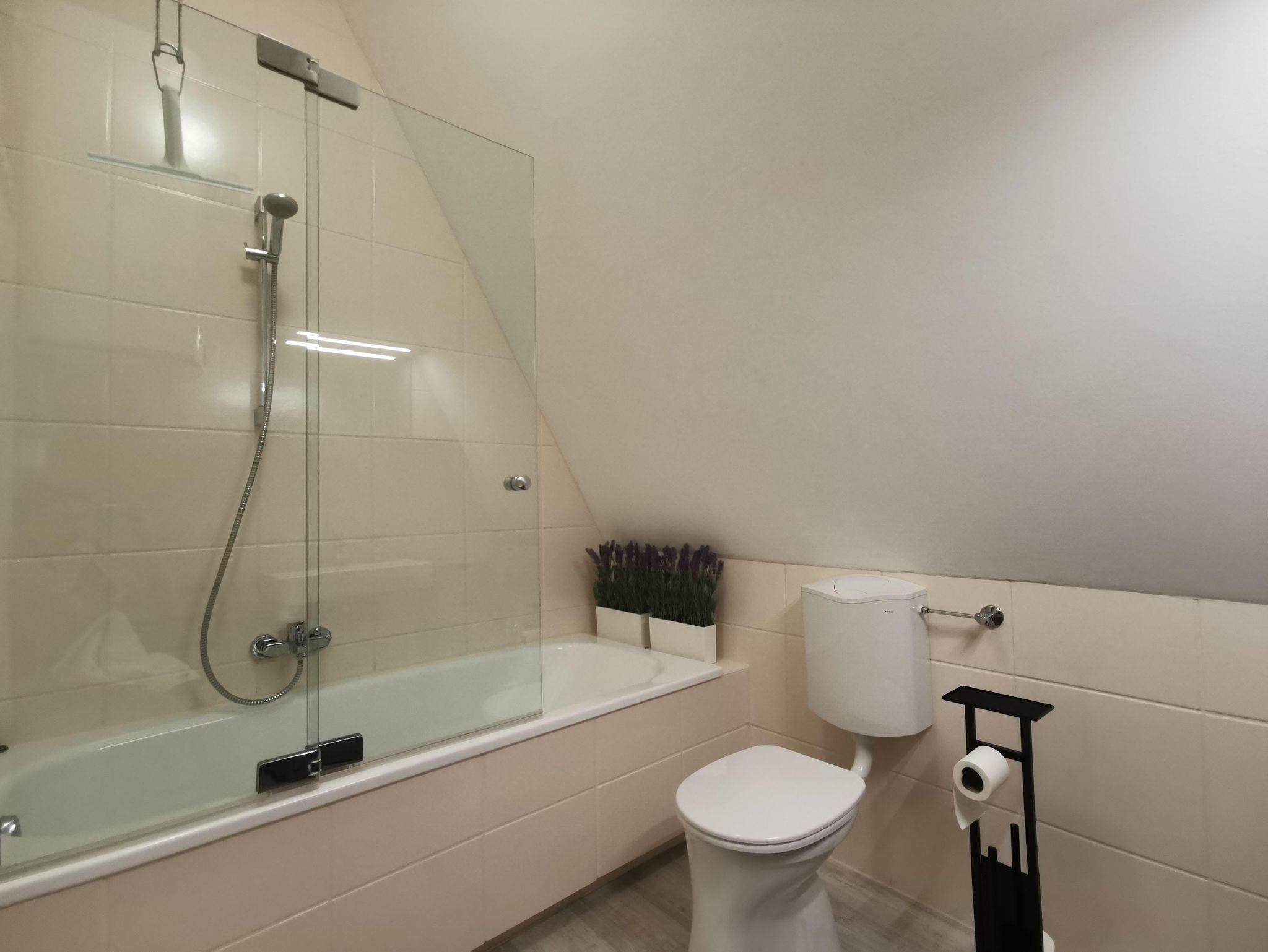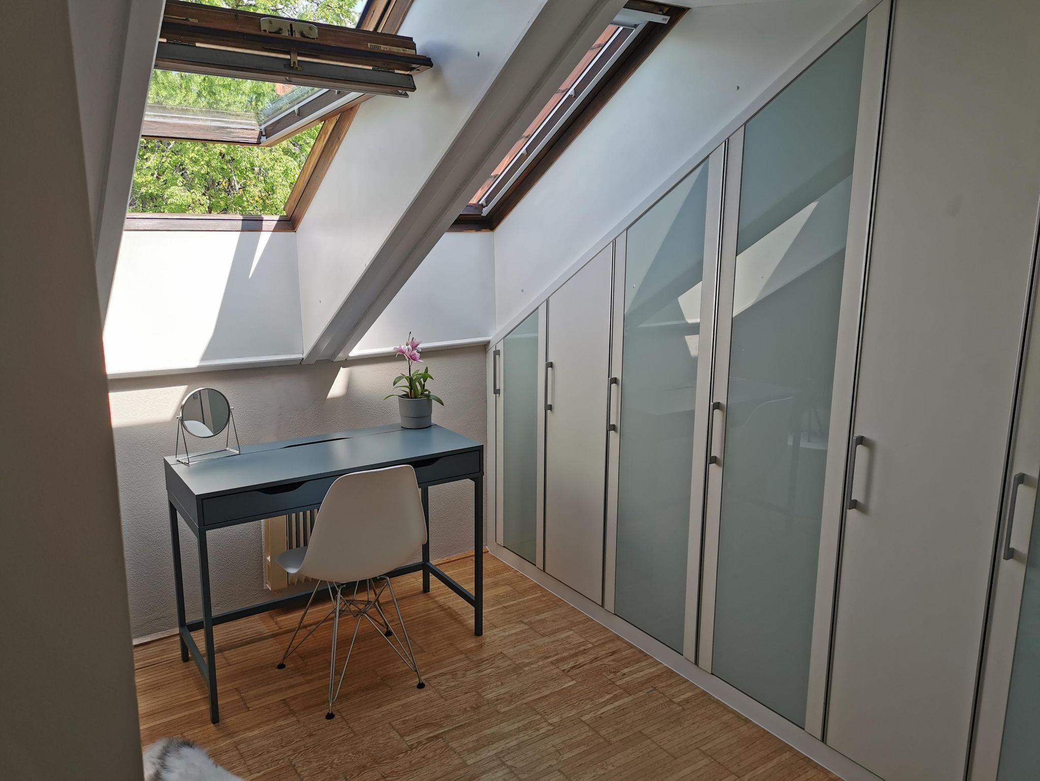 Eine moderne und sonnenlichterfüllte Dachgeschoßwohnung mit Klimaanlage, ein Schlafzimmer ein Badezimmer und eine Wohnzimmer mit TV. Perfekt für einen Urlaub für bis zu drei Personen. Das atmosphärische Badezimmer mit einer Badewanne und die kleine aber feine Küche sorgen dafür, dass Du dich, wie Zuhause fühlen kannst.