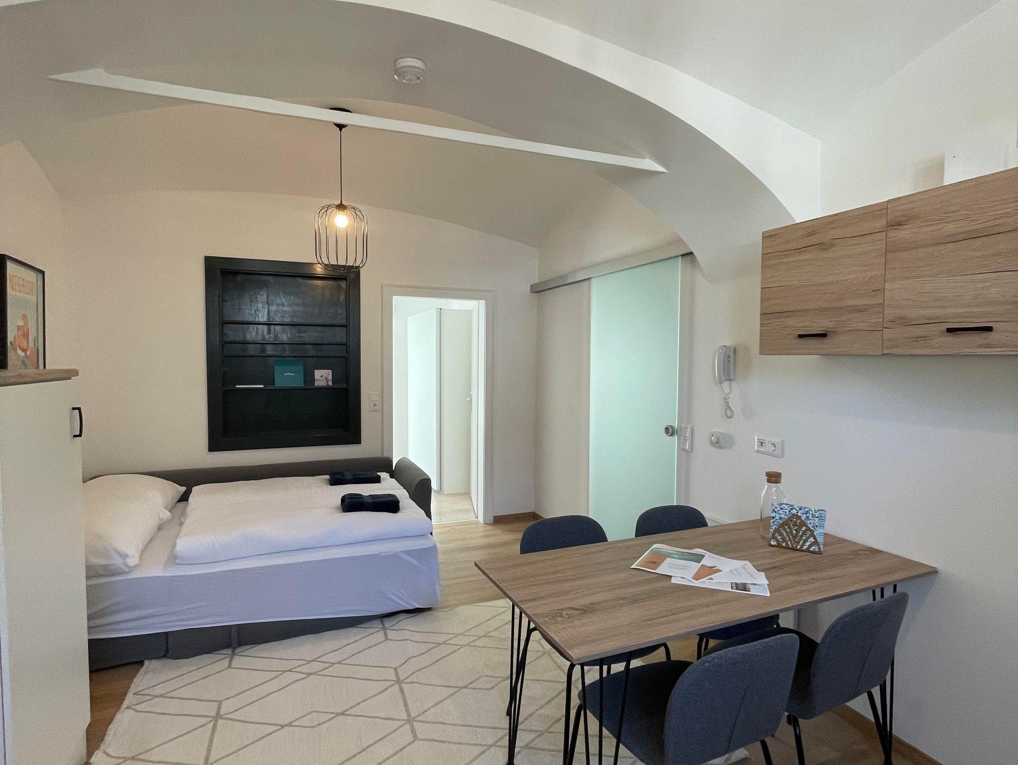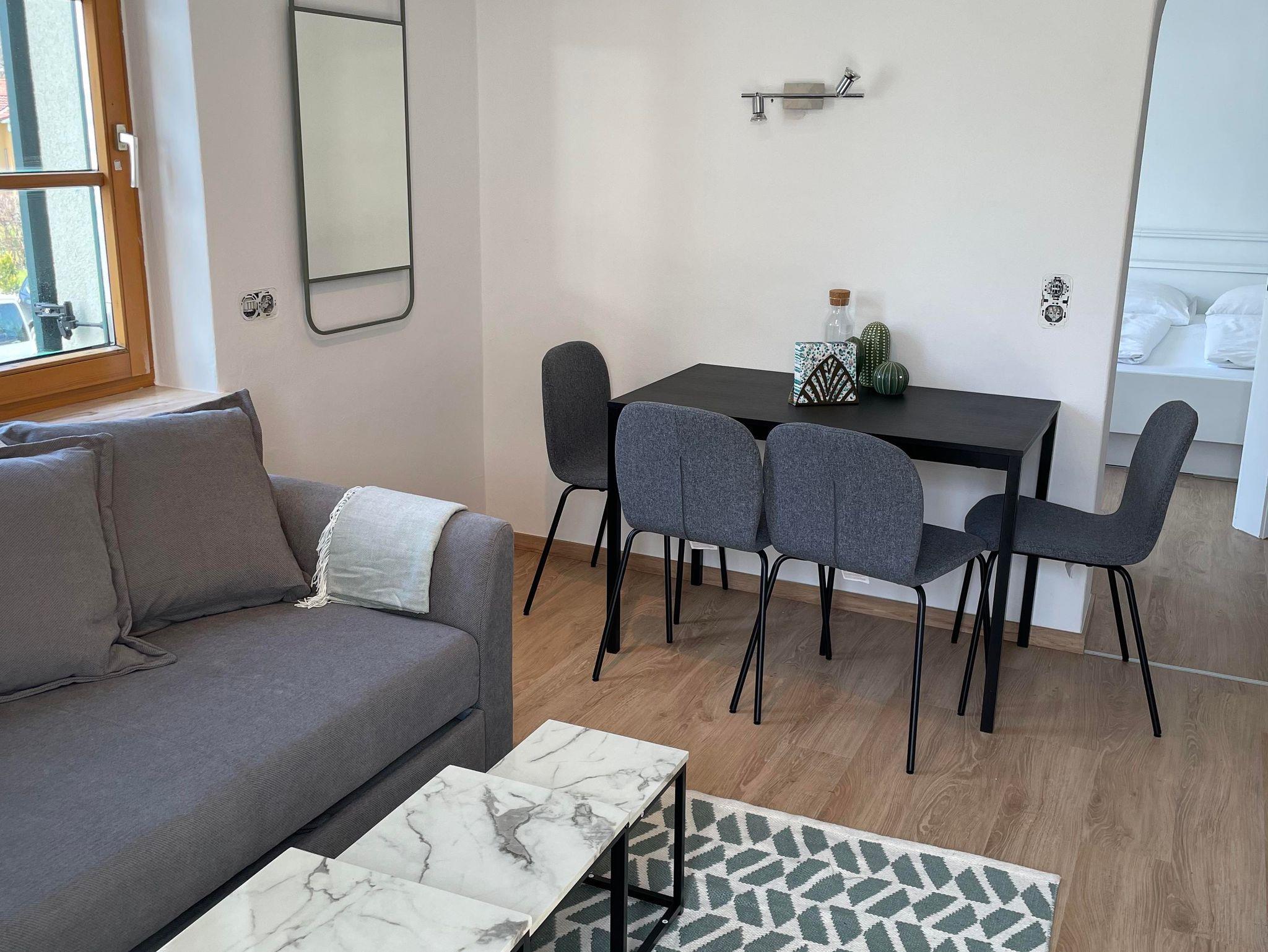 Willkommen in der Rosenvilla Velden Top 5, deinem perfekten Rückzugsort für bis zu 4 Personen. Das 30 m² große Apartment im zweiten Stock bietet ein gemütliches Wohnzimmer mit ausziehbarer Couch, eine gut ausgestattete Küche und ein Schlafzimmer mit Doppelbett. Das Badezimmer ist mit einer Dusche und einem WC ausgestattet.