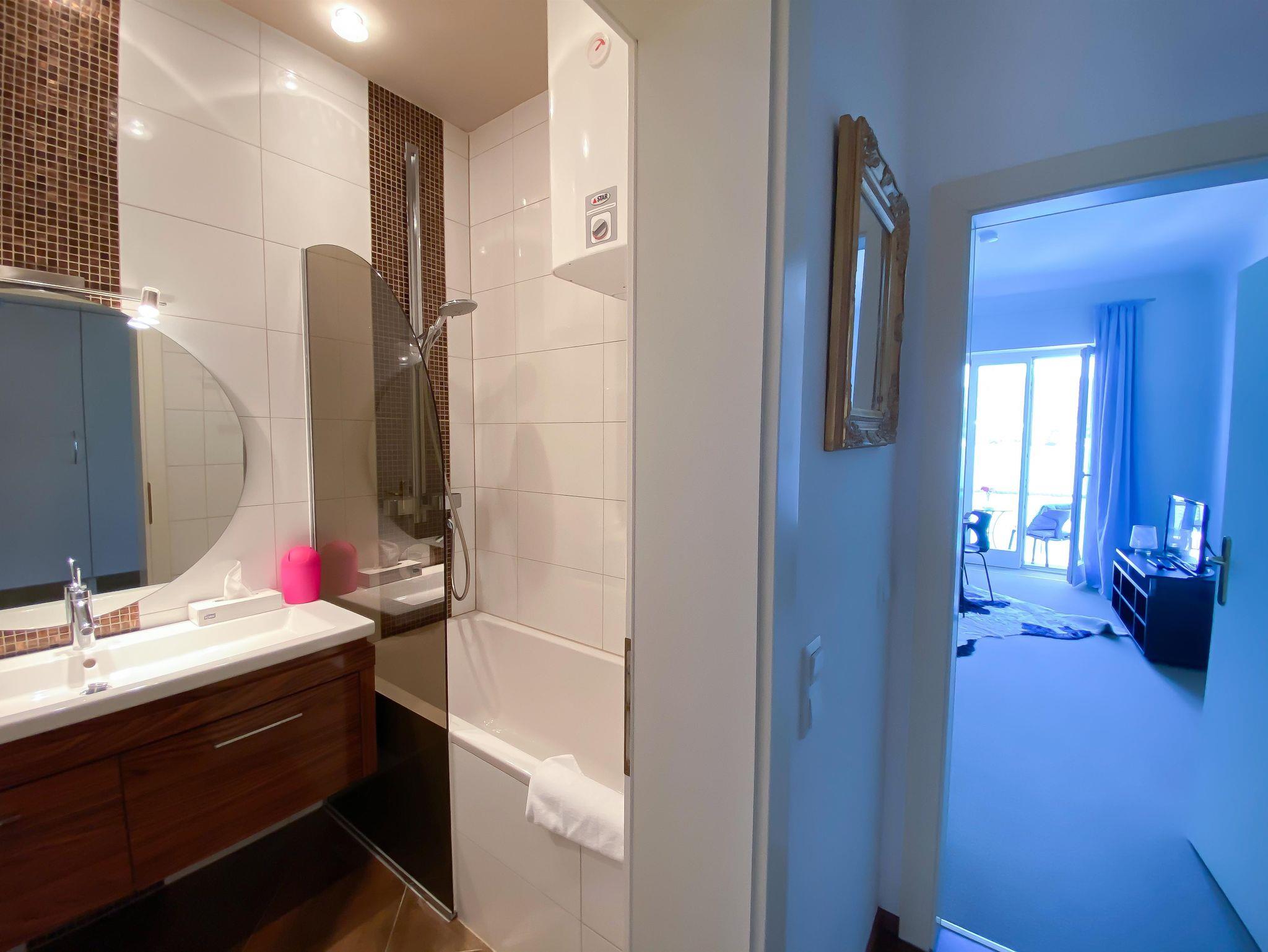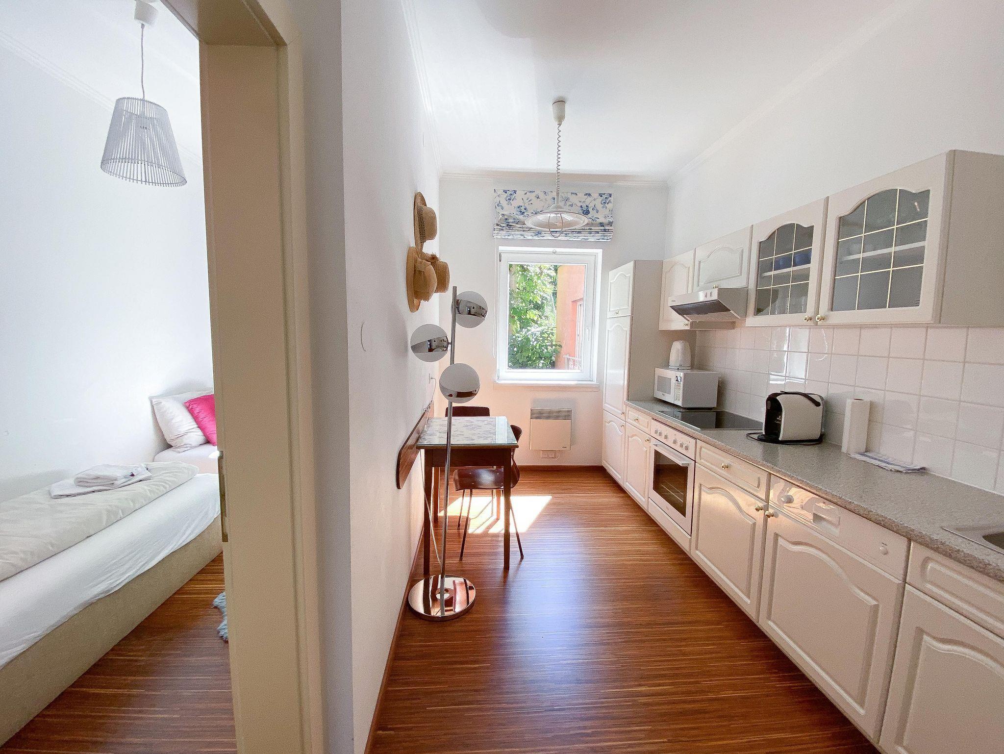 Die Wohnung befindet sich im 1. Stock des Hauses direkt am Seecorso mit Blick auf den Wörthersee. Mit seinen 2 Schlafzimmern ist das Apartment ideal geeignet für Familien. In einem Schlafzimmer dürfen 2 Personen im Kingsize Bett zur Ruhe kommen, das zweite Zimmer beinhaltet zwei Einzelbetten. Außerdem verfügt die 60m² große Wohnung über ein großzügiges Badezimmer mit Dusche und Badewanne. Die beiden Balkone eignen sich perfekt um einen erlebnisreichen Tag mit Blick auf den Wörthersee ausklingen zu lassen.