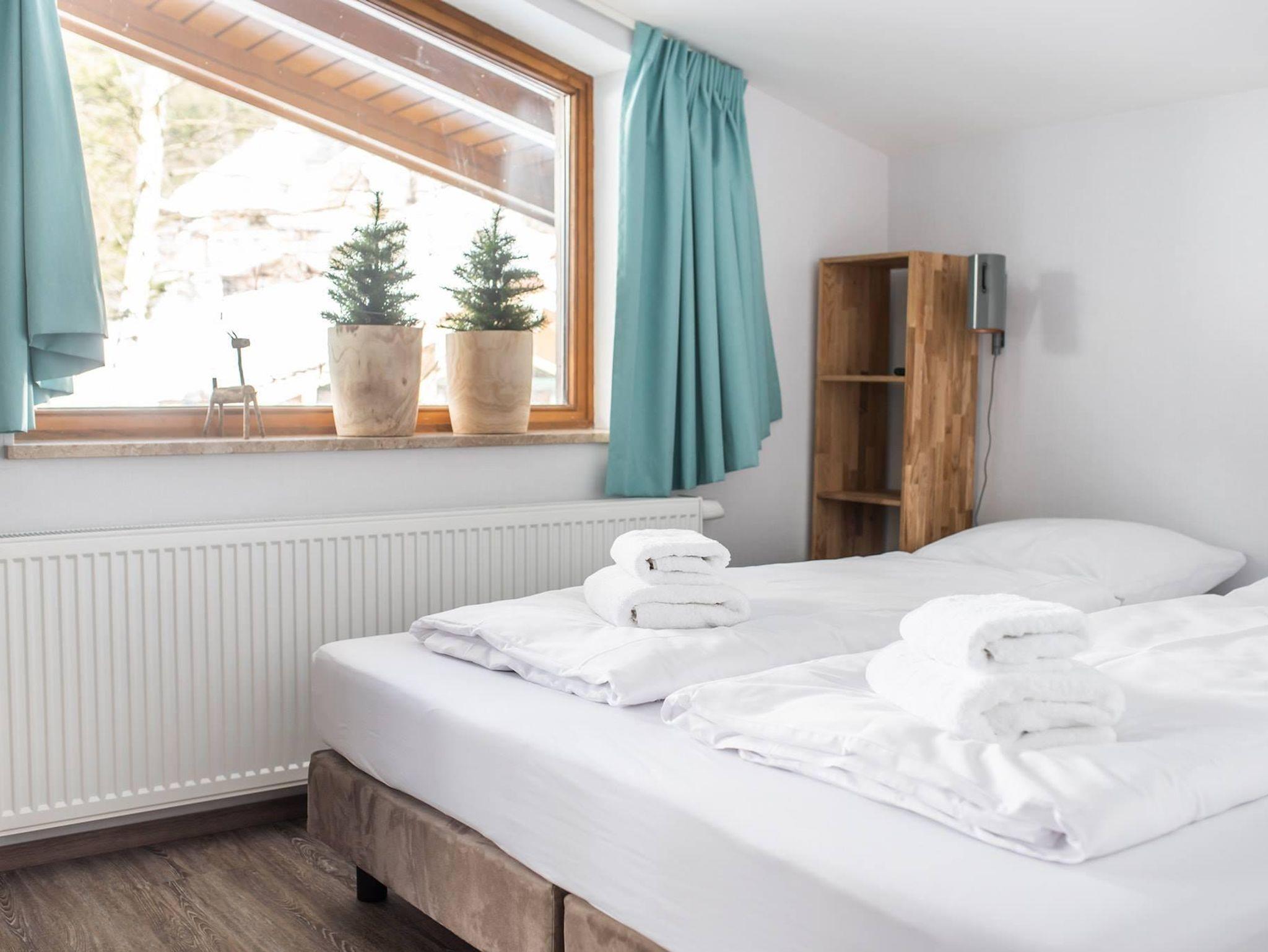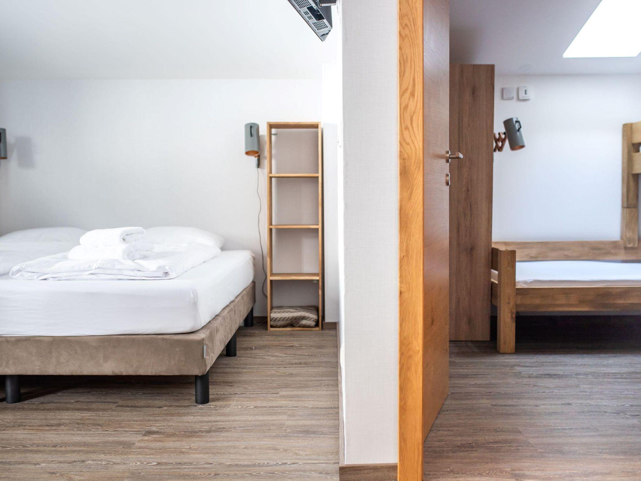 Die Wohnung ist im Studio-Stil gestaltet und verfügt über einen Wohnbereich mit einem komfortablen Doppelbett, ein neues Badezimmer mit Regendusche, eine gut ausgestattete Küche mit Essbereich sowie einen Balkon, der im Schatten liegt, aber einen angenehmen Platz zum Entspannen bietet. Im Garten des Sportchalets gibt es Loungesofas, auf denen man die Sonne genießen kann.