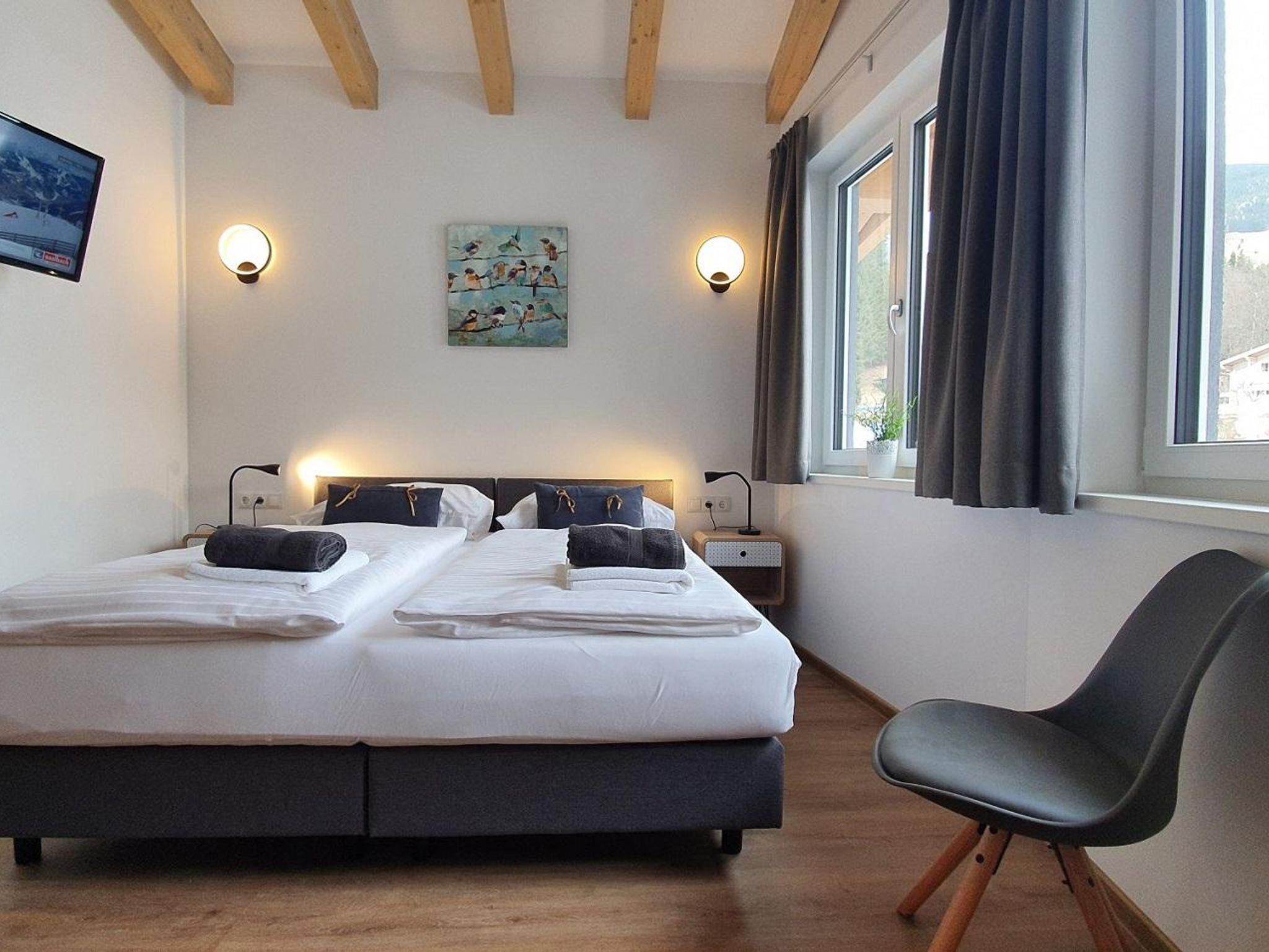 Unsere vier Lifestyle-Apartments bieten Platz für bis zu 6 Personen (3 Schlafzimmer, 2 Badezimmer) – ein idealen Ort für eine Auszeit in den Bergen für Familien und Freunde, die Natur, Sport und Erholung verbinden möchten.