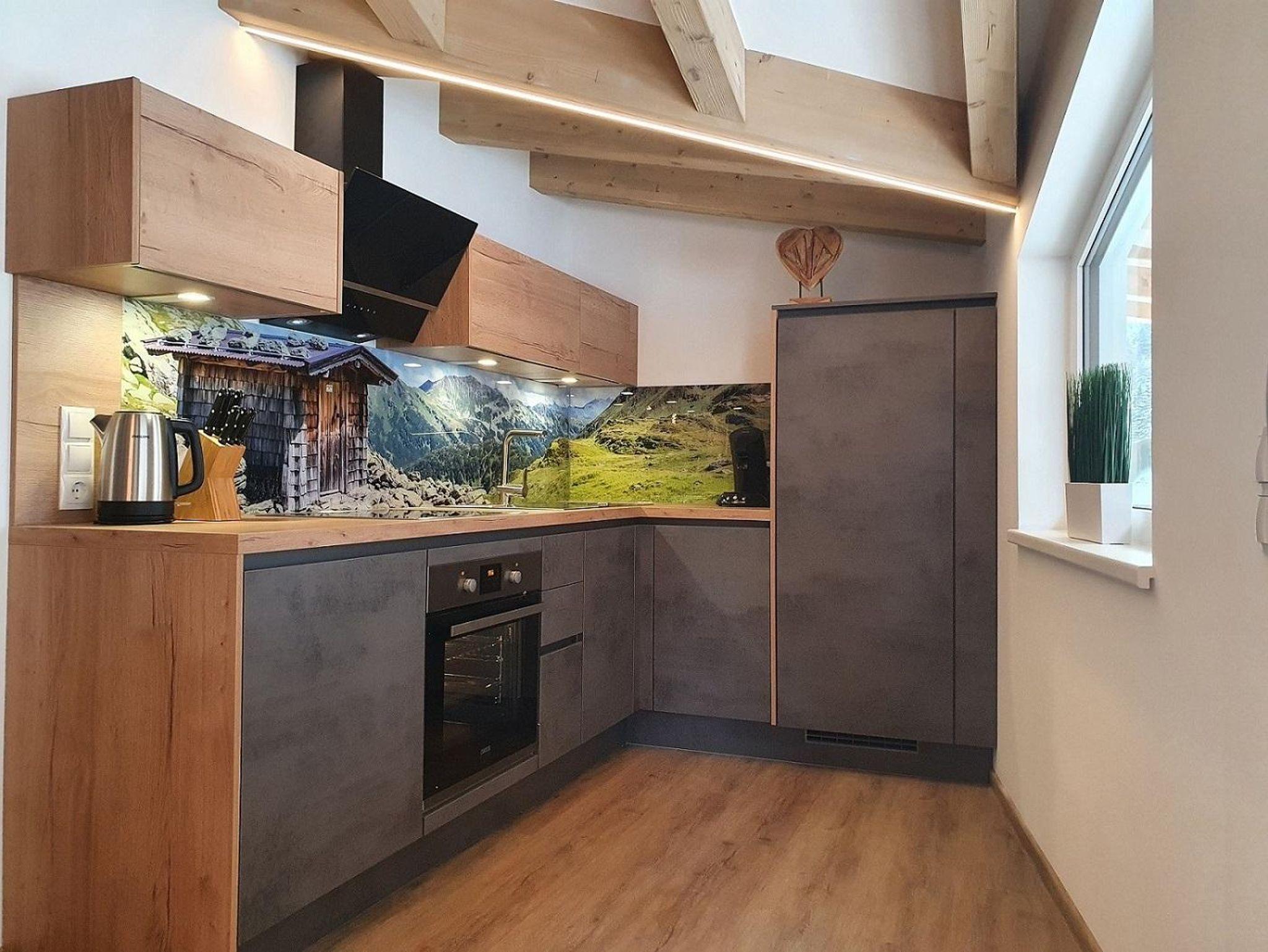 Von den sonnigen Balkonen oder Terrassen genießen Sie einen herrlichen Blick auf die umliegenden Berge, während ein idyllischer Bach hinter dem Haus für besondere Wohlfühlmomente sorgt.