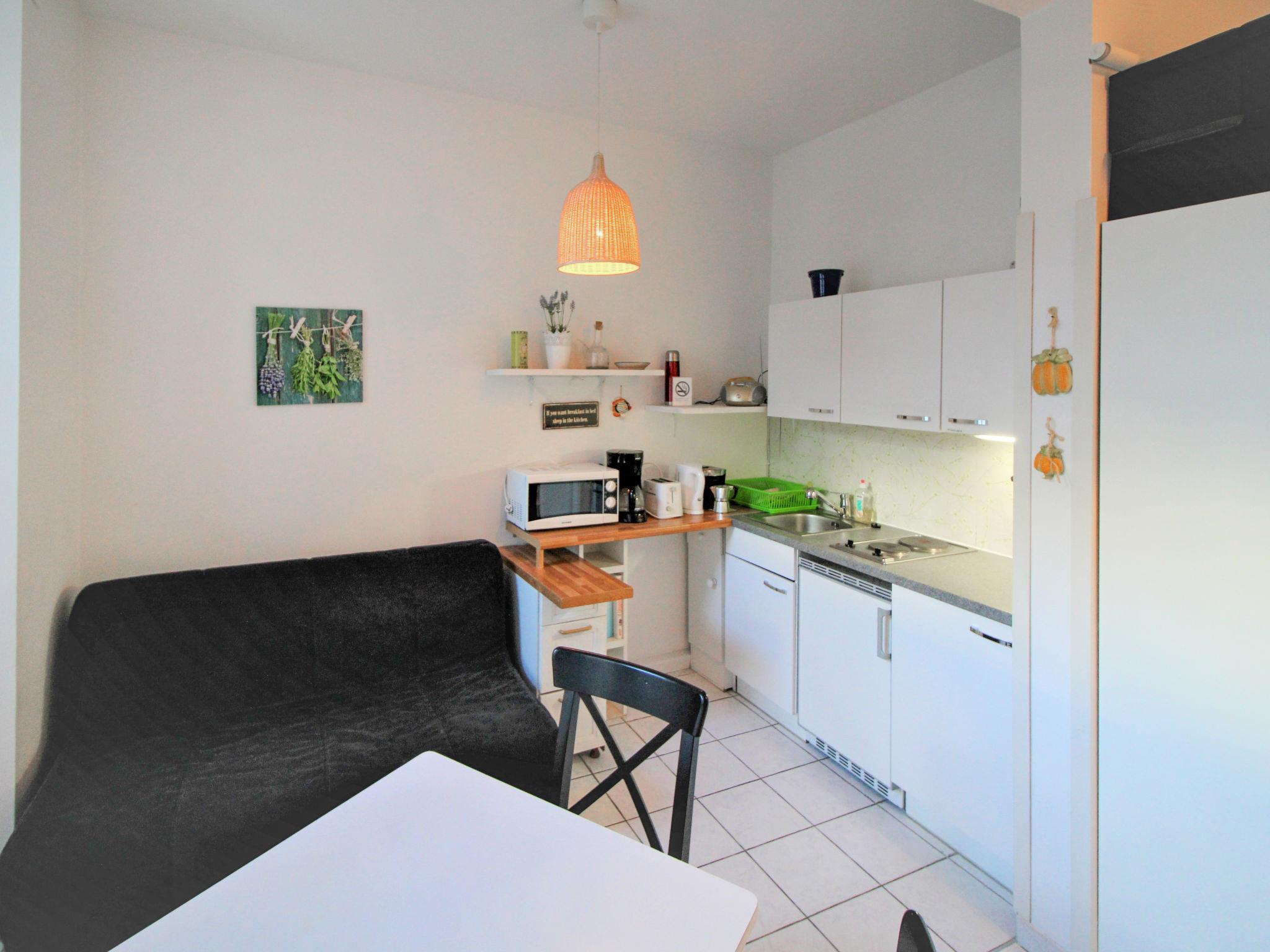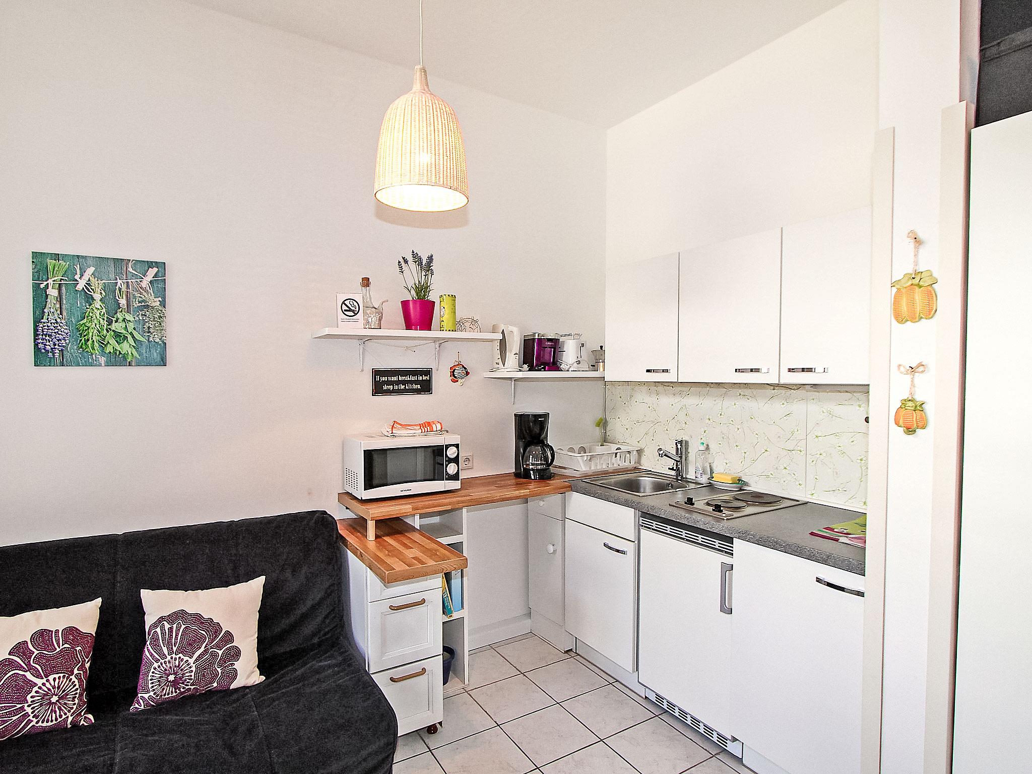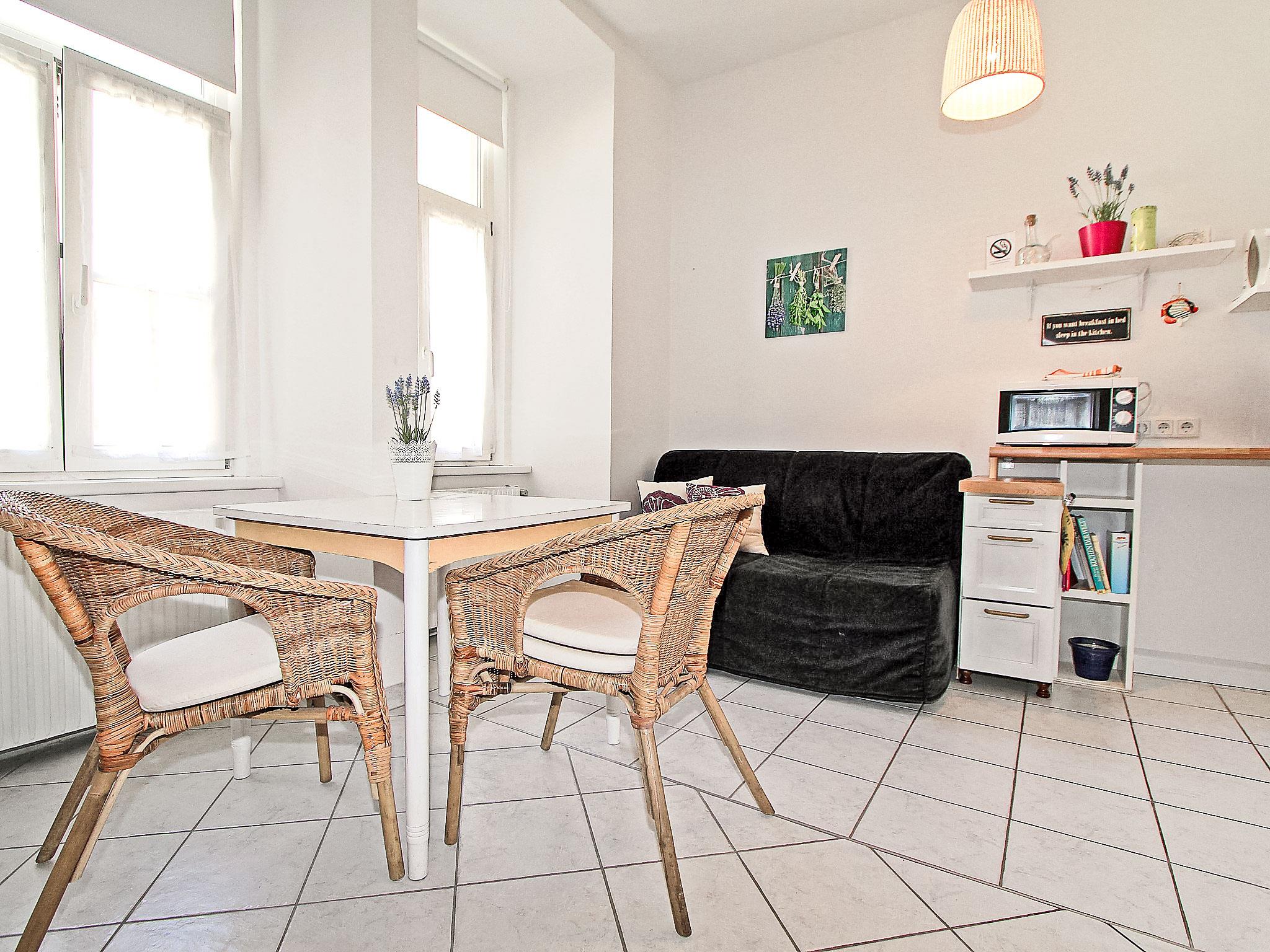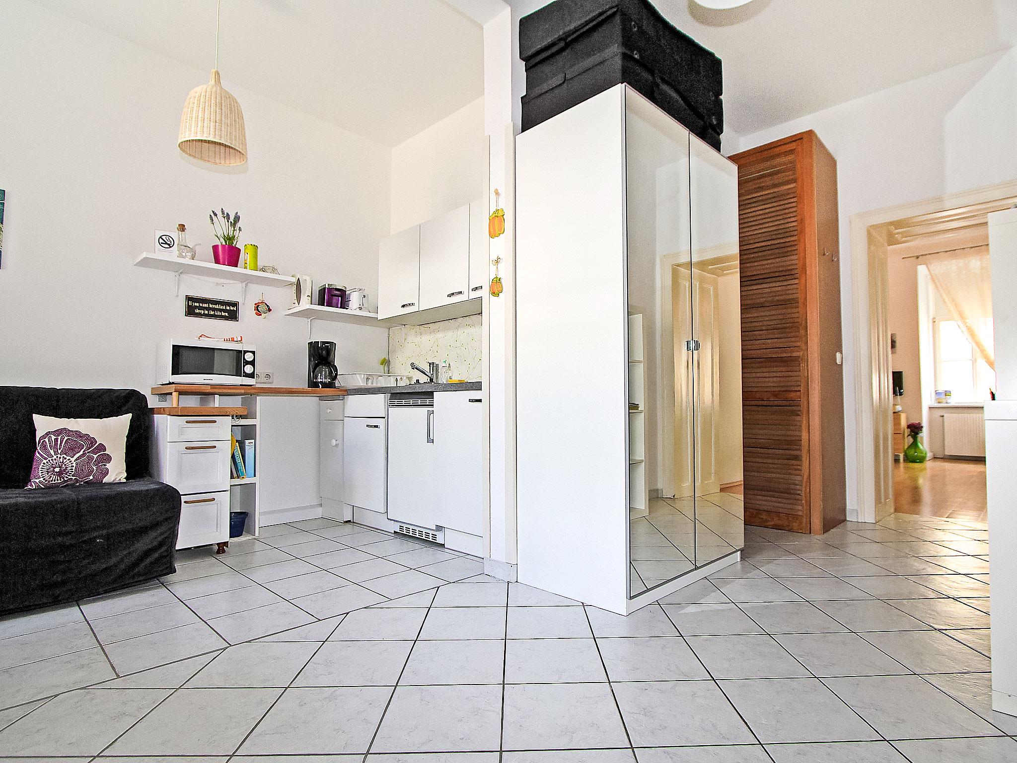 2-room apartment 40 m2 on 2nd floor. Tasteful and cosy furnishings: living/sleeping room with 1 double bed (180 cm), TV (flat screen). Open kitchen (2 hot plates, microwave, electric coffee machine) with dining table, 1 folding bed (140 cm), radio and CD-player. Shower/WC. Heating. Facilities: iron, hair dryer. Internet (WiFi, free). Please note: suitable for families. Non-smokers only.