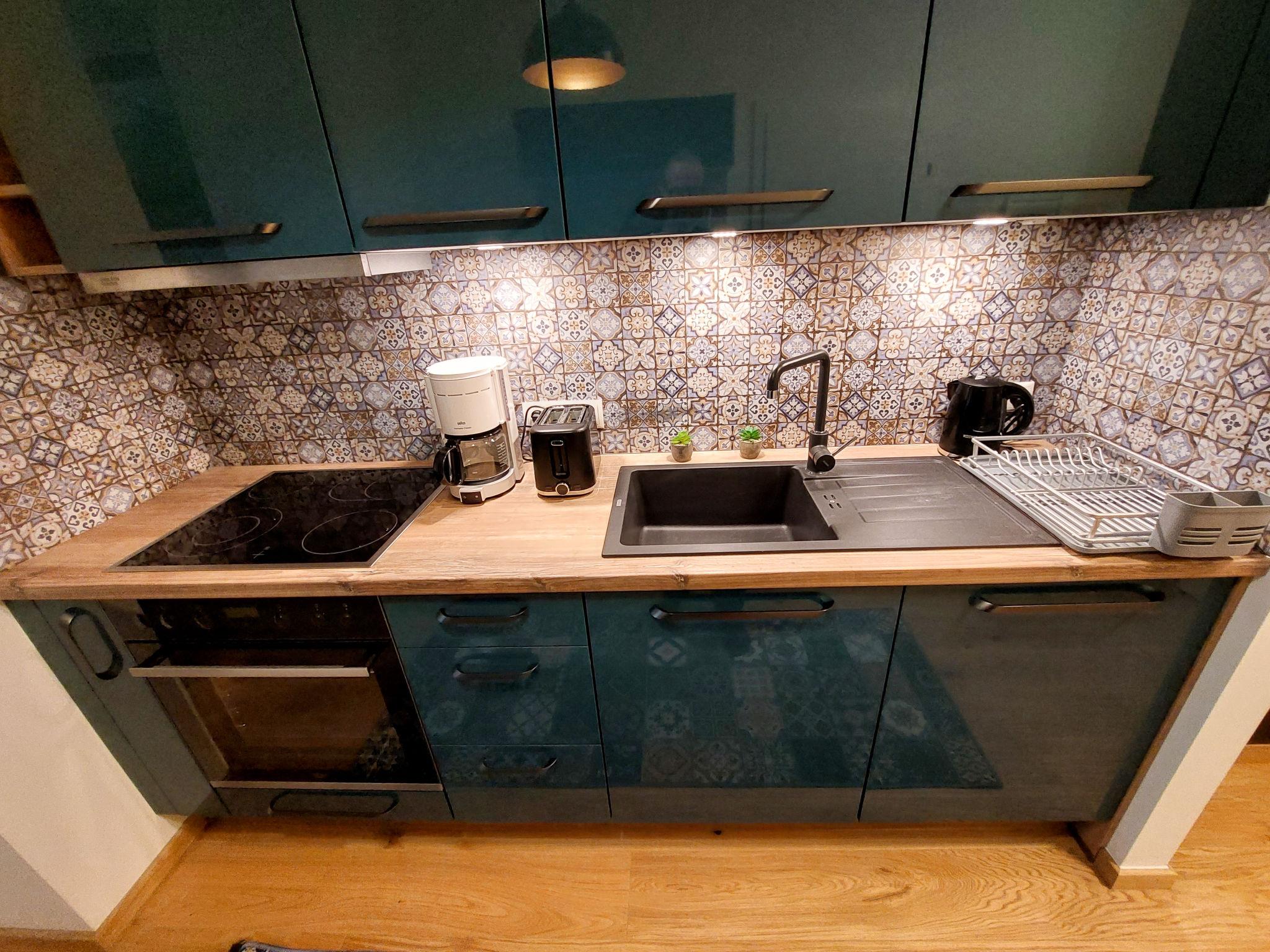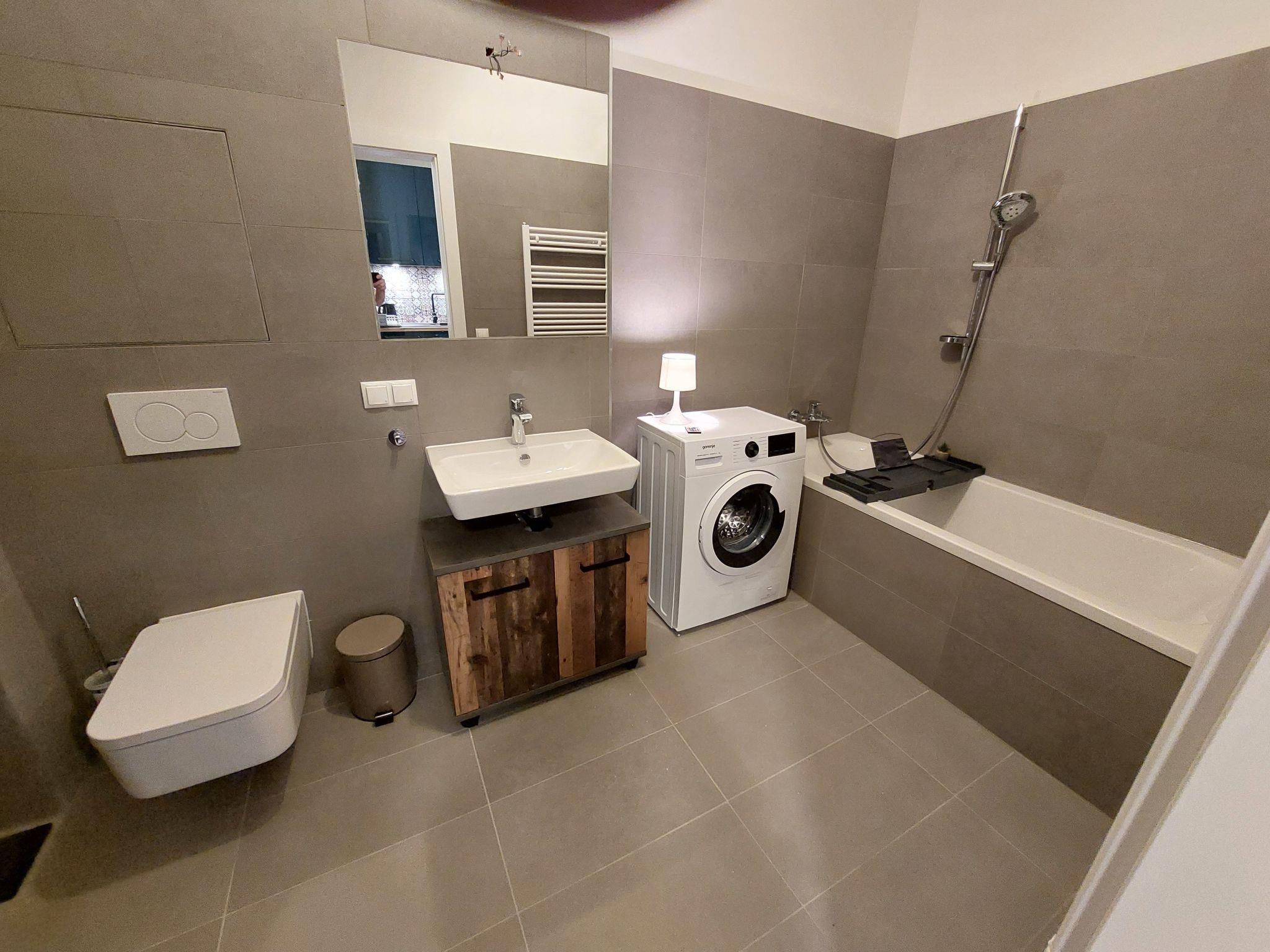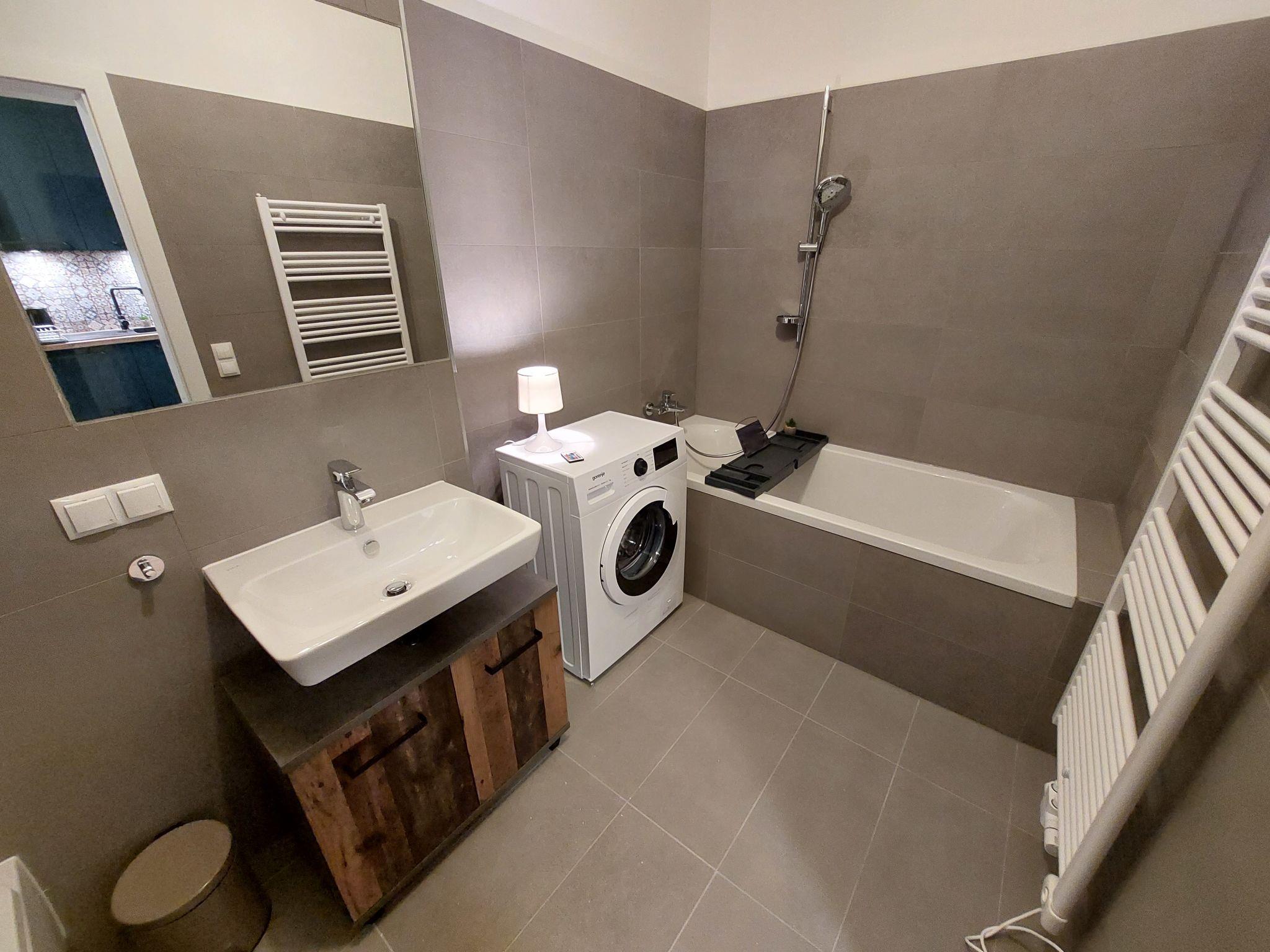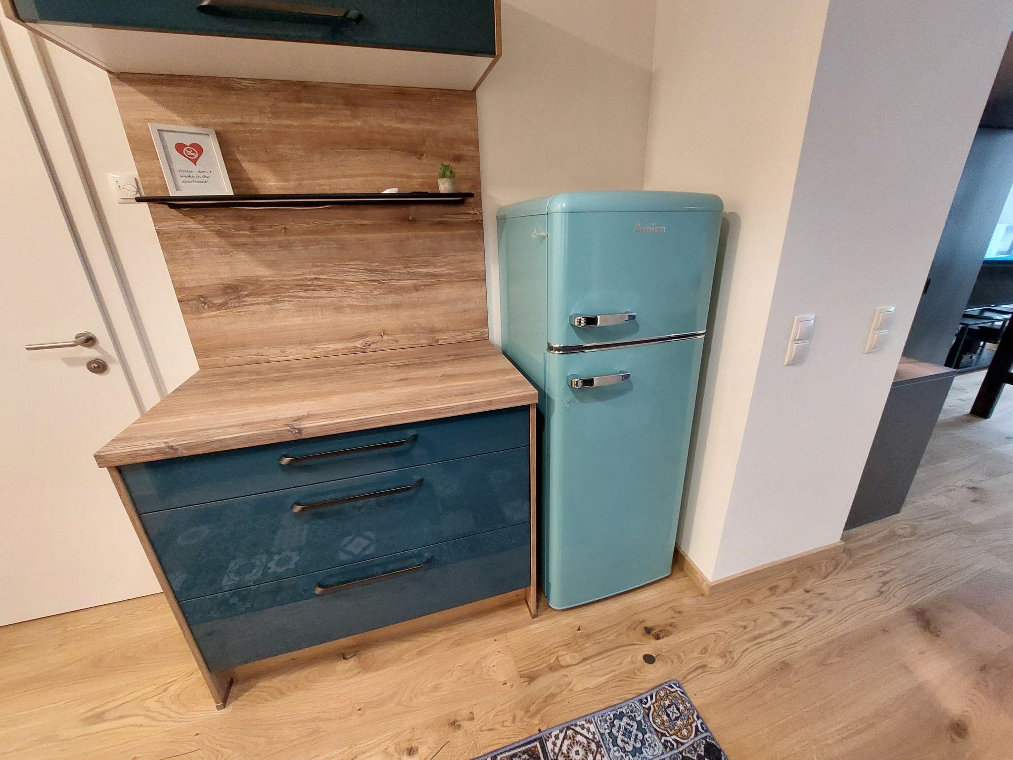 "Premium Apartment MariaHilf 2", 1-room apartment 42 m2 on 2nd floor. Object suitable for 4 adults. Bright, fully renovated in 2023, modern and tasteful furnishings: entrance hall. Open living/sleeping room with 1 x 1 bunk beds (150 cm, length 200 cm), 1 pull-out bed (2 pers.), cable TV, flat screen, radio, CD-player and fan. Kitchen in the entrance (4 hot plates, oven, dishwasher, toaster, kettle, electric coffee machine). Bath/WC. Heating. Wooden floors. Side view. Facilities: washing machine, iron, baby cot, hair dryer. Internet (WiFi, free). Please note: apartment street side. Non-smokers only. Double bed (150cm wide) is a loft bed. Highspeed-Internet.