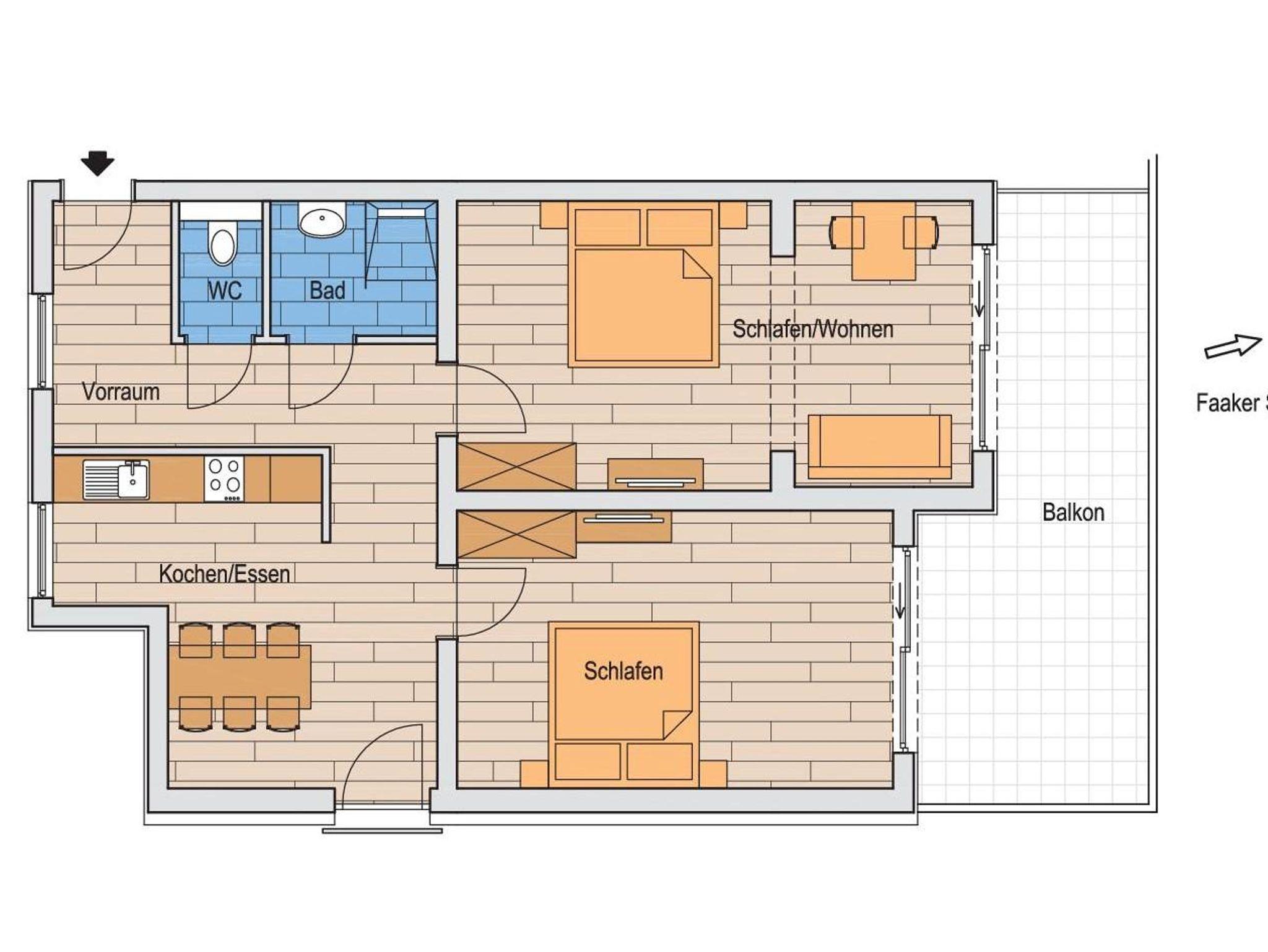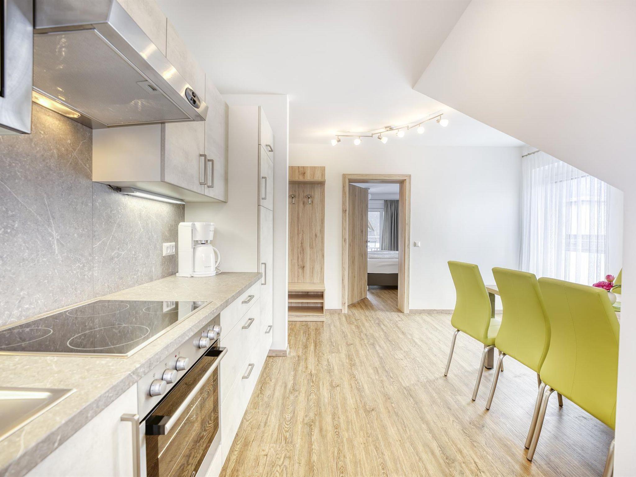 2 Schlafräume, 1 Wohnraum, Kochnische - komplett eingerichtet, Dusche WC, Sat-TV, gratis WLAN und Balkon. Bade- und Handtücher, Bett und Tischwäsche sind vorhanden. Eigener Badestrand!