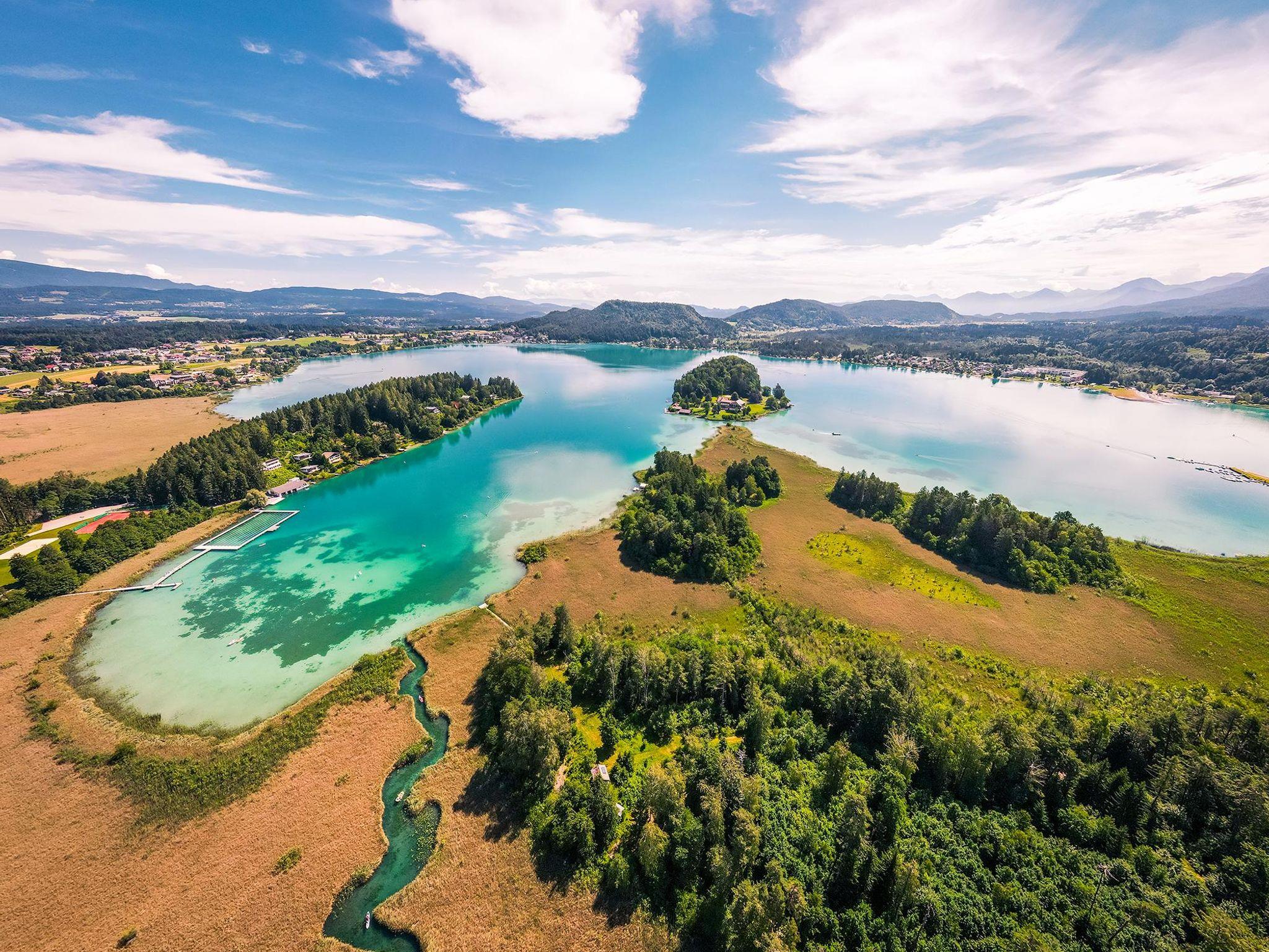 An einem der schönsten und ruhigsten Plätze des Faaker Sees liegt der Seepark Drobollach. Rundherum Wiesen und Felder, absolute Ruhe, ein herrlicher Ausblick auf Österreichs südlichsten Badesee und den Mittagskogel, sonnige Lage, das eigene Strandbad ist nur 100 Meter von den drei Häusern entfernt.