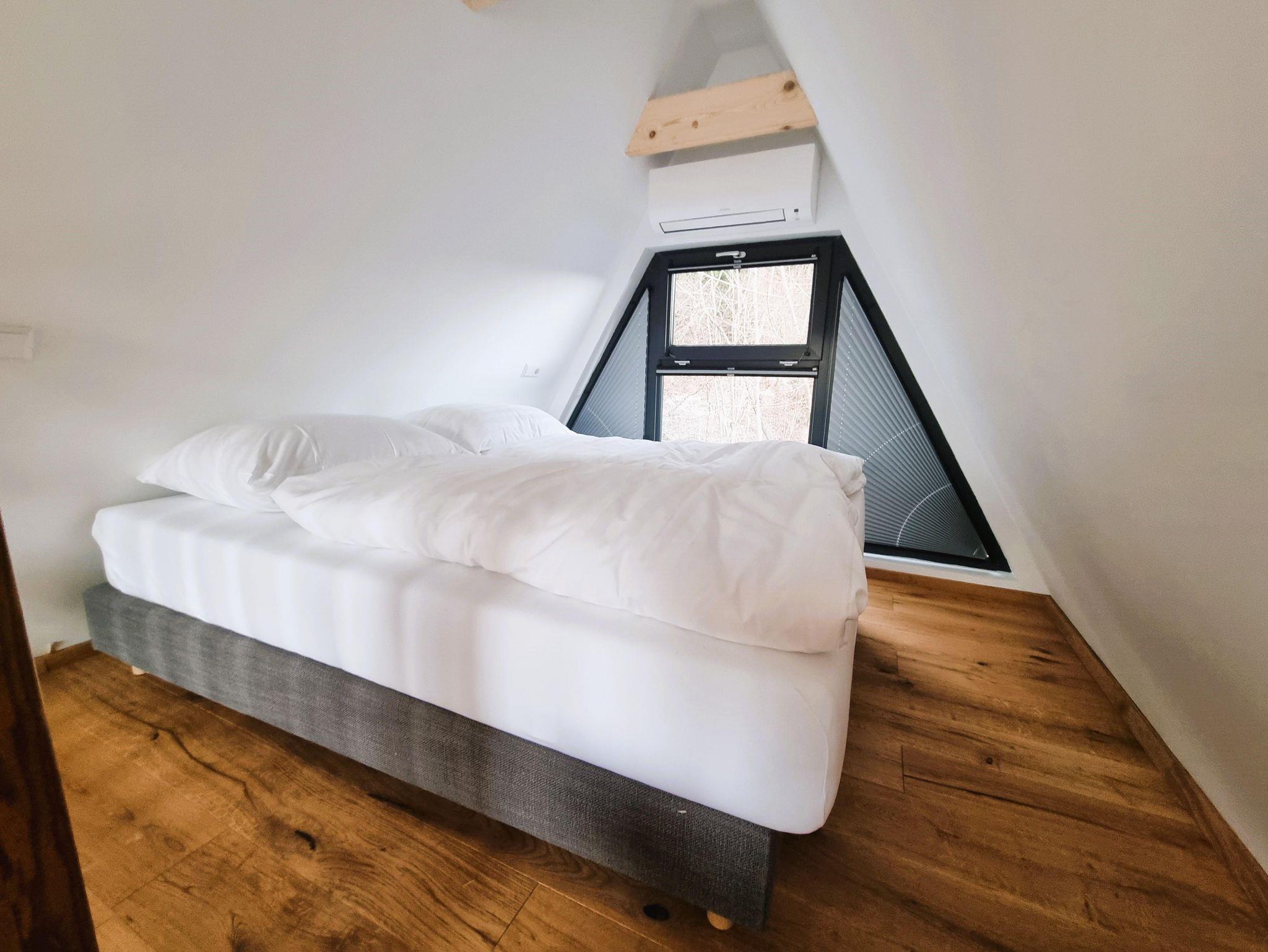 Das gemütliche Chalet im Chaletdorf Mountains & Lakes in Villach bietet Platz für 4 Erwachsene oder eine Familie mit 4 Kindern. Ein separater Eingang gewährleistet Privatsphäre. Große Fenster durchfluten die Räume mit Licht, während Parkettboden ein warmes Ambiente schafft. Die vollausgestattete Küchenzeile ermöglicht Selbstversorgung, und das Bad beeindruckt mit Steinfliesen. Schlafkomfort wird durch Boxspringbetten mit Premiummatratzen garantiert. Moderne Annehmlichkeiten wie schnelles Wifi (280 Mbit) und ein Smart TV stehen zur Verfügung. Ein sicherer Parkplatz ist inkludiert. Das Chalet liegt am Waldrand in Hanglage, mit einem malerischen Blick über Villach ins Drautal und die umliegenden Berge. Der Faaker See ist in unmittelbarer Nähe.