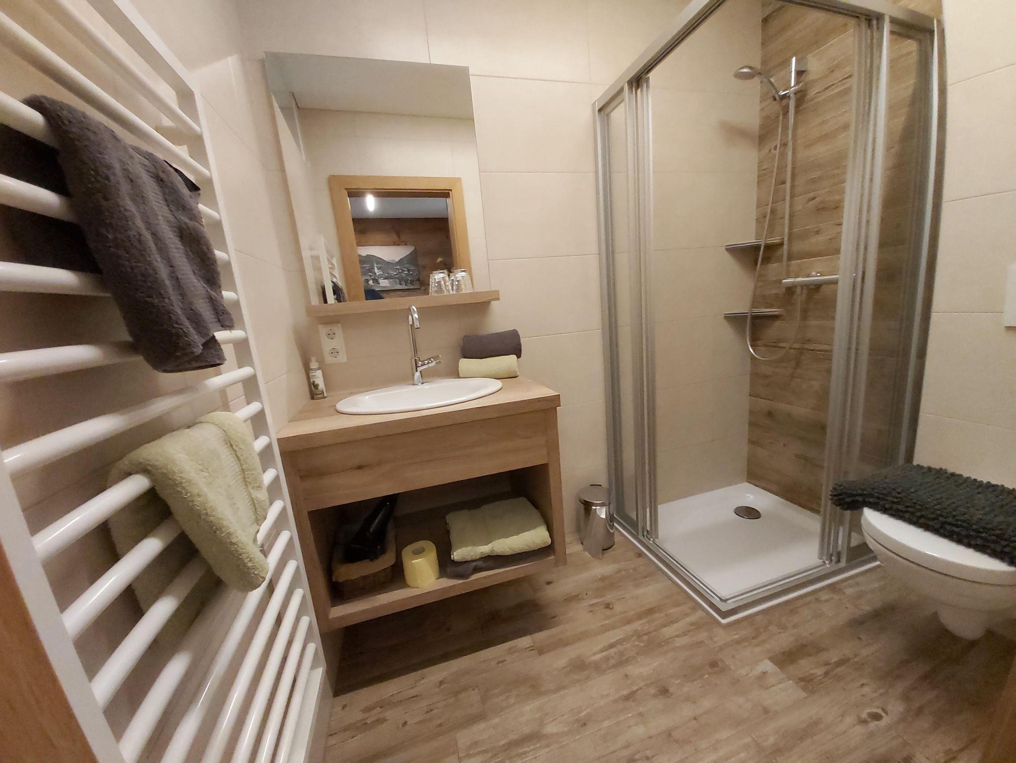 Gratis-Skibus- und Bushaltestelle, Geschäfte, Bäckerei, Cafe´s, Gasthäuser usw. sind wenige Gehminuten entfernt. Eine öffentliche Elektro-Tankstelle für E-Autos ist direkt vor unserem Haus.