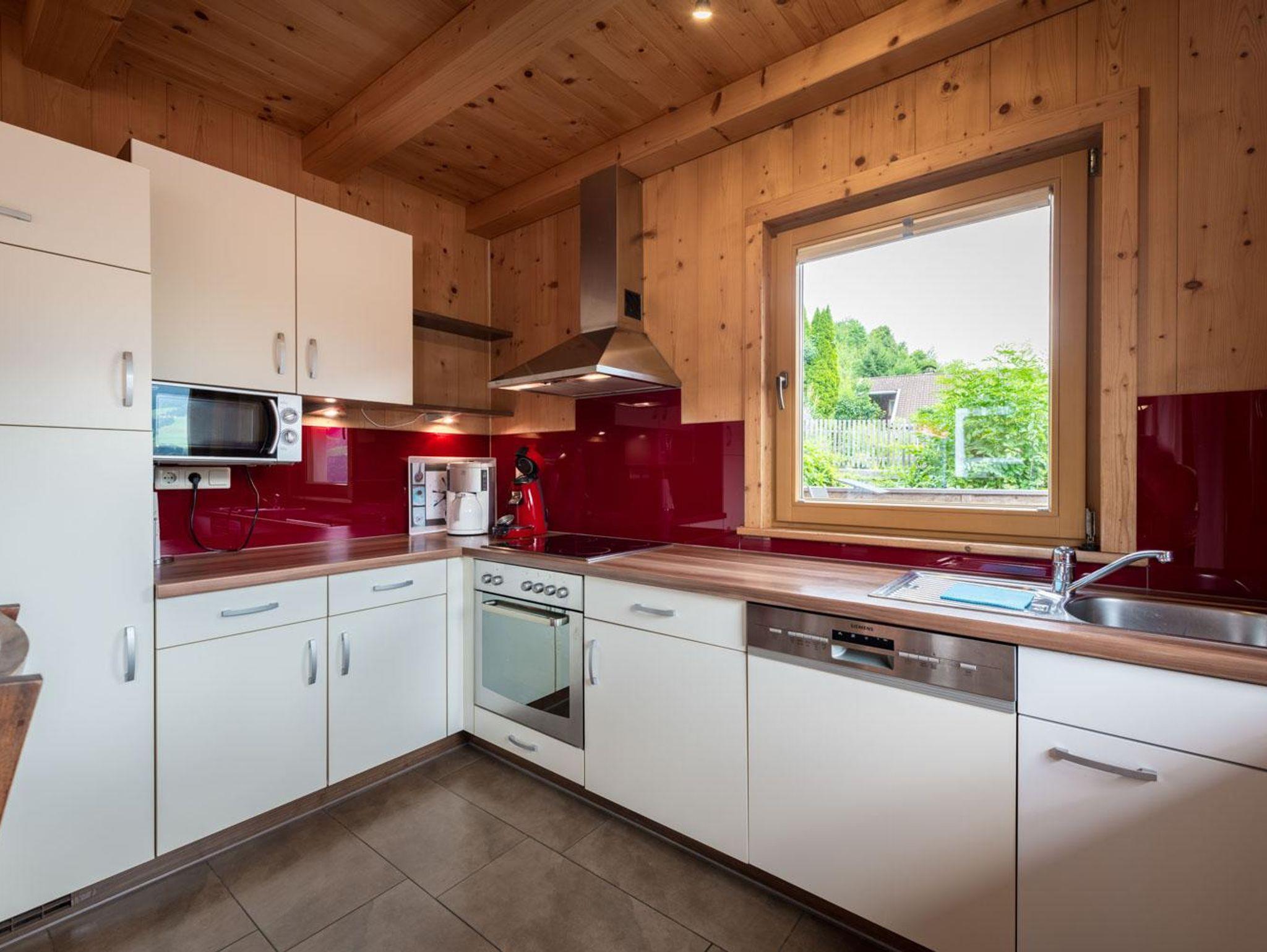 Das Chalet verfügt über eine voll ausgestattete Wohnküche mit Designer-Kachelofen mit Computersteuerung, 4 Schlafzimmer, 2 Bäder, separates Gäste-WC sowie eine 40m² große Terrasse.