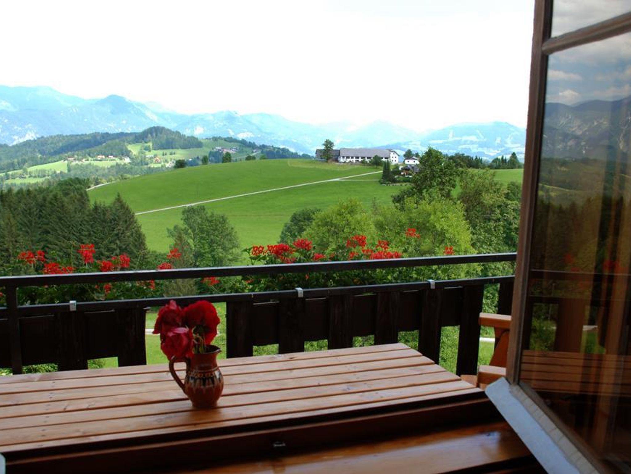 In der Ferienwohnung mit 80 m² erwartet Sie ein Balkon mit einem traumhaften Panoramablick - vom Sensengebirge über die Pyhrgase, Seespitz bis zum Warscheneck -, zwei Schlafzimmer mit je einem Doppelbett - Lärchenholzböden und rustikale, gebürstete, geölte Massivholzmöbeln; Du Wc (mit Föhn und Duschhocker) und ein kleiner Vorraum. Eine gemütliche Zirbenholzstube mit ausziehbarer Bettbank und einer Kochnische - ausgestattet mit 2 Elektrokochplatten, Back- und Grillofen, Filterkaffeemaschine, Wasserkocher, Kühlschrank mit Gefrierfach, Toaster, Mixer, ausreichend Geschirr. Die Wohnung ist allergikerfreundlich, mit natürlichen, waschbaren Materialien ausgestattet - von der Matratze bis zum Baumwollfleckerlteppich. Genießen sie den Sonnenaufgang in den Bergen direkt vom Bett aus.