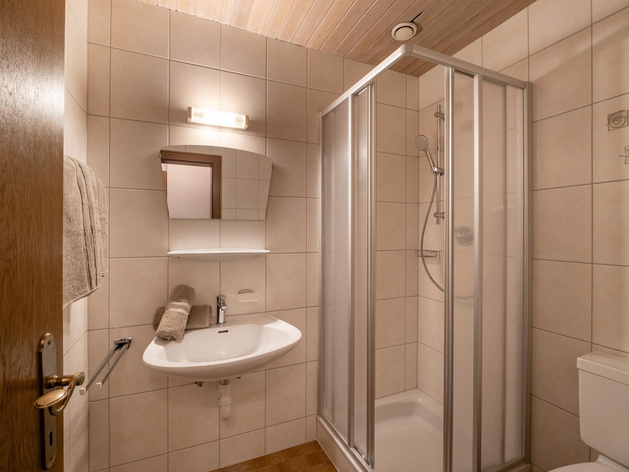 Ebenfalls ist die Ferienwohnung mit Dusche/WC und einem Balkon ausgestattet.