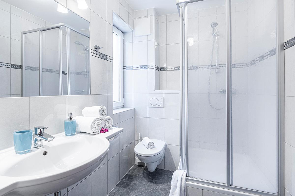 Das Haus verfügt über eine eigene Parkgarage im Erdgeschoss unter den Apartments. Hier können Sie Ihr Auto sicher auf dem Parkplatz des Apartments abstellen.