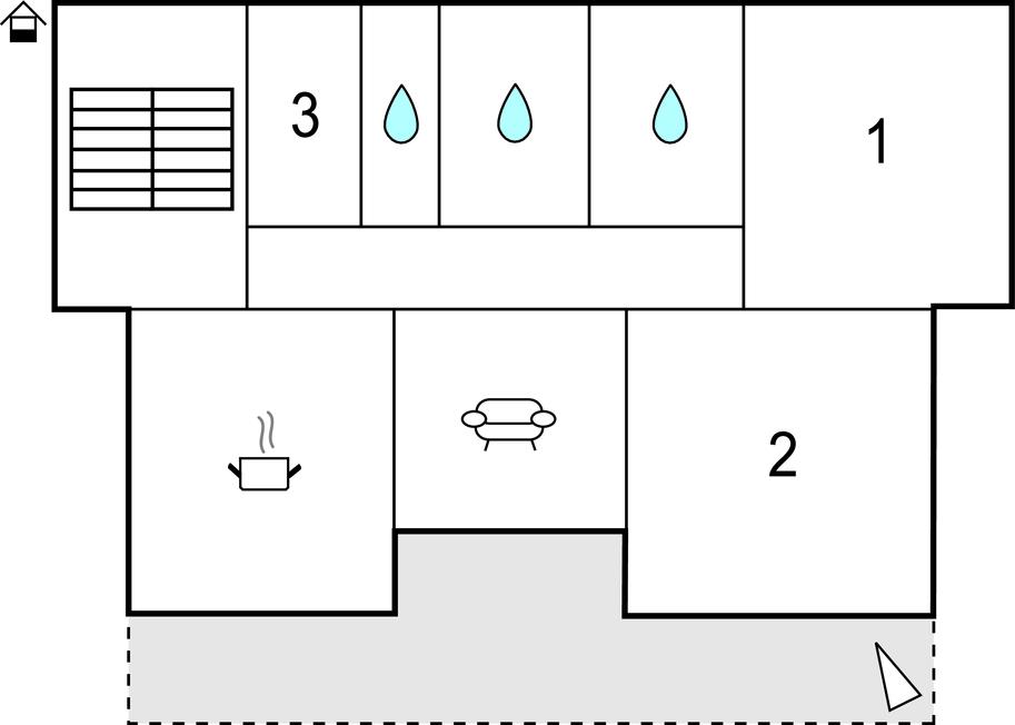 Soveværelse (nr. 1) - 1 Soveplads. (Enkeltseng(e)). 2 Sovepladser. (Dobbeltseng(e)).