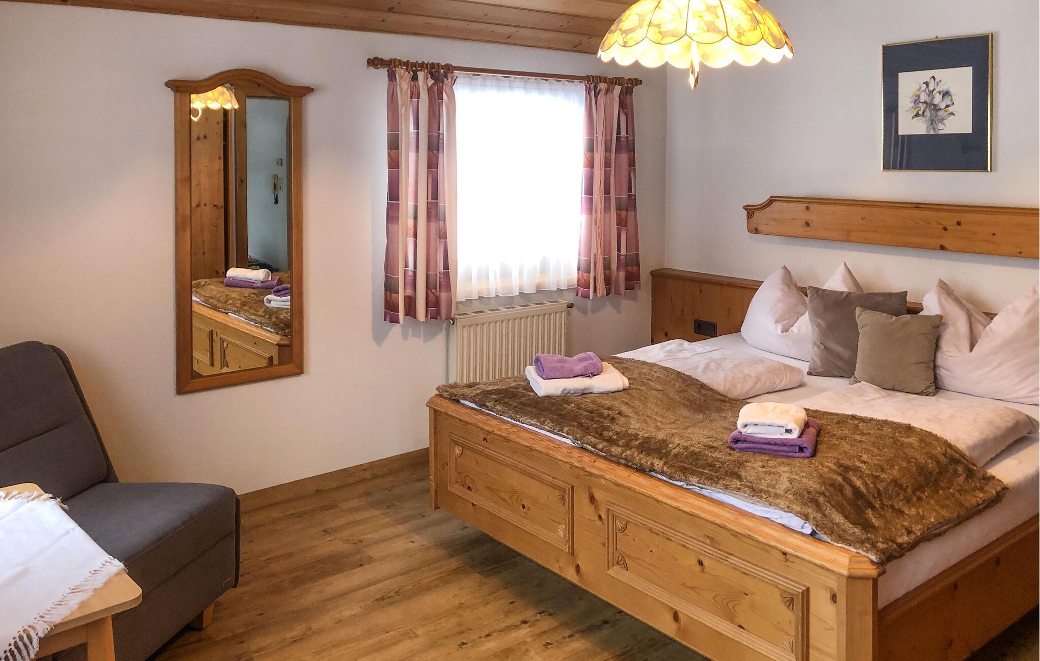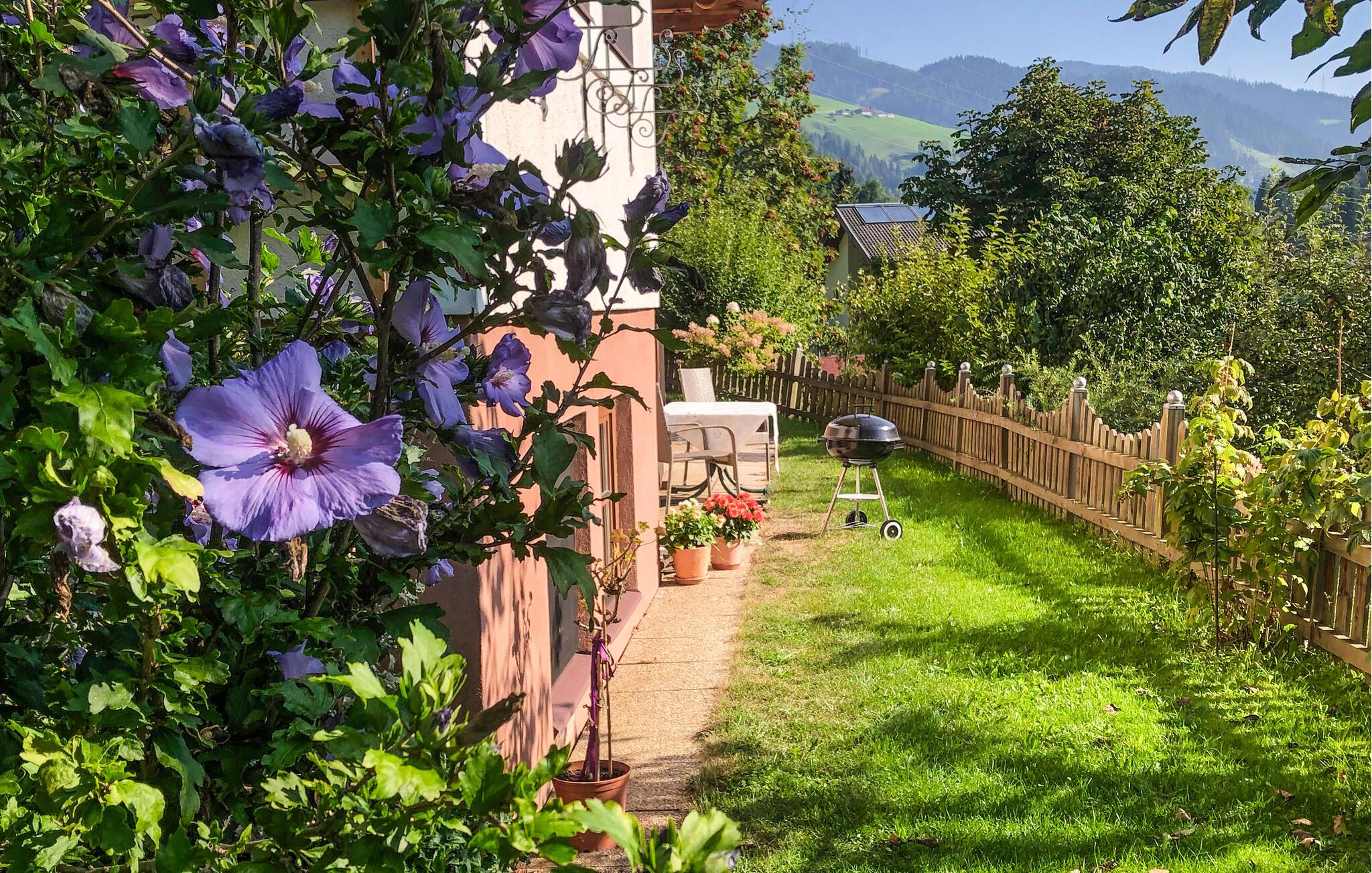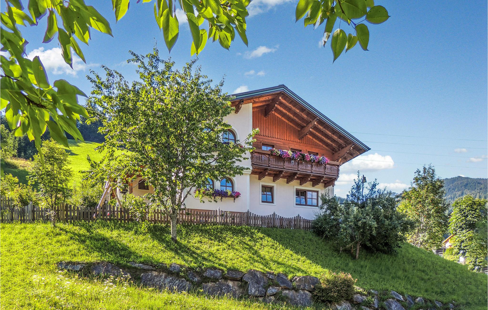 På første sal i et elegant hus ligger denne dejlige og rummelige ferielejlighed. Huset er roligt og landligt beliggende i udkanten af byen Wagrain. Ved huset er en lille legeplads. En trampolin er der også i haven. Til gæsternes fælles brug er der aktivitetsrum med bordtennis, bordfodbold og dartskive. 15 minutters gang til badelandet Wagrain, et dejligt stort badeland i fri luft med hele 1000 m² pool. Gratis daglig entré er inklusive i skatten på stedet (vær opmærksomme på evt. lukketider). Husejeren informerer jer gerne.