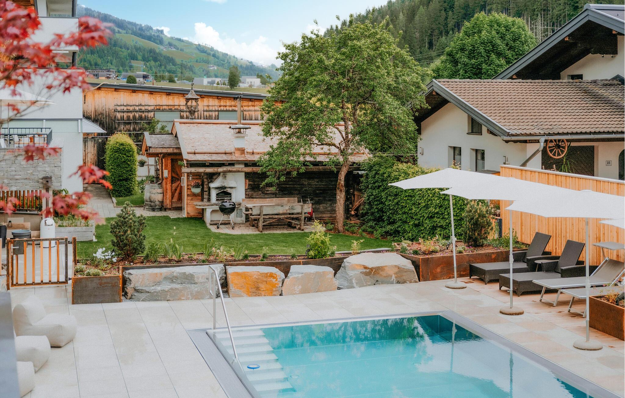 I Wagrain finder I dette wellnesshus med alle bekvemmeligheder, som vil gøre jeres ferie uforglemmelig. I huset findes fire lejligheder (ASA039, ASA041, ASA043, ASA044), som alle er meget komfortable og smagfulde indrettede. Den til huset hørende, opvarmede swimmingpool er til rådighed for alle gæster. Hertil kommer en legeplads, et område til solbadning samt en fodboldbane. Huset indeholder et stort wellnessområde med sauna (inkl. i lejen), dampbad, solarium, infrarød kabine, springvand, massagestol, fodbad, opvarmede bænke, afslapningsrum (nogle af faciliteterne mod betaling). Legeværelse, trampolin, bordtennis, m.v. til rådighed. Wagrain er ikke kun kendt for sine mange muligheder for vintersportsgrene. Om sommeren er der mange forskellige vandrestier, yderligere muligheder for fritidsaktiviteter omfatter cykling, mountainbiking eller klatring, men I kan naturligvis også bare slappe af og nyde ferien fuldt ud uden stress. På Grafenberg venter der børnene en natur- og oplevelsesverden med en eventyrlegeplads. I Radstadt ligger en 18-hullers golfbane. Der er mulighed for at tilkøbe morgenmad på stedet.