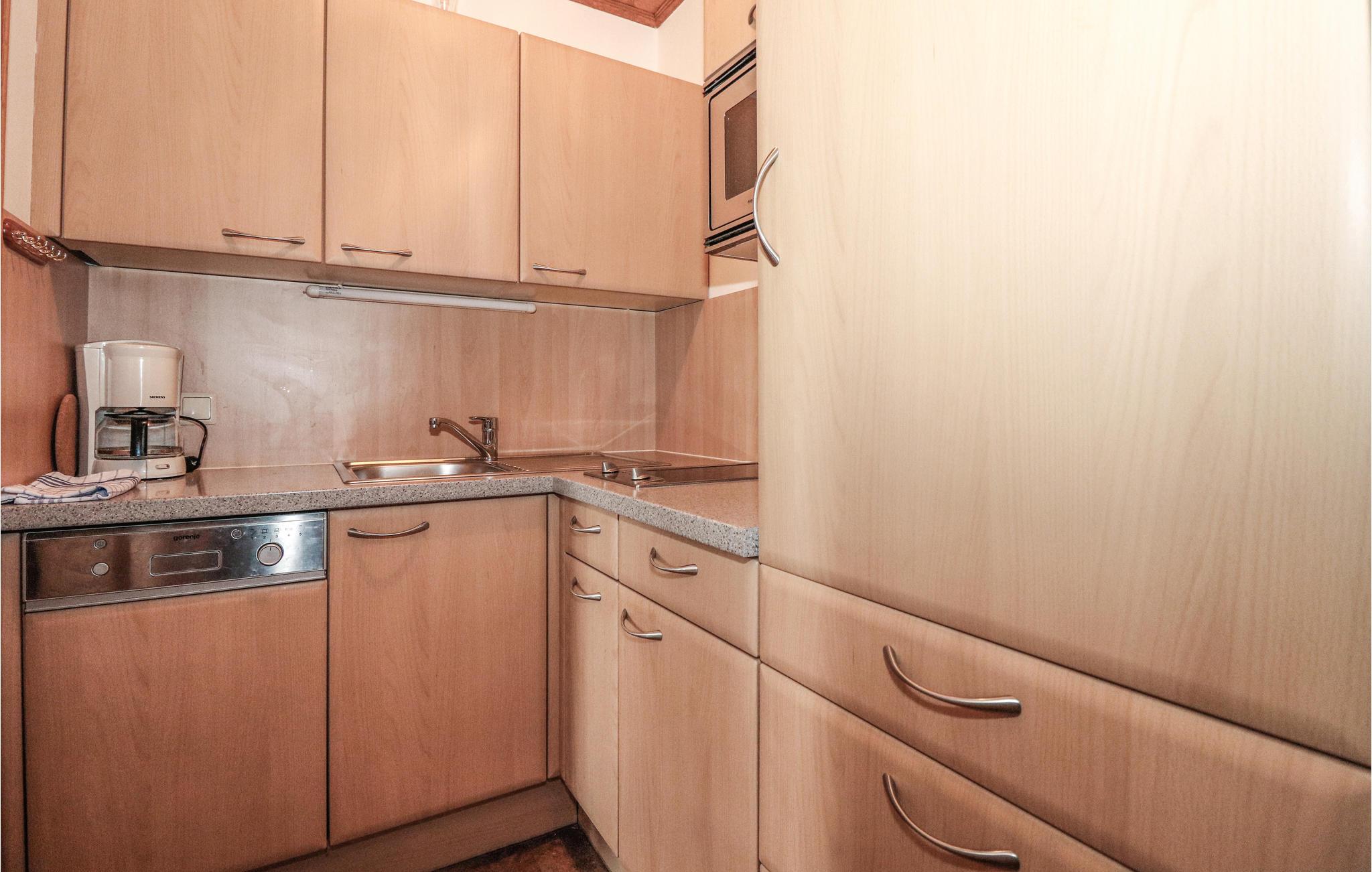 Denne praktisk indrettede lejlighed er udstyret med blandt andet et godt te-køkken, hvor I kan tilberede nogle lækre retter efter en aktiv feriedag. På varme sommerdage kan I nyde jeres friskbryggede morgenkaffe på altanen, mens I beundrer udsigten og planlægger jeres aktiviteter og udflugter for den kommende dag.