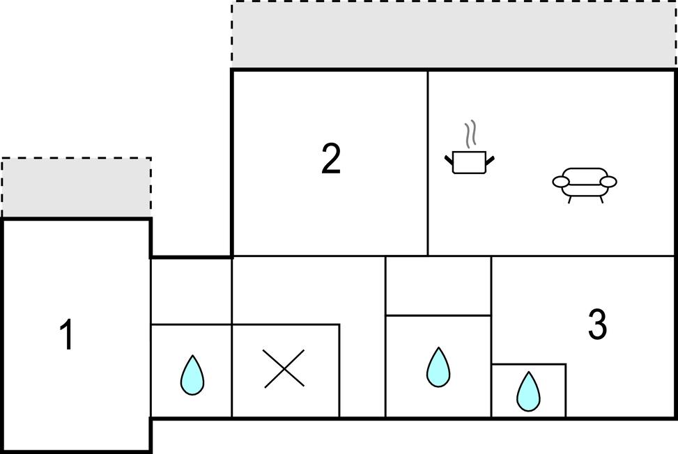 Badeværelse 3m2 (nr. 1) - WC. Varmt og koldt vand. Bruser