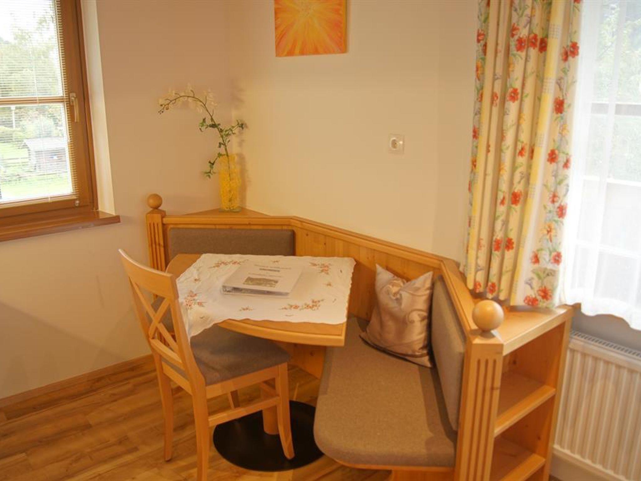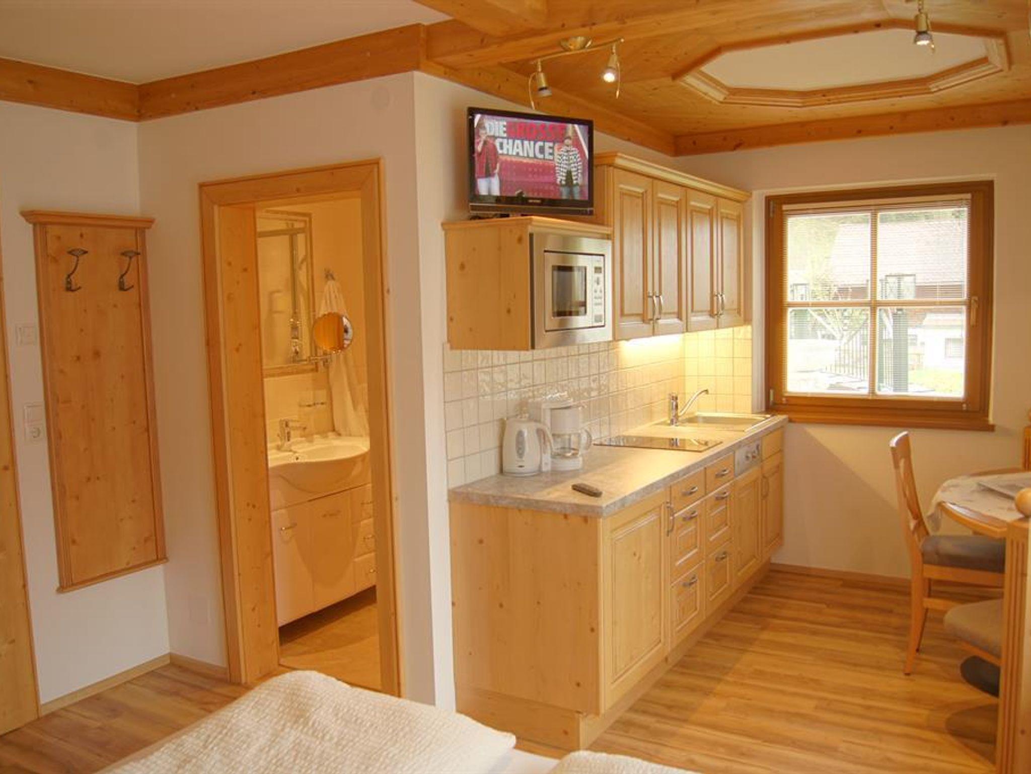 Im 1. Obergeschoß - Wohnfläche ca. 22 m² - süd-ostseitig Ländlicher Stil und rustikale Vollholzmöbel lassen Ihr Herz hier höher schlagen. Mit Liebe eingerichtet können Sie hier Ihren wohlverdienten Urlaub genießen. Die sonnige Ferienwohnung verfügt über eine vollwertig eingerichtete Küche mit gemütlicher Sitzecke, Doppelbett, Bad mit DU/WC und Süd-Balkon. Zur Ausstattung zählen Fön, Flat-Kabel-TV, Radio, und Safe. Küchenzeile mit Spülbecken, Kochplatten, Kühlschrank mit Gefrierfach, Mikrowelle, Kaffeemaschine, Wasserkocher, Toaster, Inventar, Bettwäsche, Bade- und Handtücher, Geschirrtücher und Spülmittel, ..