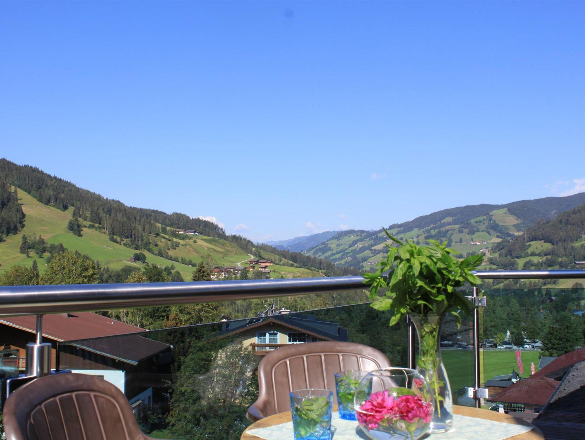 Die Penthouse Panorama Suite liegt im im dritten Stock mit großartiger Aussicht in die Wagrainer Berger, 2 x DU/WC und 1 x Toilette extra.