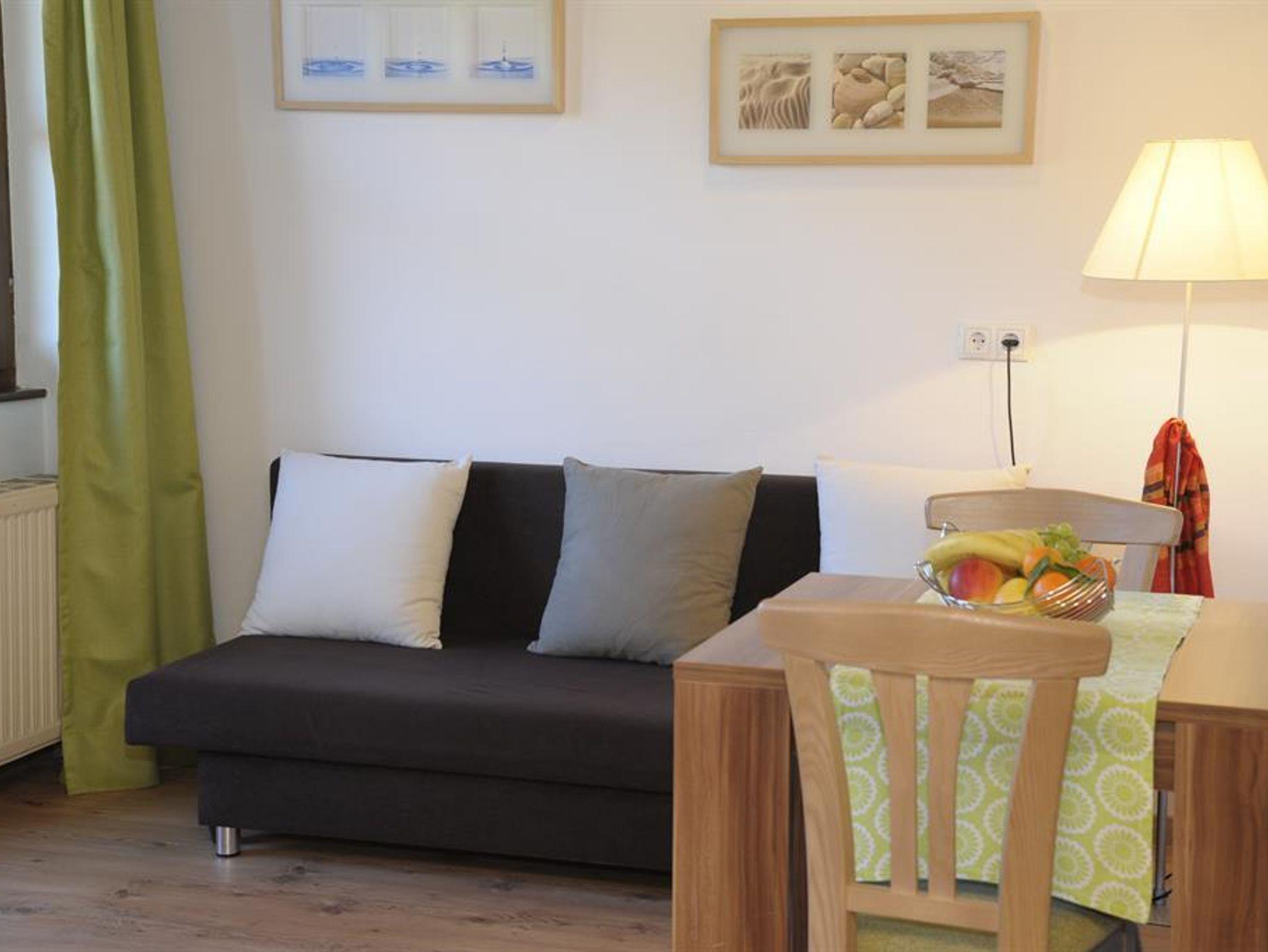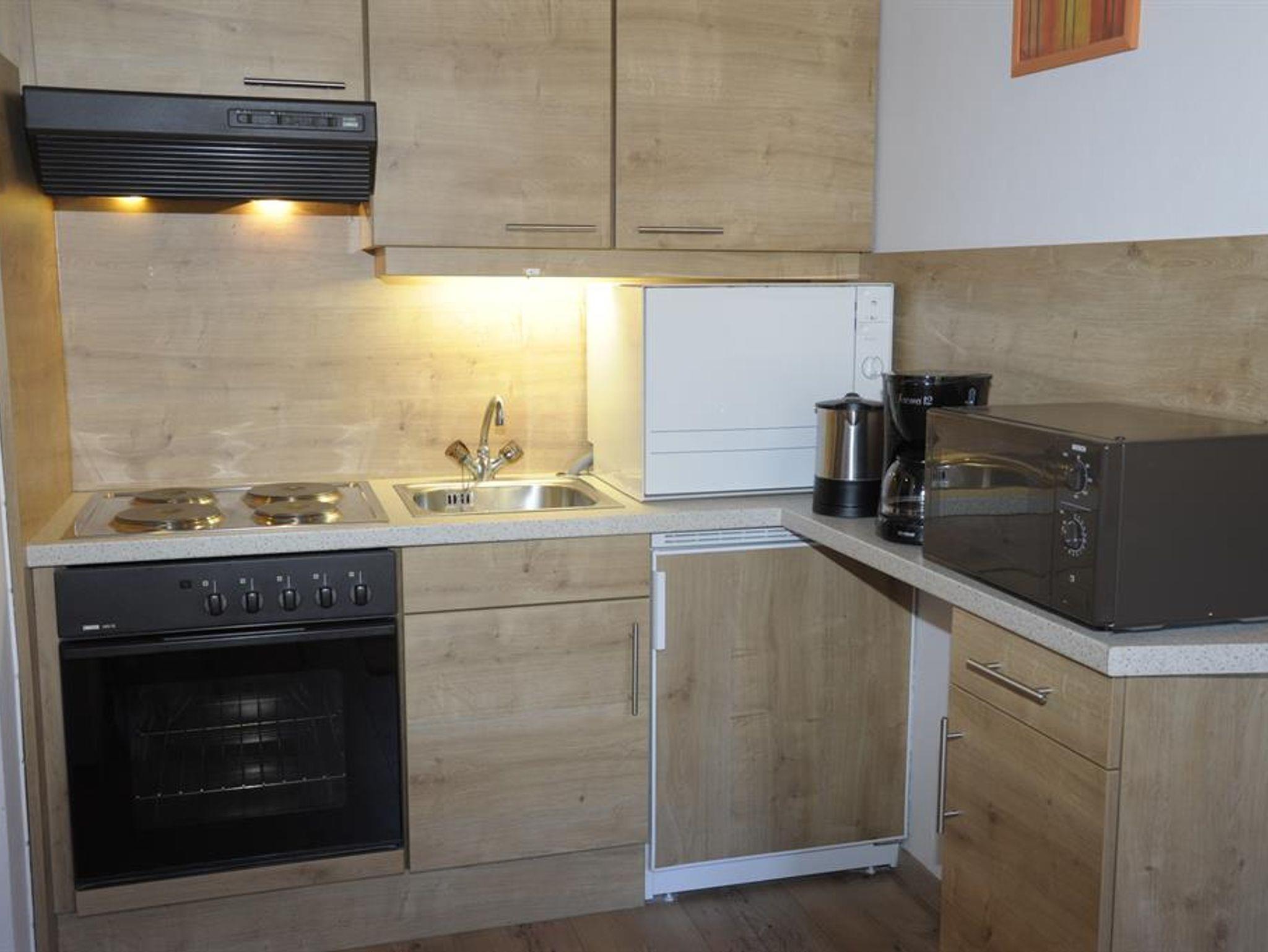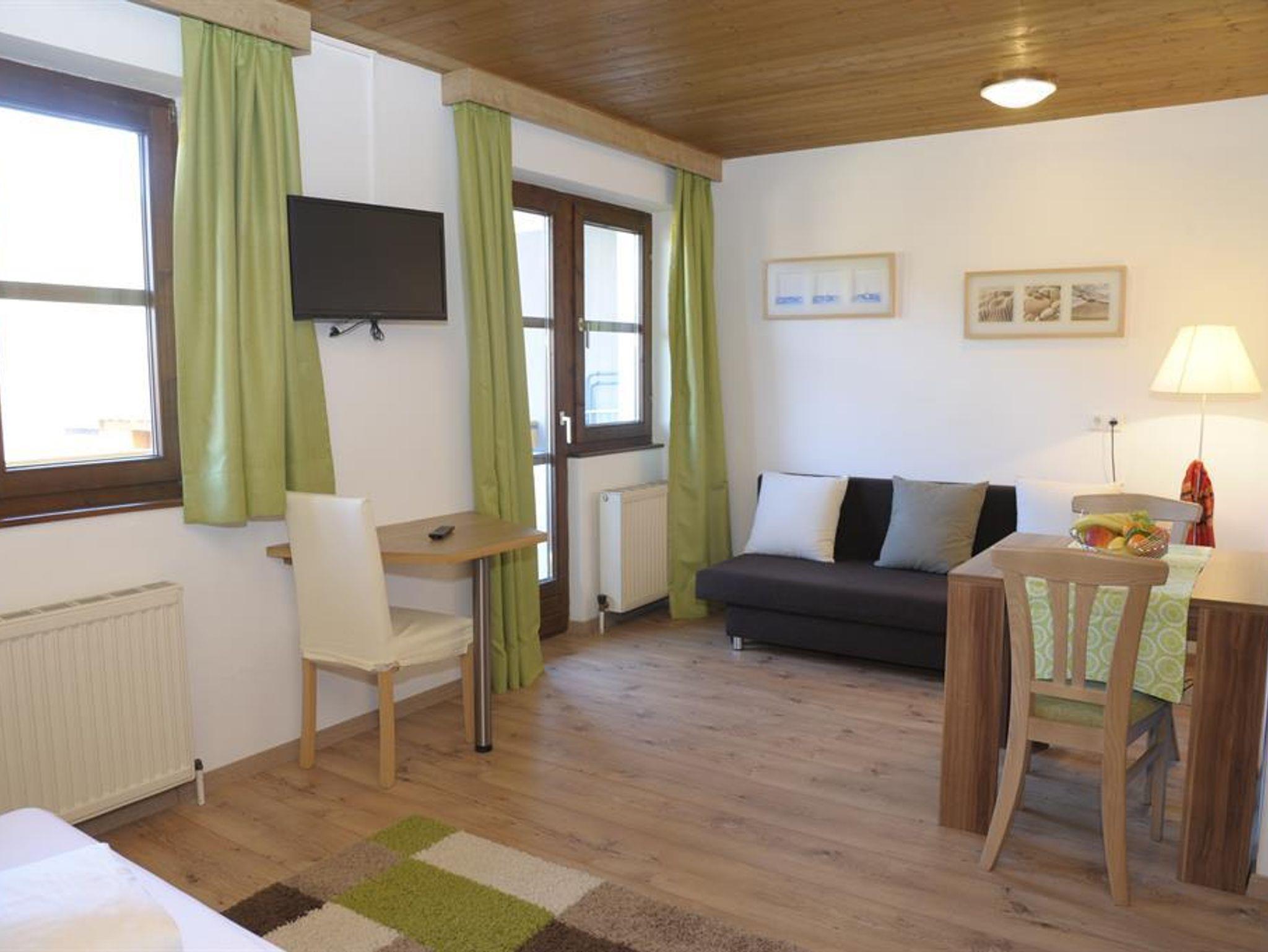 Wohnküche komplett mit Essecke, Du/WC, Kabel-TV, Radio, Telefon, Vorraum mit Garderobe, Balkon.