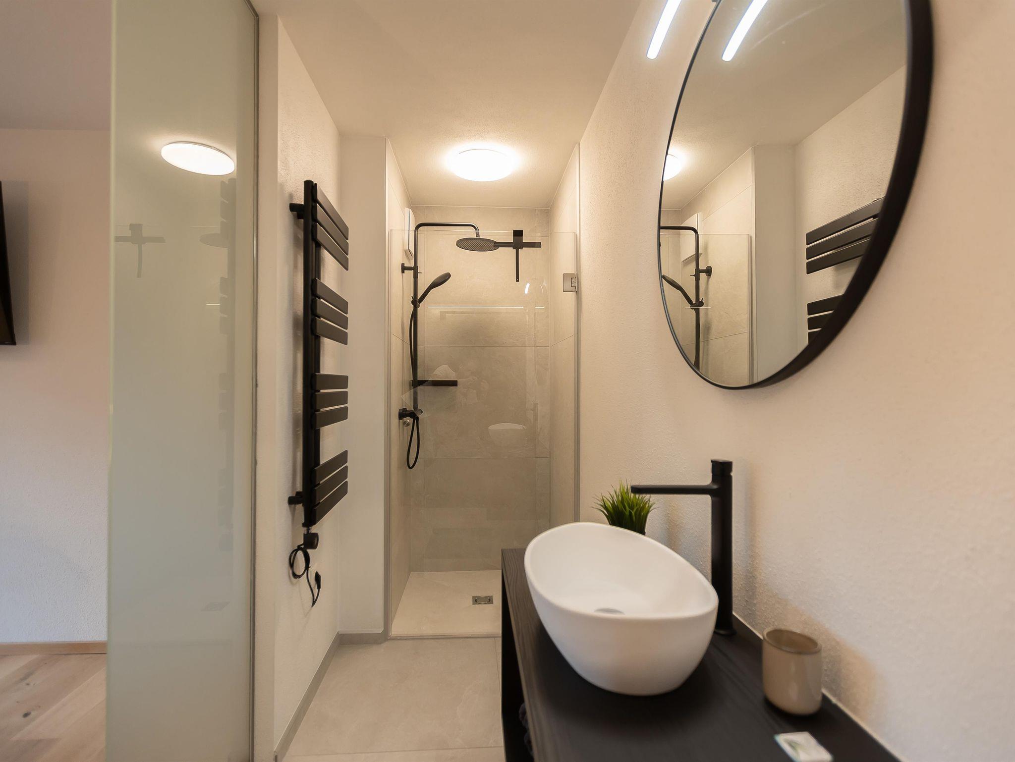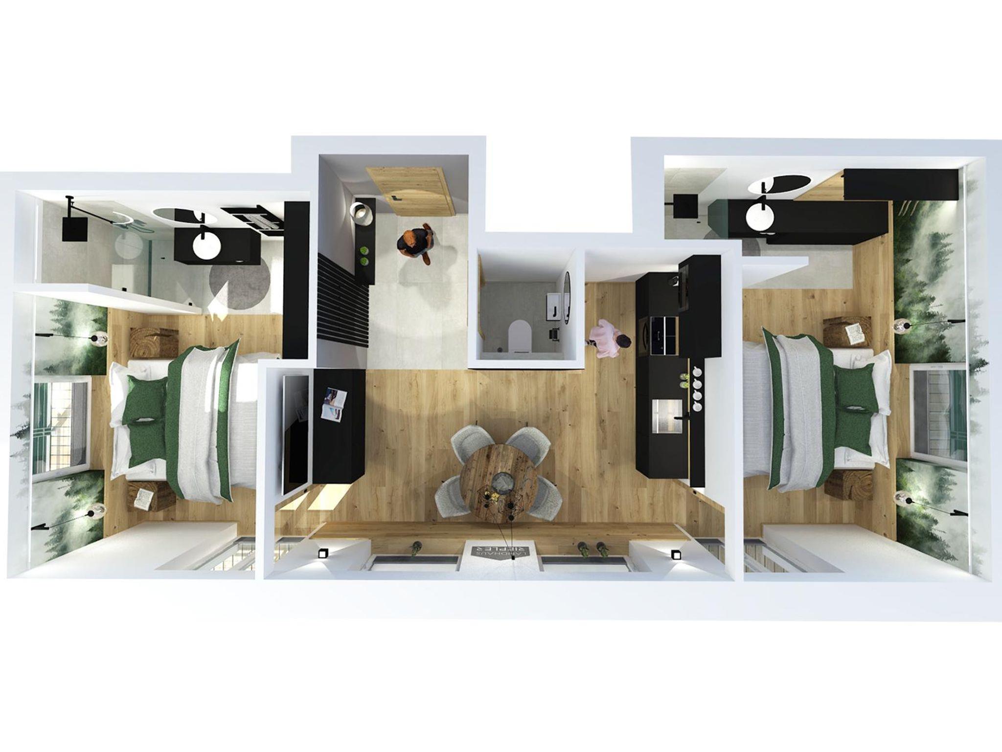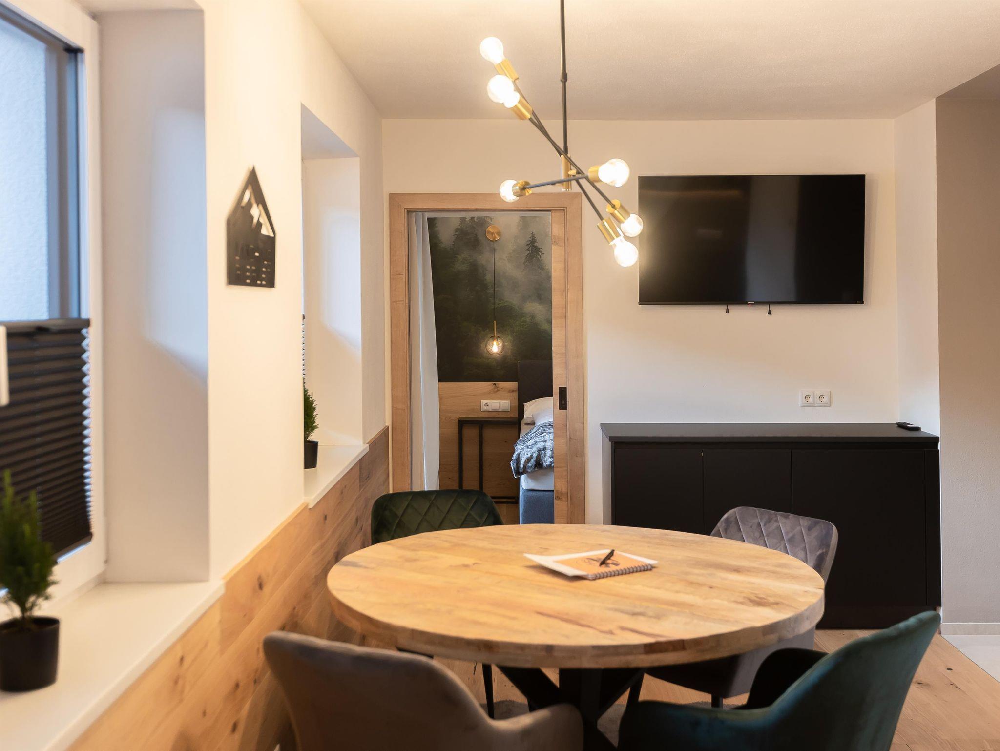 Unser Mountainy & Watery - Apartment mit Bergblick ist ideal für Familien und Freunde, verfügt über 2 getrennte Schlafzimmer mit komfortablen Boxspringbetten, 2 Bäder mit Regendusche, moderne Küchenzeile, Teeküche, großer Essbereich, 2 Balkon, WIFI.