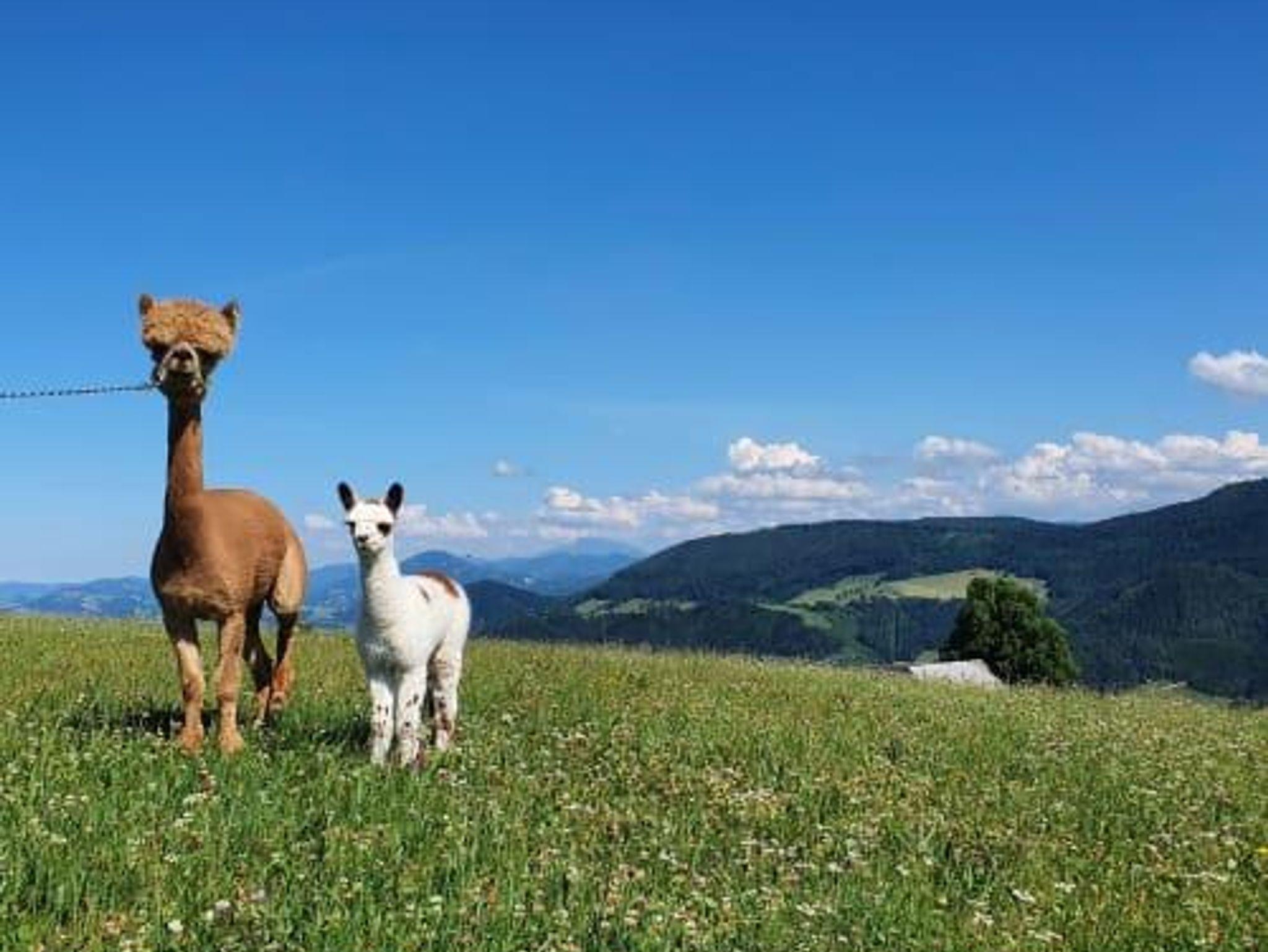 Sanftmütige Alpakas leben auf dem Hof und können bei geführten Wanderungen begleitet werden. Zudem sind hochwertige Alpakaprodukte wie Decken, Schuheinlagen und Wolle erhältlich.