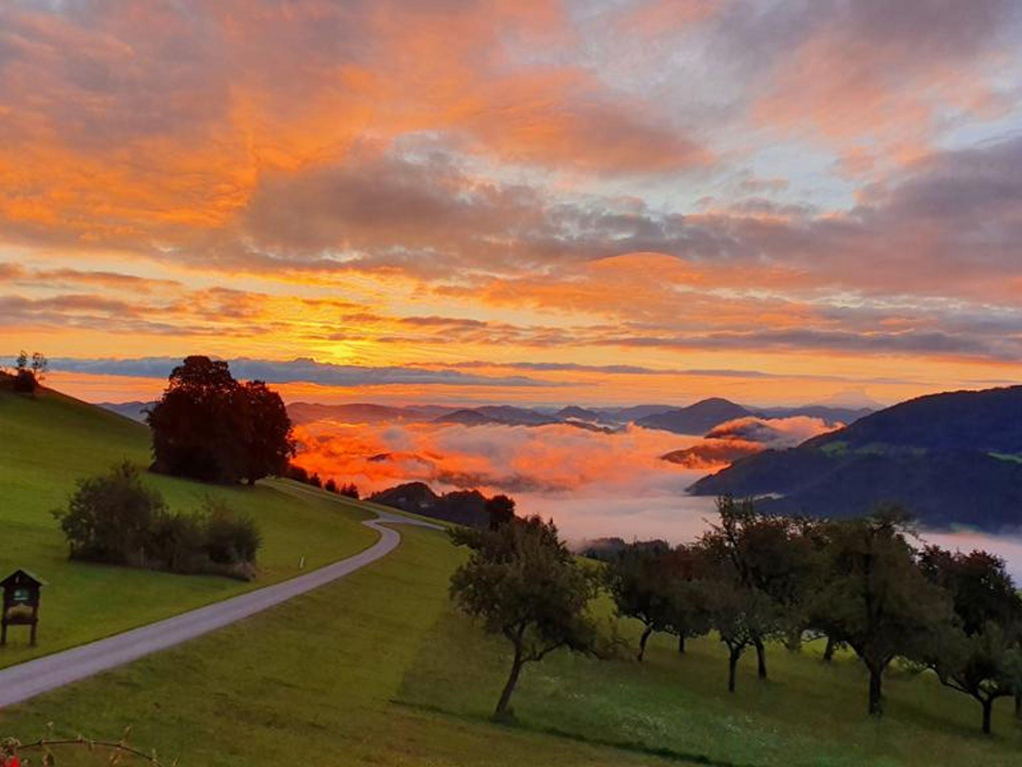 Im Mostviertel auf 820 Metern Seehöhe bietet der Hirschberg einen unvergleichlichen Weitblick in die Ybbstaler Alpen. Die rundum freie Sicht erstreckt sich über den Großen Ötscher, den Prochenberg, das Gesäuse und den Sonntagberg. An klaren Tagen reicht der Blick sogar bis nach Maria Taferl.