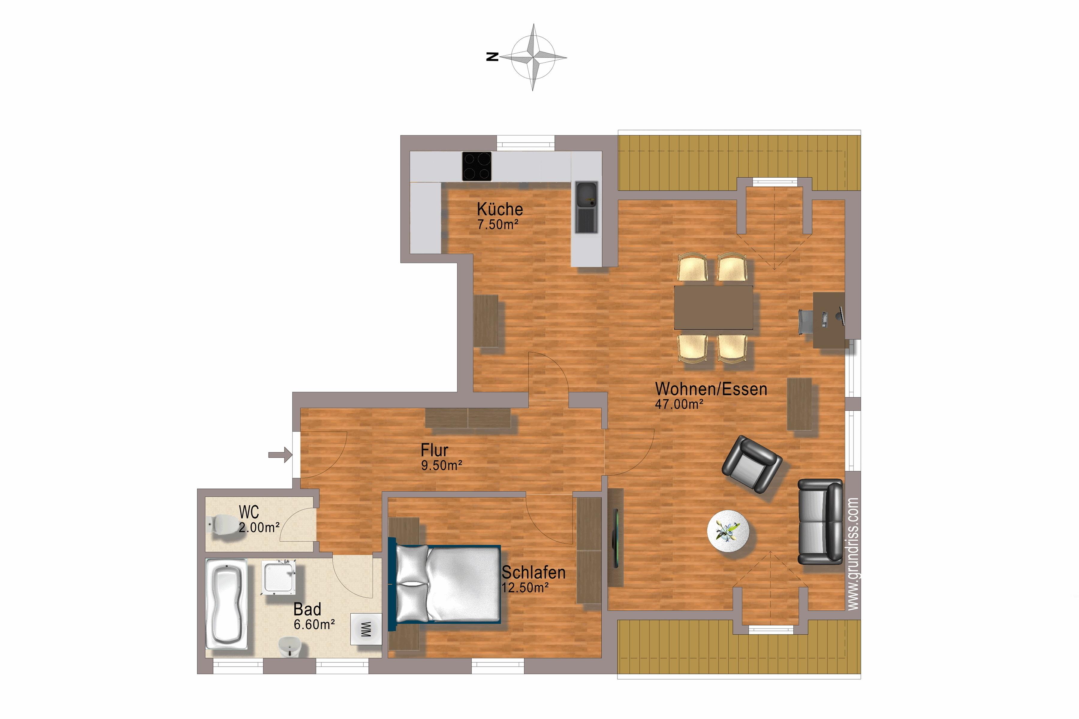 Die 80 m² große Wohnung verfügt neben dem zentralen Vorzimmer mit Garderobe, Bauernkasten, Kommode und großem Spiegel über ein gemütlich eingerichtetes Wohnzimmer mit einem großzügigen Essbereich sowie Sideboard mit Flachbildschirm (Sat-TV) und CD/DVD-Player.