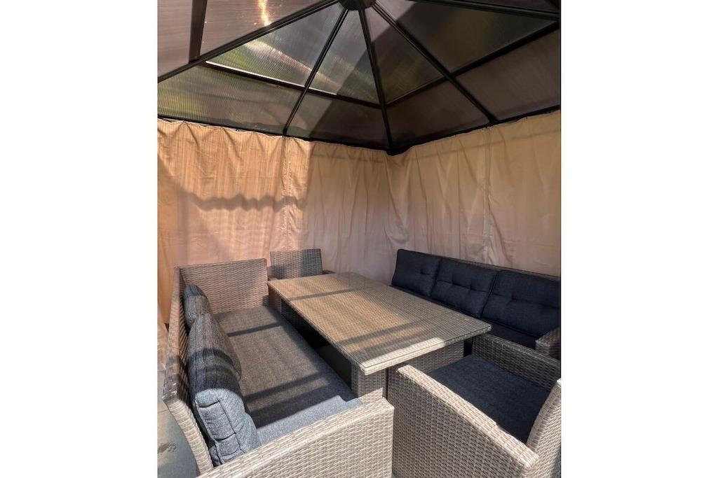 På 1. etage: (Stue(, , , dobbeltsovesofa, Fjernsyn, varme, legetøj), Køkken(, kogeplade, elkedel, brødrister, kaffemaskine, ovn, mikrobølgeovn, opvaskemaskine , køleskab, fryser, varme, barnestol, ), Børneværelse(, køjeseng), badeværelse(, , toilet, badekar, bruser, håndvask, håndvask)) , soveværelse(, , dobbeltseng, varme), garage, Internetadgang, Internetadgang, Førstehjælp, tørretumbler, vaskemaskine, balkon(balkon, baldakin), terrasse(, grill, havemøbler), parkering