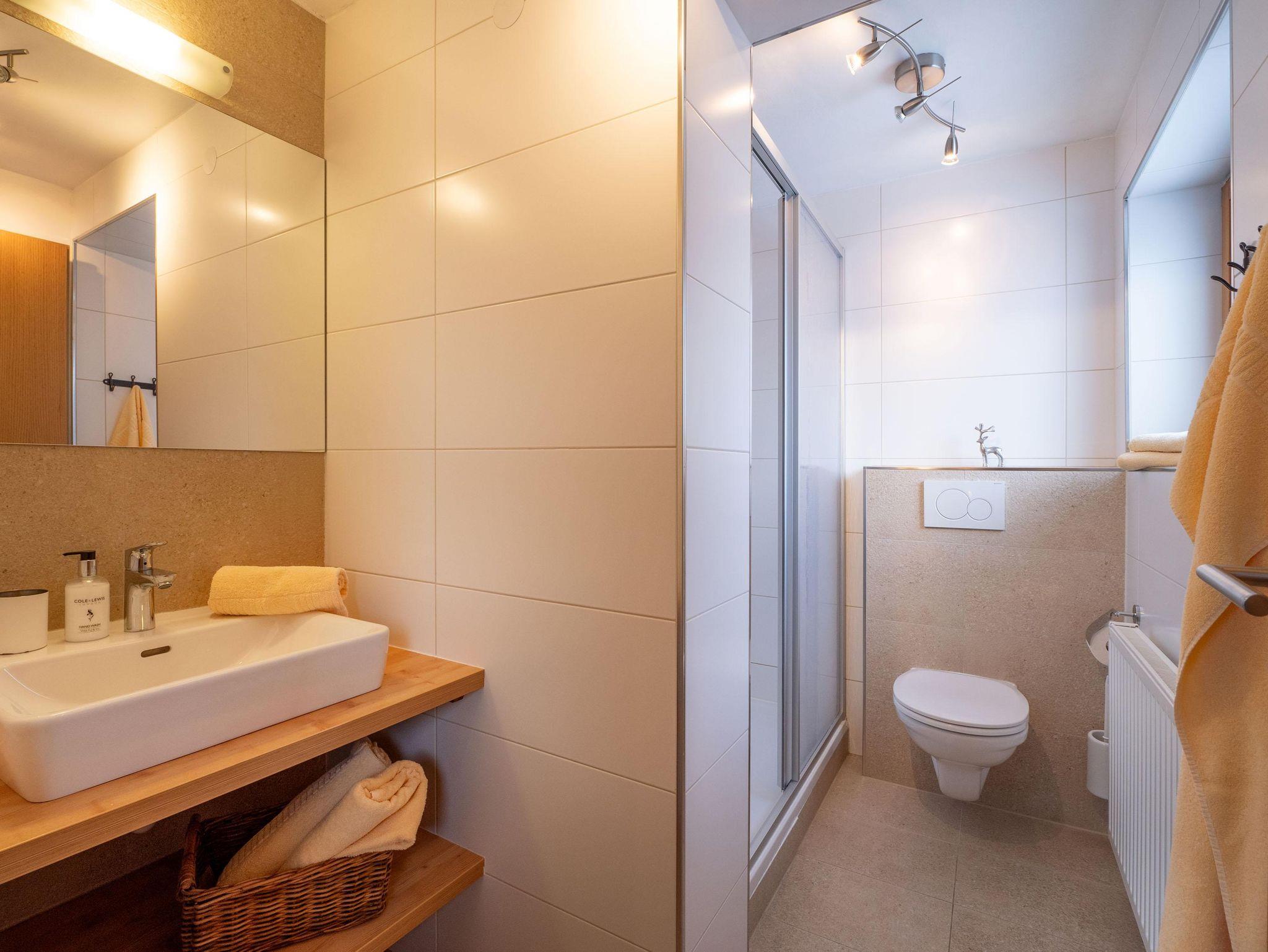 Ein großes Doppelzimmer mit eigenem Bad (Dusche, WC) verspricht schöne Träume während Ihres Urlaubs in Waidring.