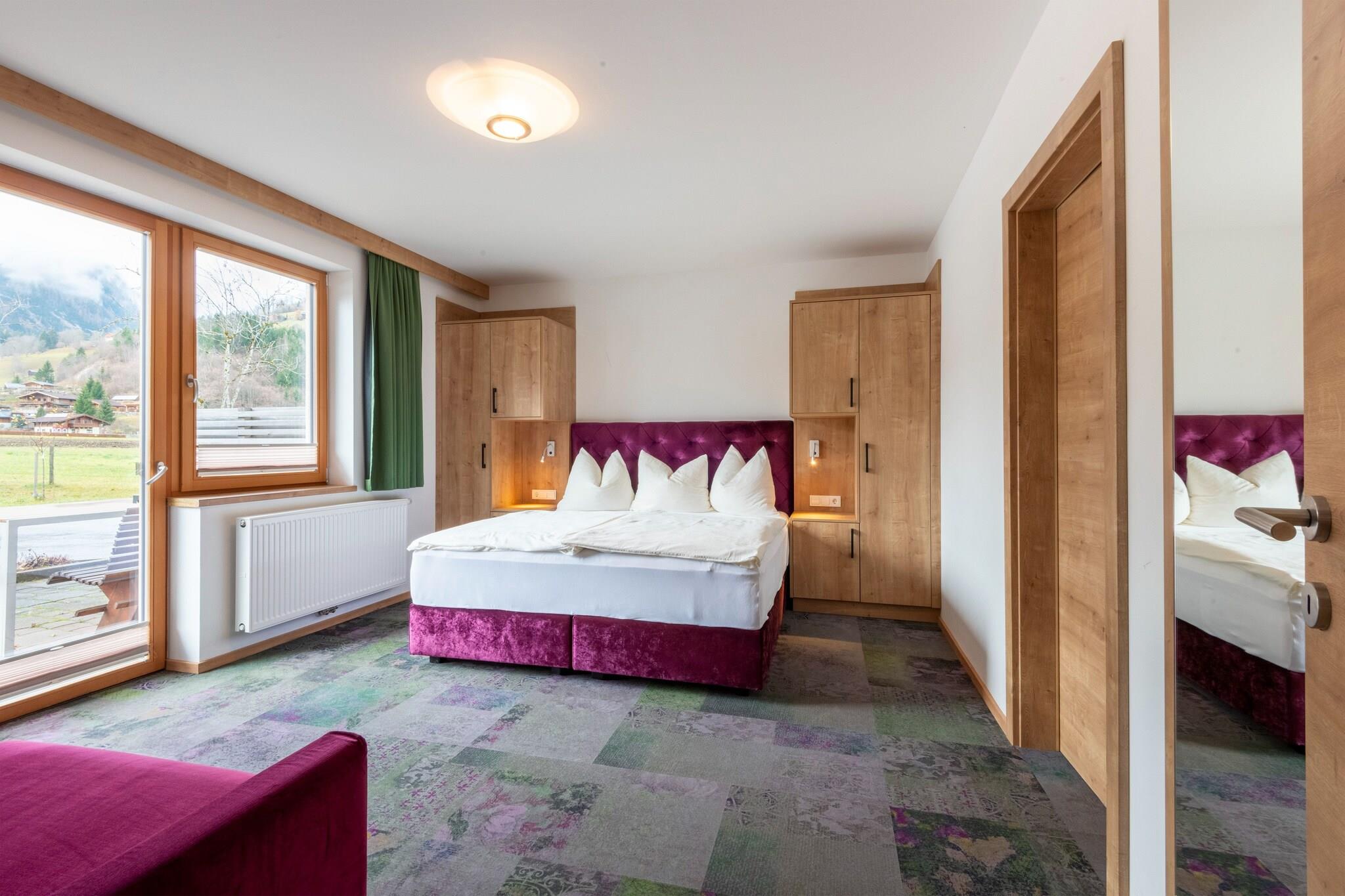 Denne hyggelige ferielejlighed til maks. 6 personer ligger i et feriehus i den lille by Wald im Pinzgau i Salzburgerland, nær Königsleiten, den nærliggende nationalpark Hohe Tauern og skiområdet Zillertal Arena. De berømte Krimmler-vandfald er også et besøg værd! Ud over en rummelig stue med et moderne åbent køkken har denne ferielejlighed 2 soveværelser med hvert sit badeværelse. I den rummelige stue er der mulighed for, at 5. og/eller 6. person kan sove på en sovesofa. Lejligheden har egen terrasse og desuden adgang til fællesfaciliteter. Tænk for eksempel på en fodboldkamp i Sky Sports Bar, et spil bordtennis eller en forfriskende svømmetur i den fælles udendørs pool (åben fra begyndelsen af juni til slutningen af september). Det er også muligt at nyde en omfattende morgenmad eller benytte wellness-faciliteterne såsom sauna og solarium (begge mod betaling). I april/maj og november/begyndelsen af december er der ingen personale, og der kan desværre ikke tilbydes morgenmad. I umiddelbar nærhed af feriehuset (ca. 11 km fra bymidten) ligger skiområdet Zillertal Arena med 150 kilometer pister og 52 lifte. Med byerne Zell am Ziller, Gerlos, Königsleiten, Wald og Krimml/Hochkrimml strækker dette skiområde sig fra det tyrolske Zillertal til Salzburgs Pinzgau og er alsidigt, familievenligt og snesikkert. Området omkring Wald im Pinzgau byder på en bred vifte af fritids- og rekreative aktiviteter i hver sæson, og det varierede landskab har noget at byde på for enhver smag.