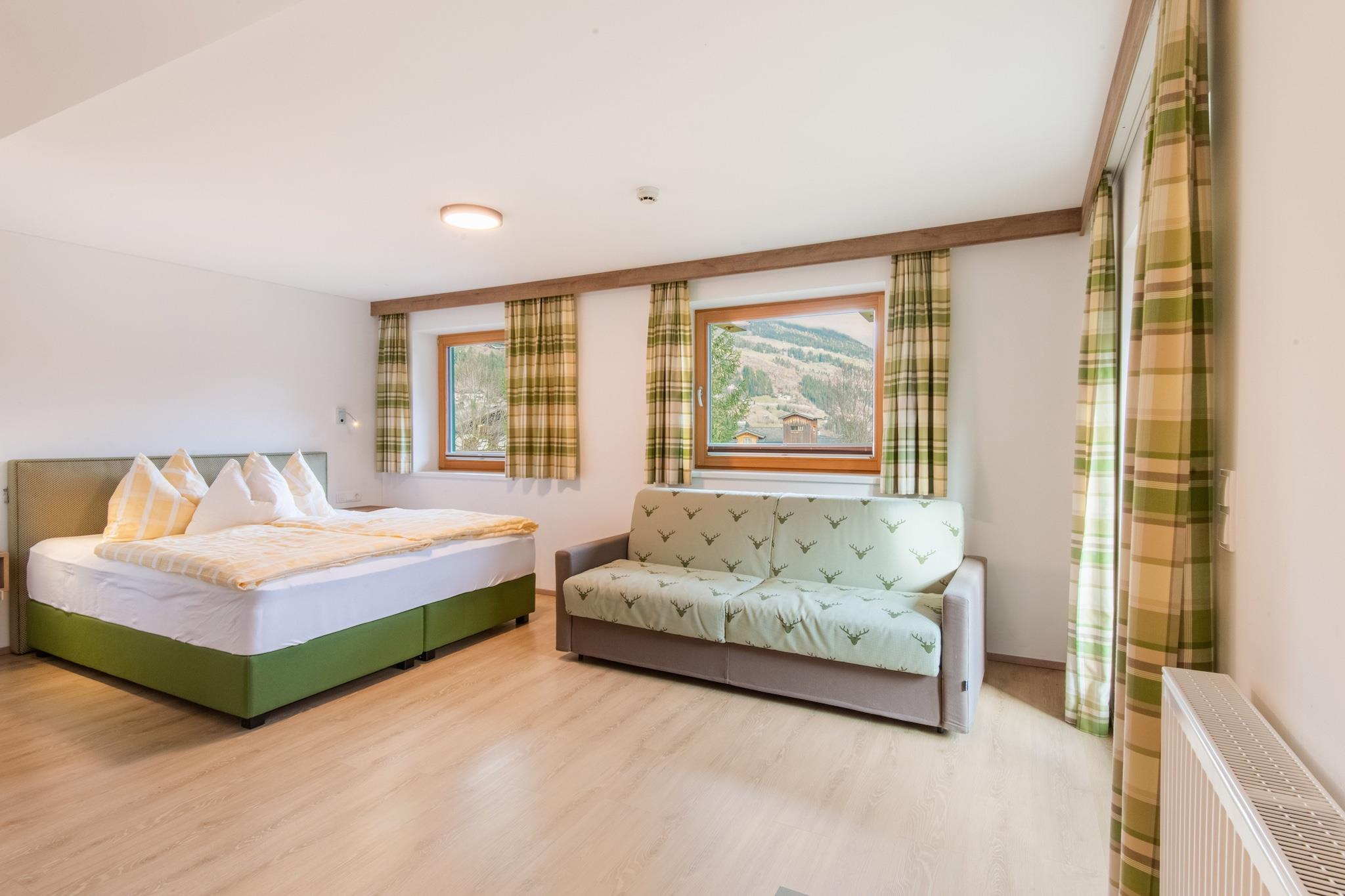 Denne hyggelige ferielejlighed til maks. 4 personer ligger i et feriehus i den lille by Wald im Pinzgau i Salzburgerland, nær Königsleiten, den nærliggende nationalpark Hohe Tauern og skiområdet Zillertal Arena. De berømte Krimmler-vandfald er også et besøg værd! Denne ferielejlighed har en rummelig stue med sovesofa, et moderne åbent køkken og 1 soveværelse med eget badeværelse. Lejligheden har desuden altan og giver adgang til fællesfaciliteter. Tænk for eksempel på en fodboldkamp i Sky Sports Bar, et spil bordtennis eller en forfriskende svømmetur i den fælles swimmingpool (åben fra begyndelsen af juni til slutningen af september). Det er også muligt at benytte en omfattende morgenmad mod betaling eller at benytte wellness-faciliteter som sauna og solarium mod betaling. I april/maj og november/start december er der ingen personale og der kan desværre ikke tilbydes morgenmad. I umiddelbar nærhed af feriehuset (ca. 11 km fra bymidten) ligger skiområdet Zillertal Arena med 150 kilometer pister og 52 lifte. Med byerne Zell am Ziller, Gerlos, Königsleiten, Wald og Krimml/Hochkrimml strækker dette skiområde sig fra det tyrolske Zillertal til Salzburgs Pinzgau og er alsidigt, familievenligt og snesikkert. Området omkring Wald im Pinzgau byder på en bred vifte af fritids- og rekreative aktiviteter i hver sæson, og det varierede landskab har noget at byde på for enhver smag.