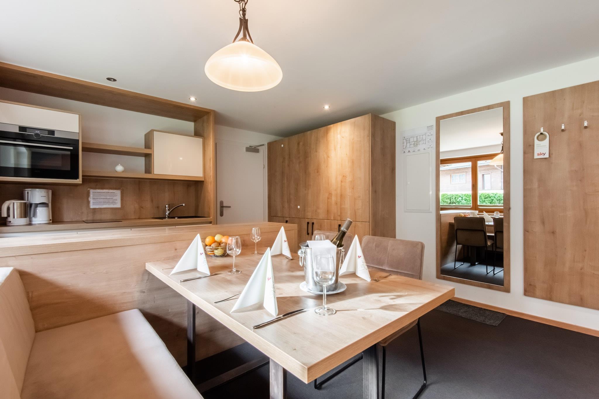 Denne moderne ferielejlighed til maks. 5 personer ligger i et feriehus i den lille by Wald im Pinzgau i Salzburgerland. Området byder på mange naturlige attraktioner, Krimmler-vandfaldene og en bred vifte af vandre- og cykelstier. Lejligheden er optimalt udstyret og byder på en rummelig stue (med sovesofa), et åbent, veludstyret køkken, et soveværelse med en dobbeltseng og en enkeltseng, et badeværelse og en skøn terrasse. Lejligheden har desuden adgang til fælles faciliteter. Tænk for eksempel på en fodboldkamp i Sky Sports Bar, et spil bordtennis eller en forfriskende svømmetur i den fælles udendørs pool (åben fra begyndelsen af juni til slutningen af september). Det er også muligt at nyde en omfattende morgenmad eller benytte wellness-faciliteterne såsom sauna og solarium (mod betaling). I april/maj og november/begyndelsen af december er der ingen personale, og der kan desværre ikke tilbydes morgenmad. I umiddelbar nærhed af feriehuset (ca. 11 km fra bymidten) ligger skiområdet Zillertal Arena med 150 kilometer pister og 52 lifte. Med byerne Zell am Ziller, Gerlos, Königsleiten, Wald og Krimml/Hochkrimml strækker dette skiområde sig fra det tyrolske Zillertal til Salzburgs Pinzgau og er alsidigt, familievenligt og snesikkert. Området omkring Wald im Pinzgau byder på en bred vifte af fritids- og rekreative aktiviteter i hver sæson, og det varierede landskab har noget at byde på for enhver smag.