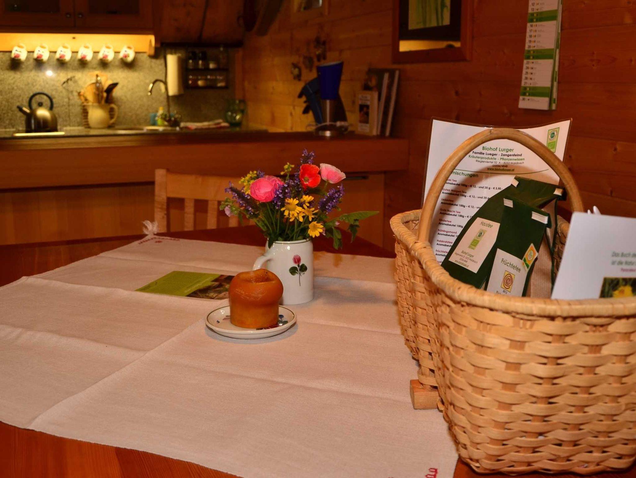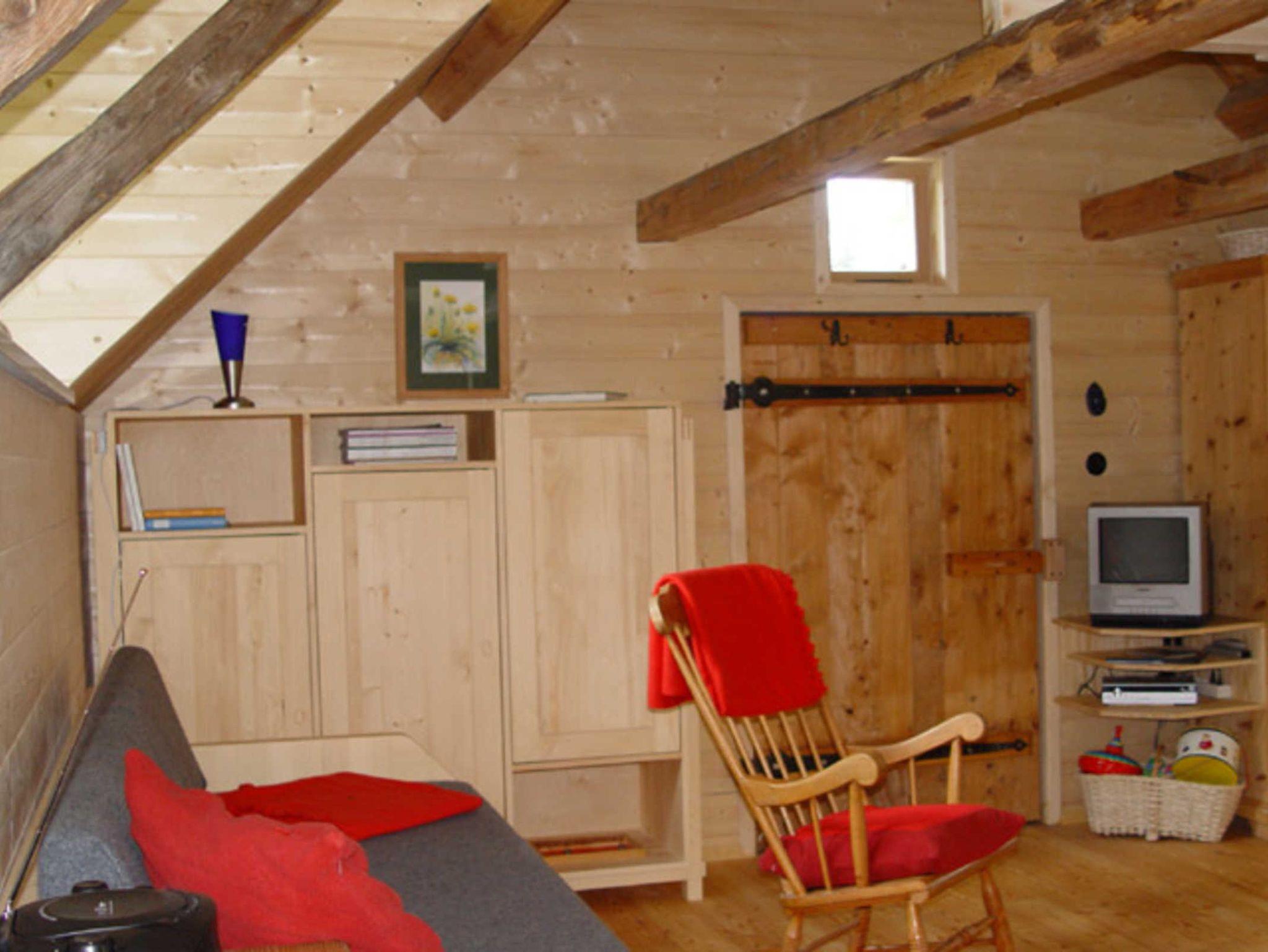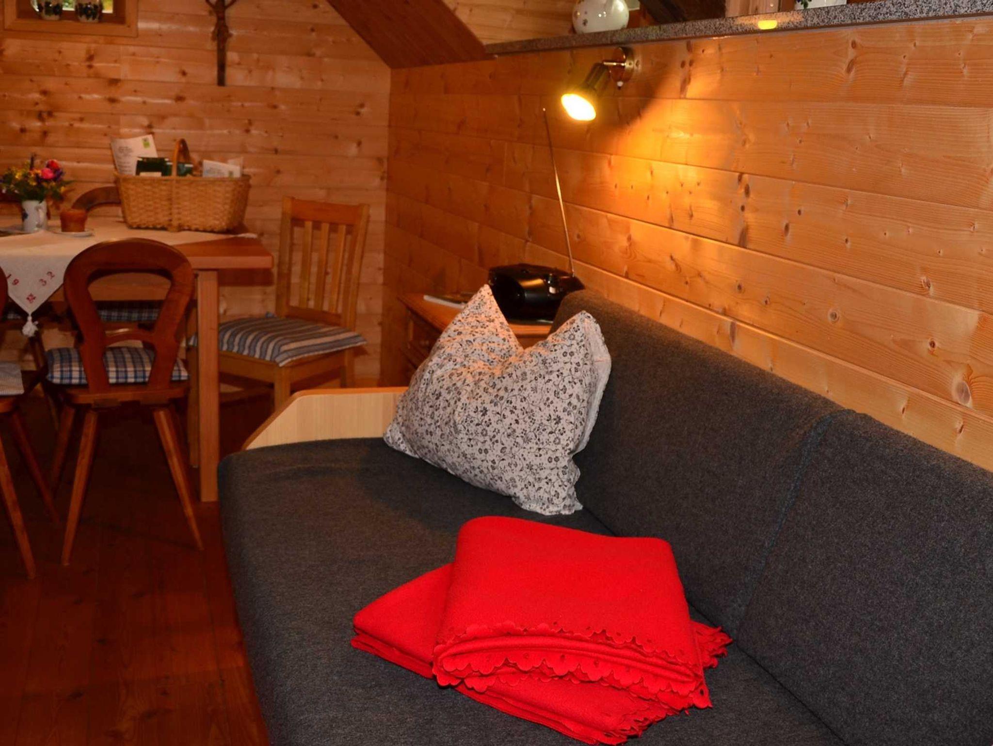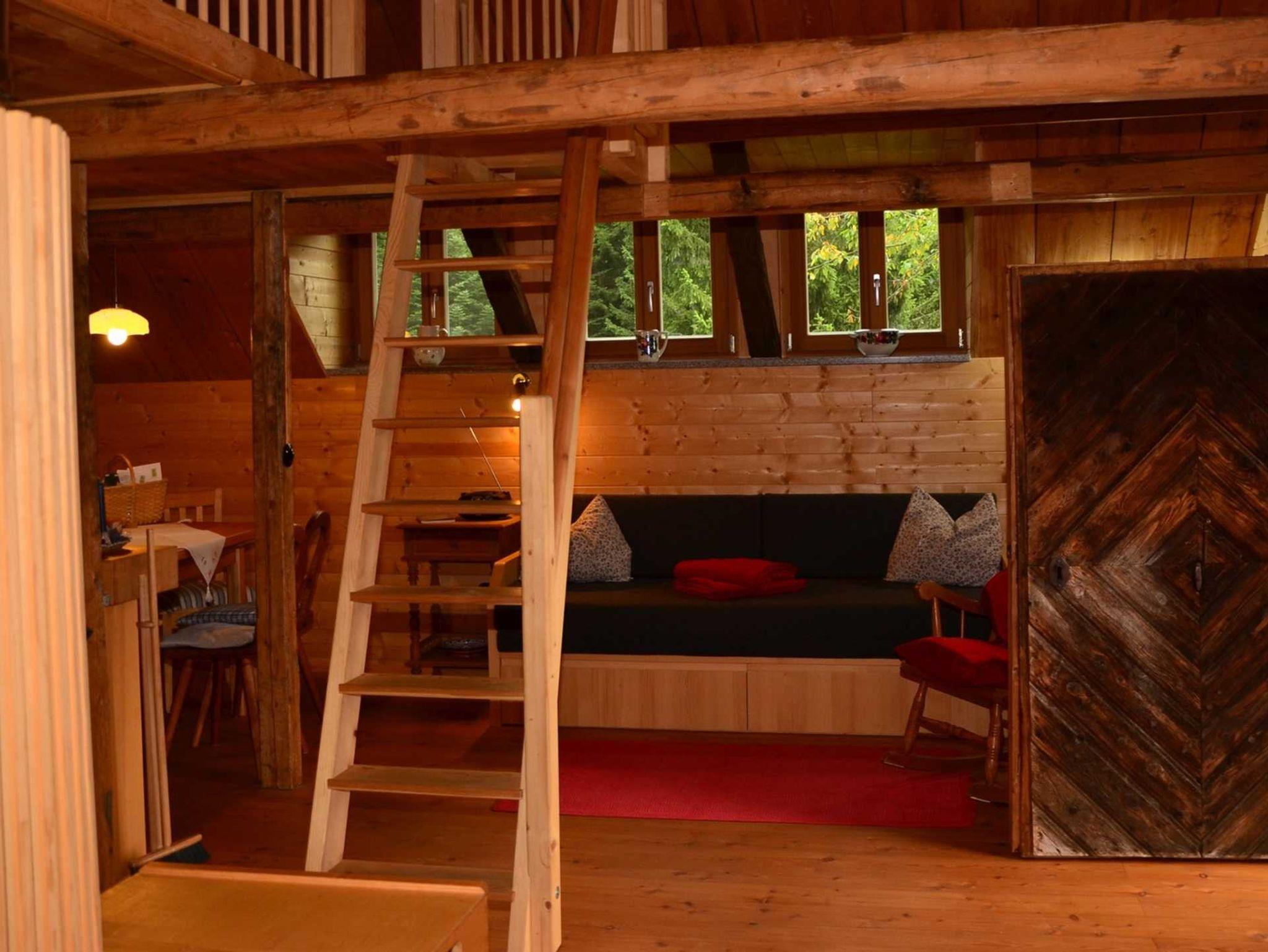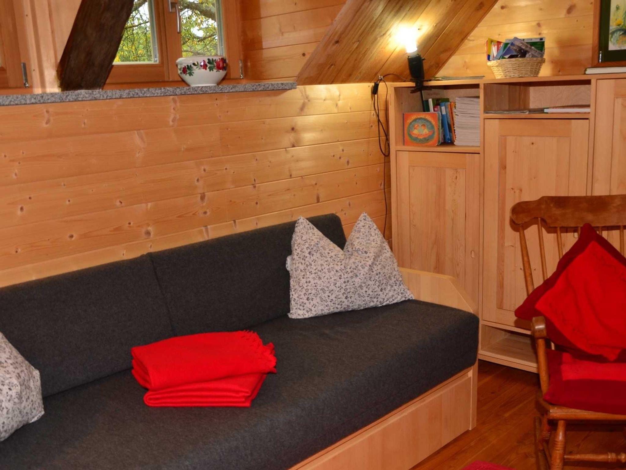 Der Charme des alten Feldkasten ist bei der Renovierung erhalten geblieben, denn es wurde viel Wert auf natürliche Materialen gelegt. Der Umbau ist ausschließlich mit natürlichen Materialien erfolgt. Natursteine, Fliesen und Holz vom eigenen Wald wurden verwendet. Die Einrichtung wurde fast zur Gänze in der hofeigenen Tischlerwerkstätte hergestellt. Das Ferienhaus besteht aus einem Vorraum mit Garderobe und einer Garderobenbank. Einem großzügigen, hellen Bad mit Dusche, Waschbecken, WC und Fußbodenheizung. Eine komplett ausgestattete Küche mit einem gemütlichem Eß- und Wohnbereich. Das Sofa im Wohnbereich ist ausziehbar in ein Standarddoppelbett. Über eine schmale Stiege ist das Schlafbereich unter dem Dach zu erreichen. Für Wärme, Gemütlichkeit und Warmwasser sorgt ein Holzherd. Für genügend Holz ist gesorgt. Balkon mit Sitzgelegenheit und Kinderspielecke und ein eingezäunter Grünbereich runden das Angebot ab.
