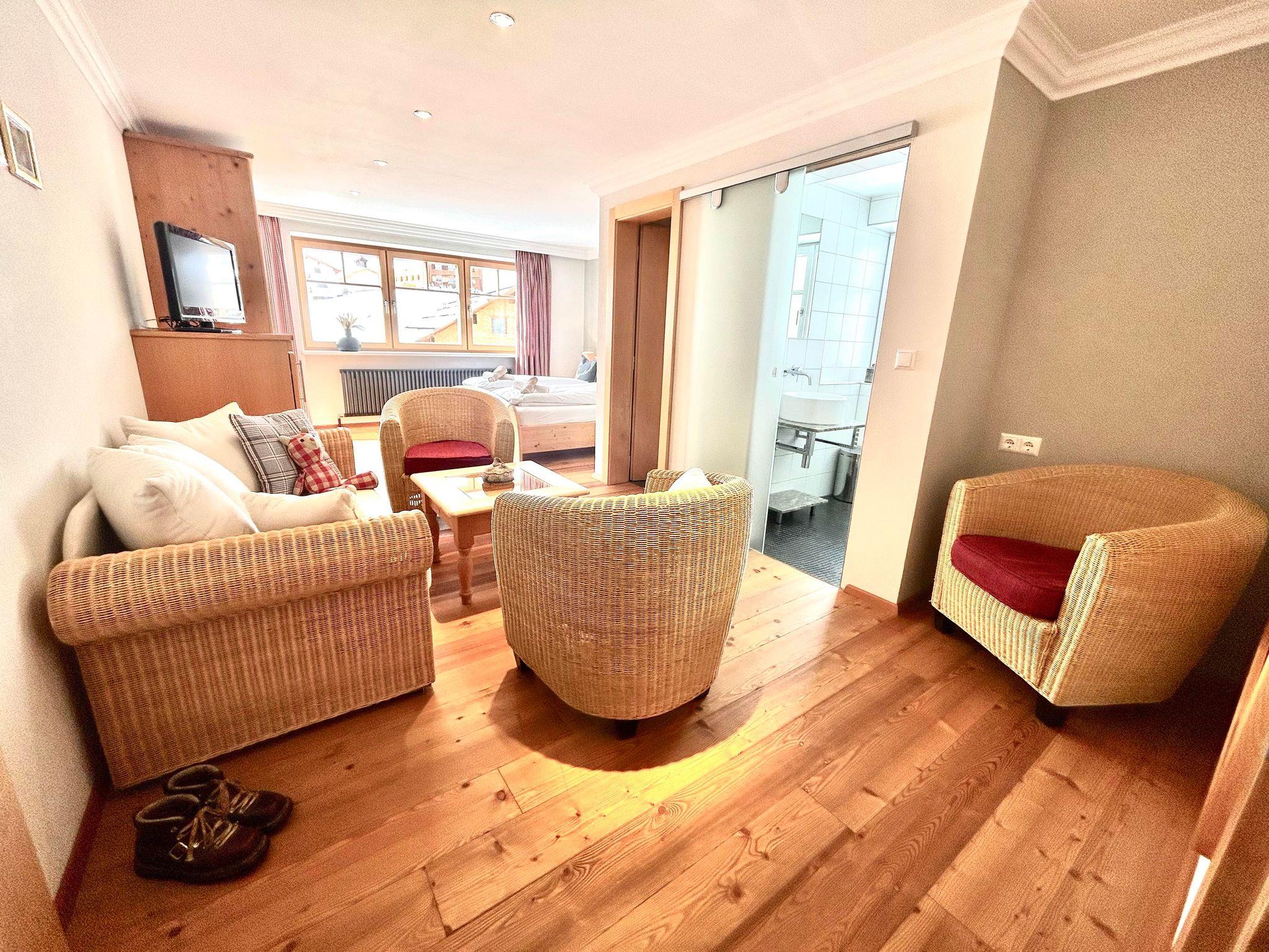 HEX-HEX ist liegt im obersten Stock mit Balkon nach Westen und Blick auf den Warther Dorfplatz. Das Apartment ist für 2 Personen als Doppelzimmer oder auch für 3 und 4 Personen als Familienzimmer (Schlafcouch) buchbar und ist ca. 28 m² groß.